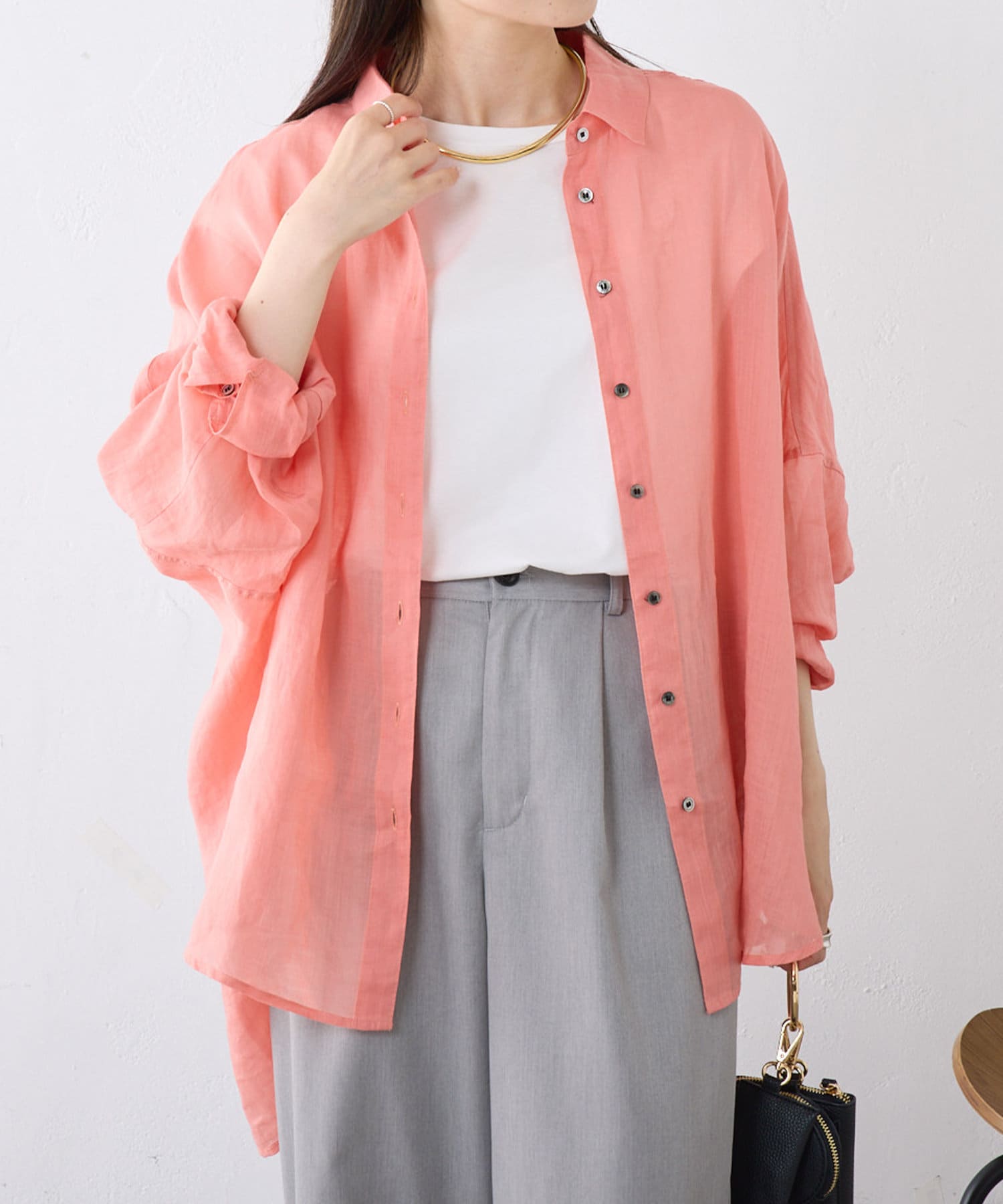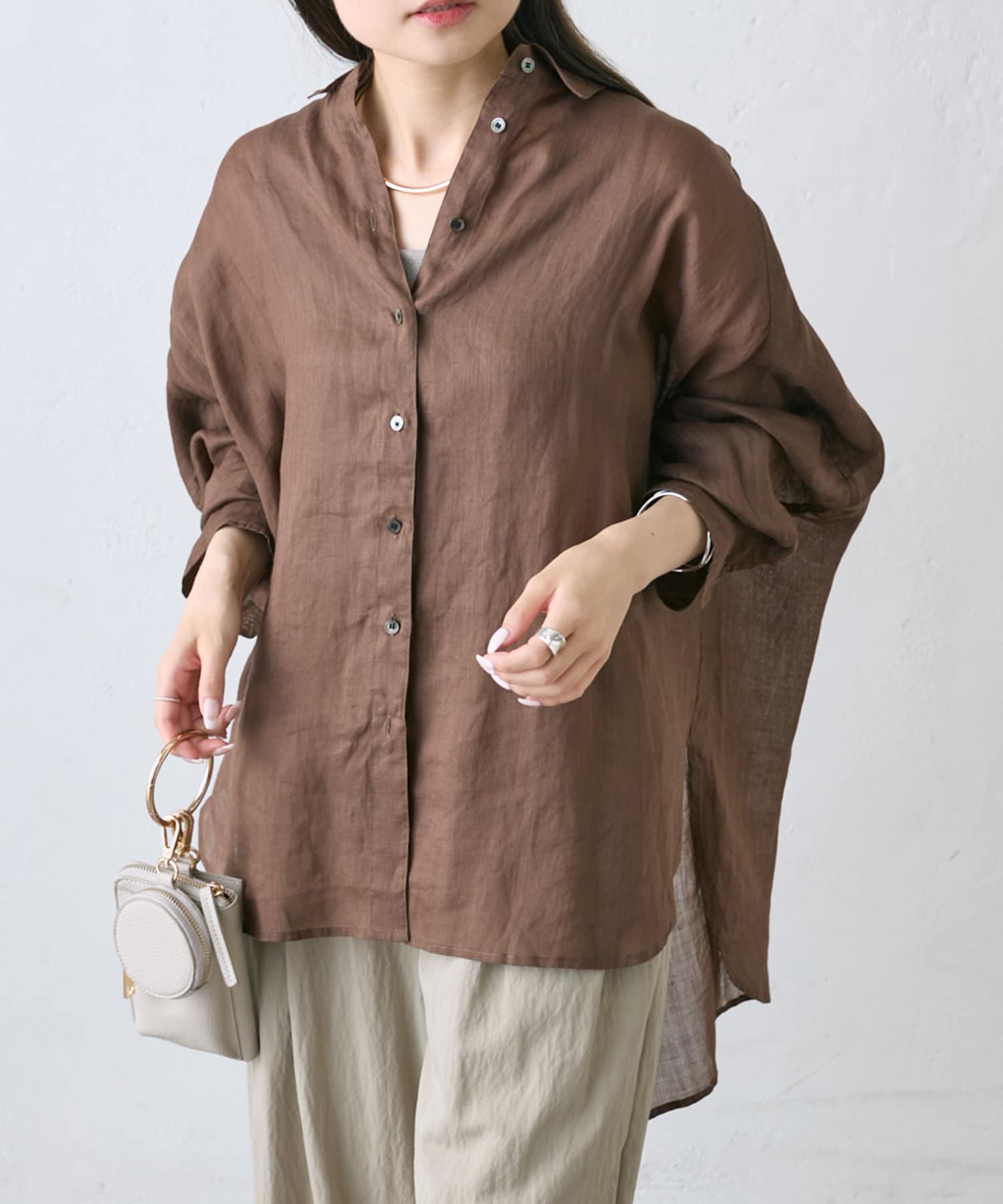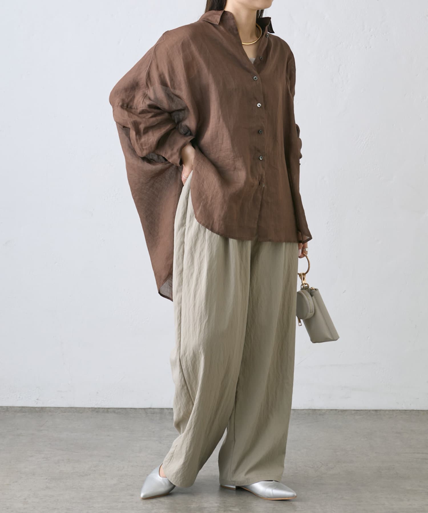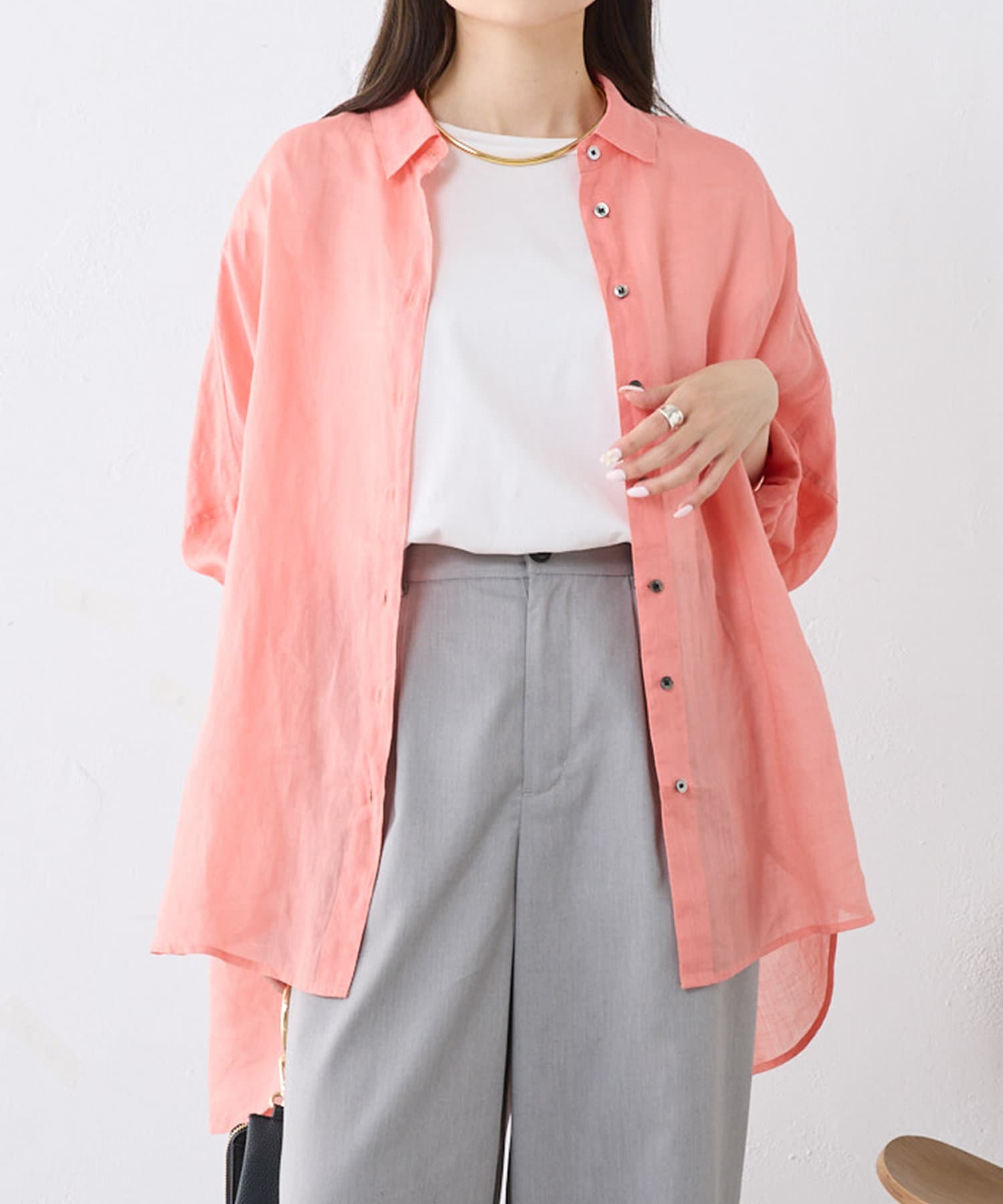 軽くて透け感のある軽やかなラミー素材は、冷房対策や日よけ対策として着用しやすい1着。