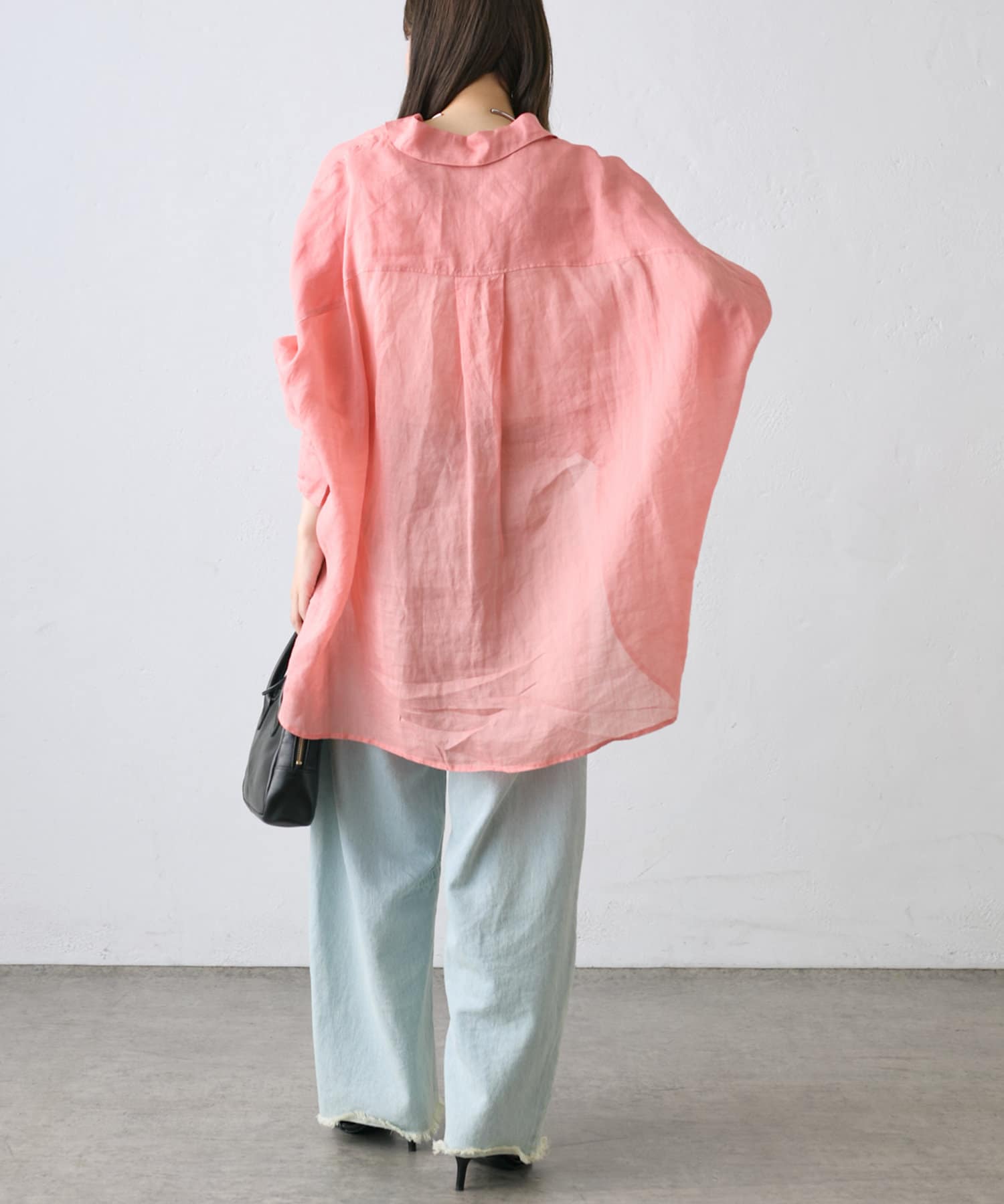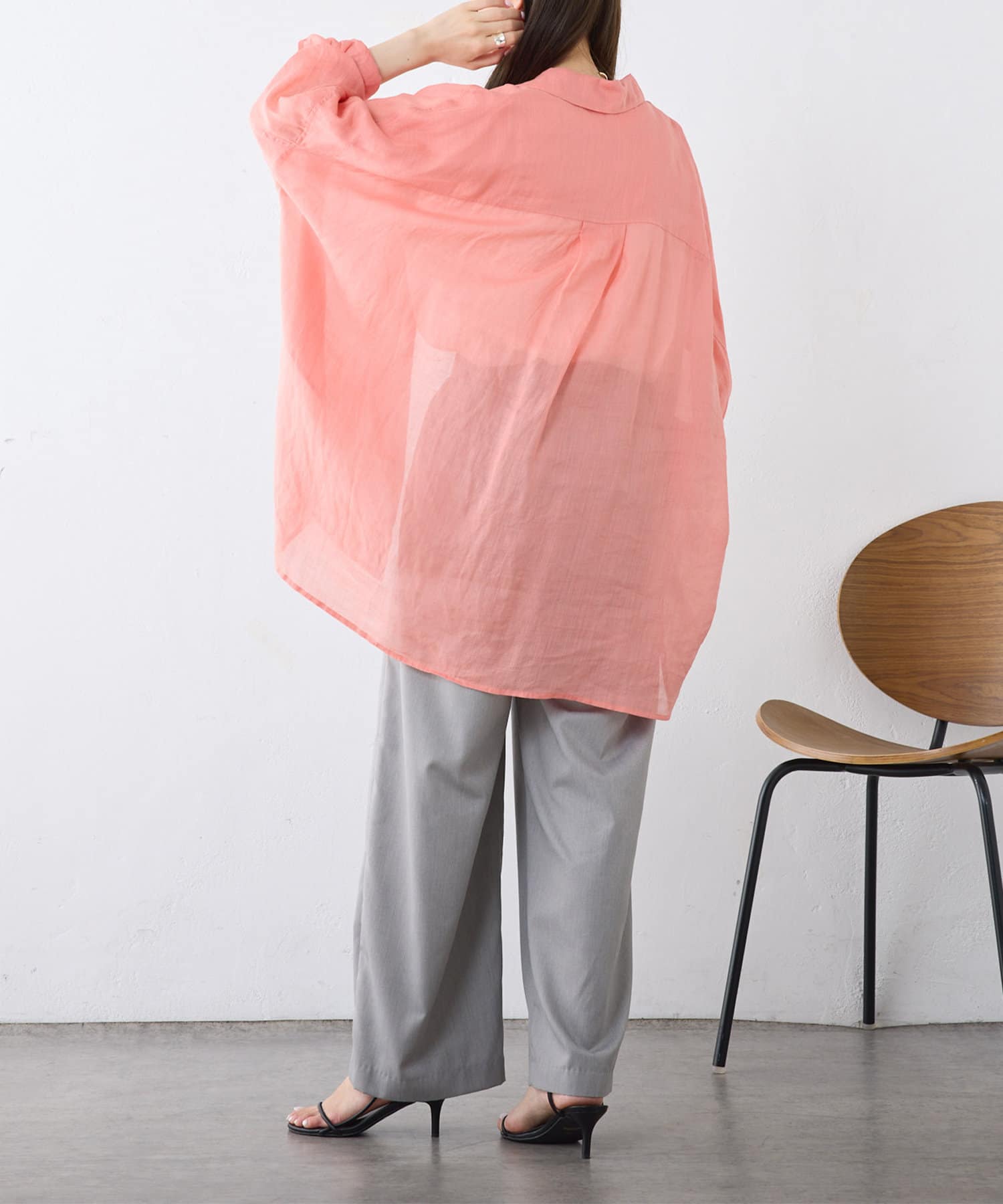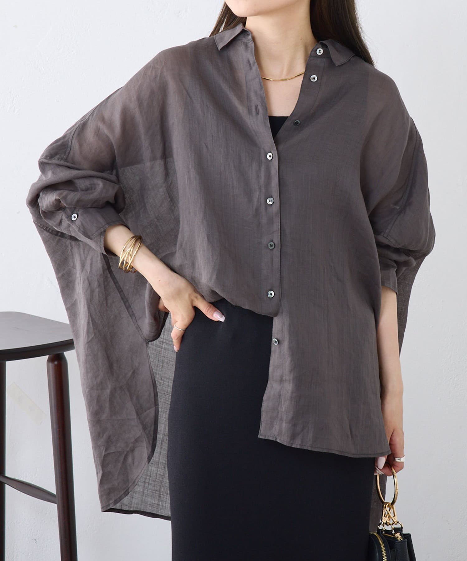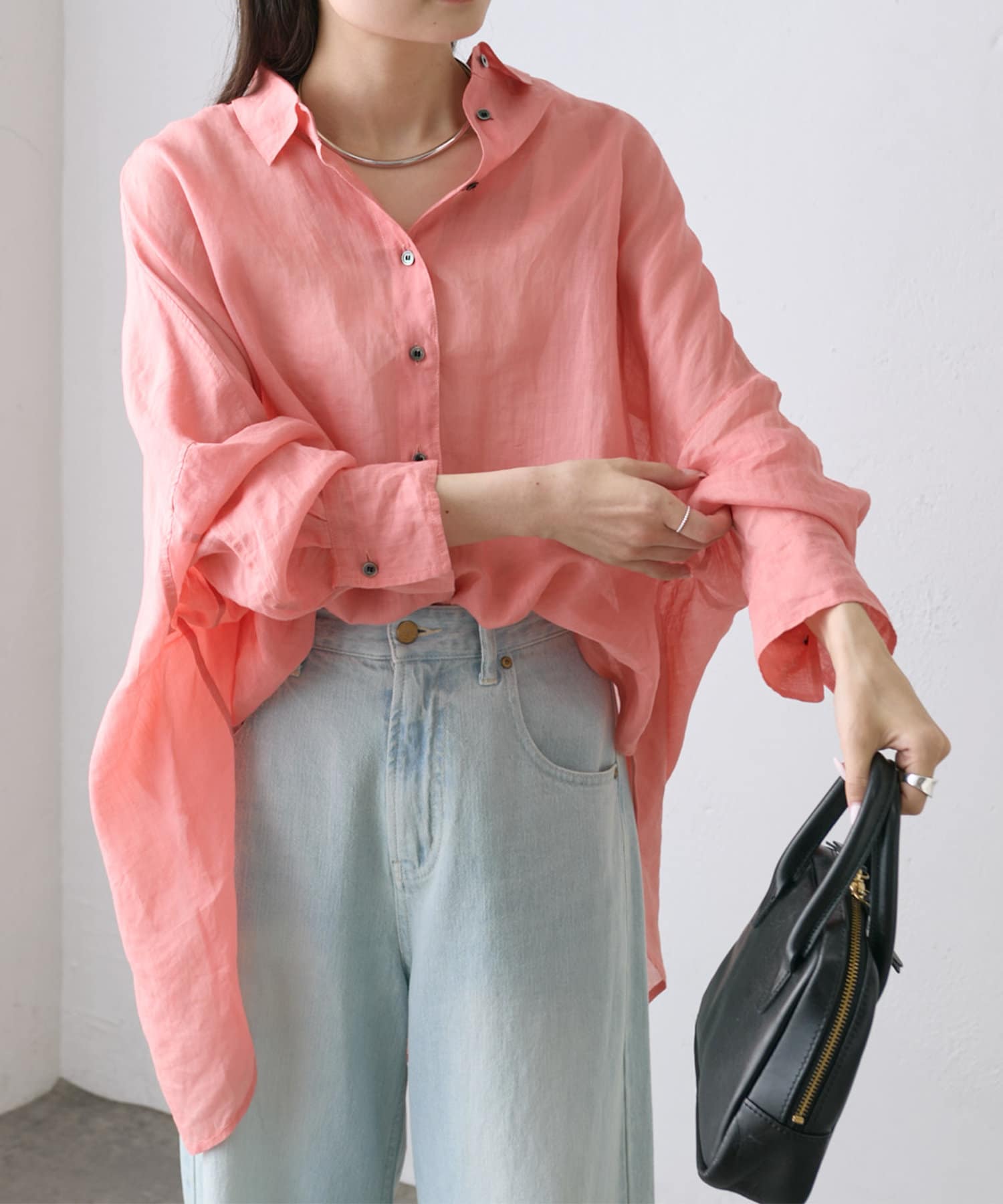 軽くて透け感のある軽やかなラミー素材は、冷房対策や日よけ対策として着用しやすい1着。
