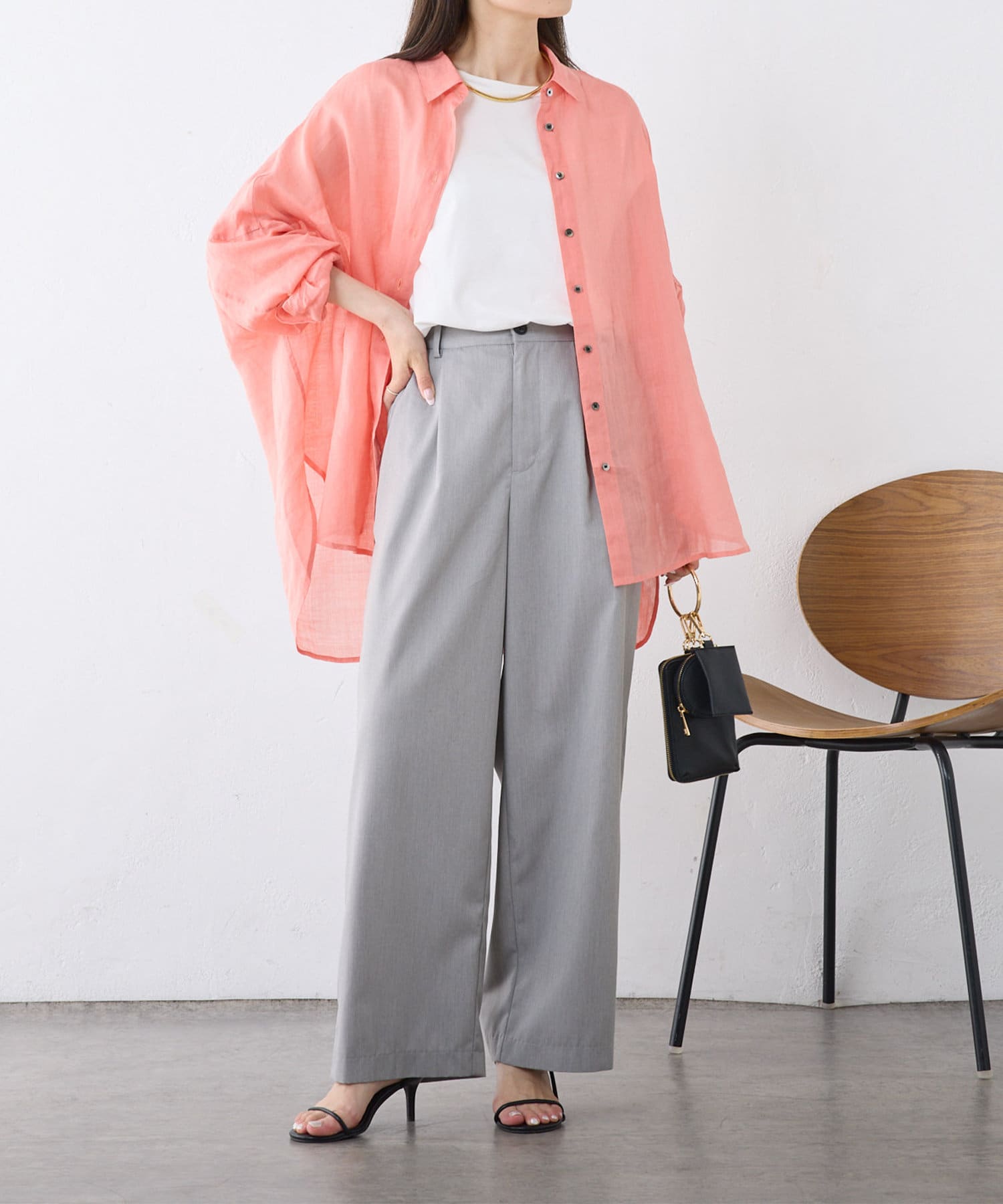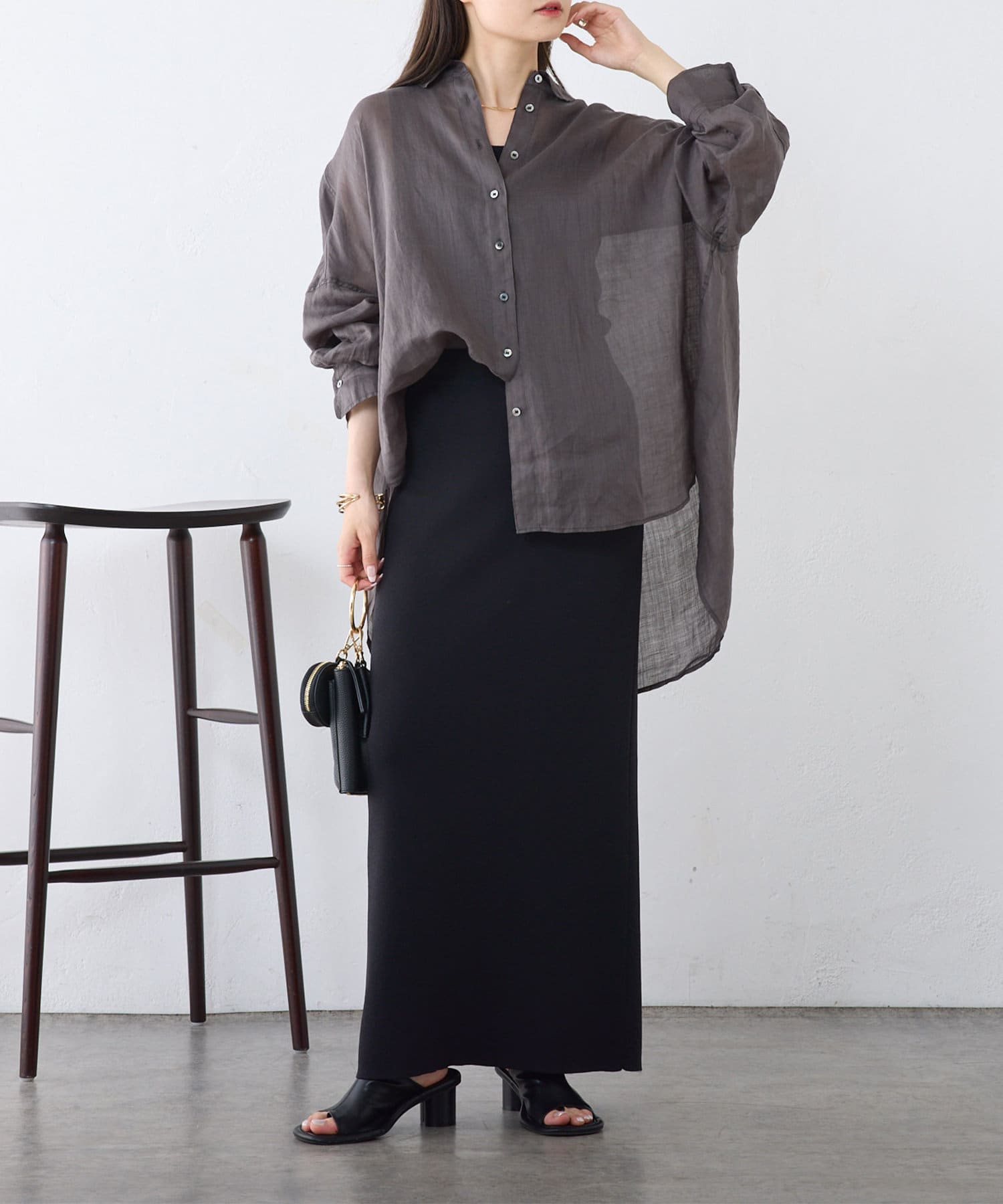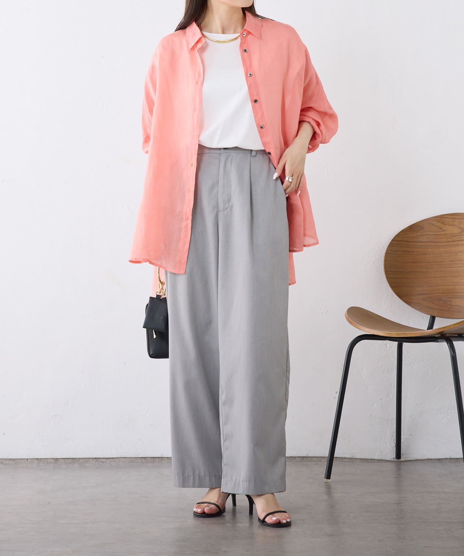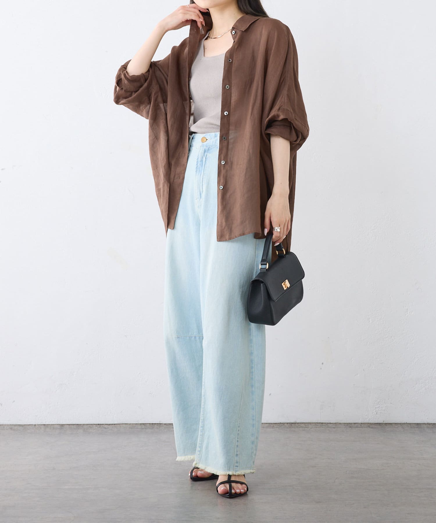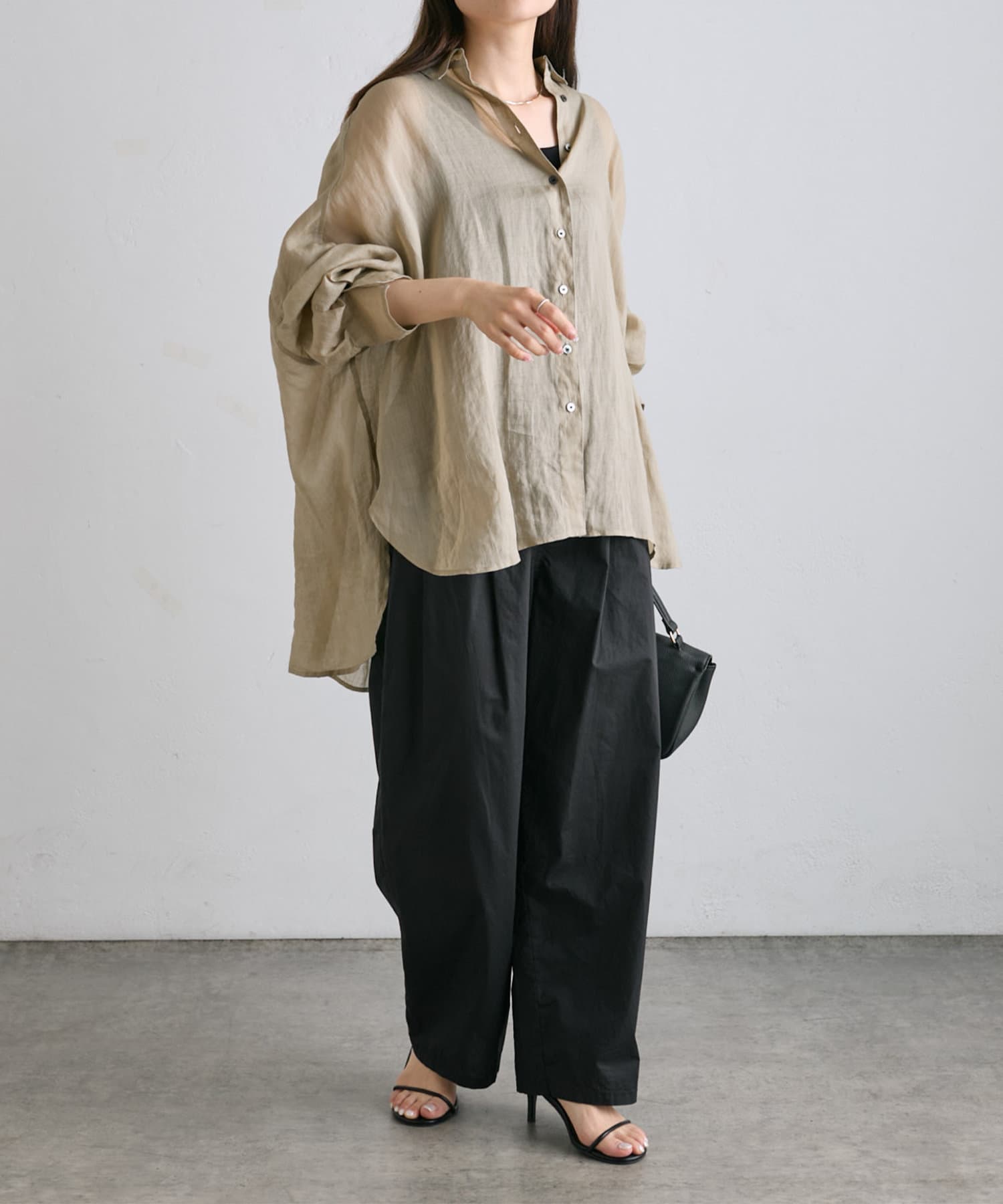 ラミー素材ならではの、透け感がコーデに抜けを出してくれます。