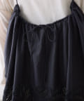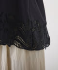 たっぷりとギャザーをとり、フェミニンな裾レースのデザインが