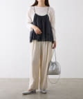 スラックスやとろみ感のあるボトムスを合わせるのがおススメです。