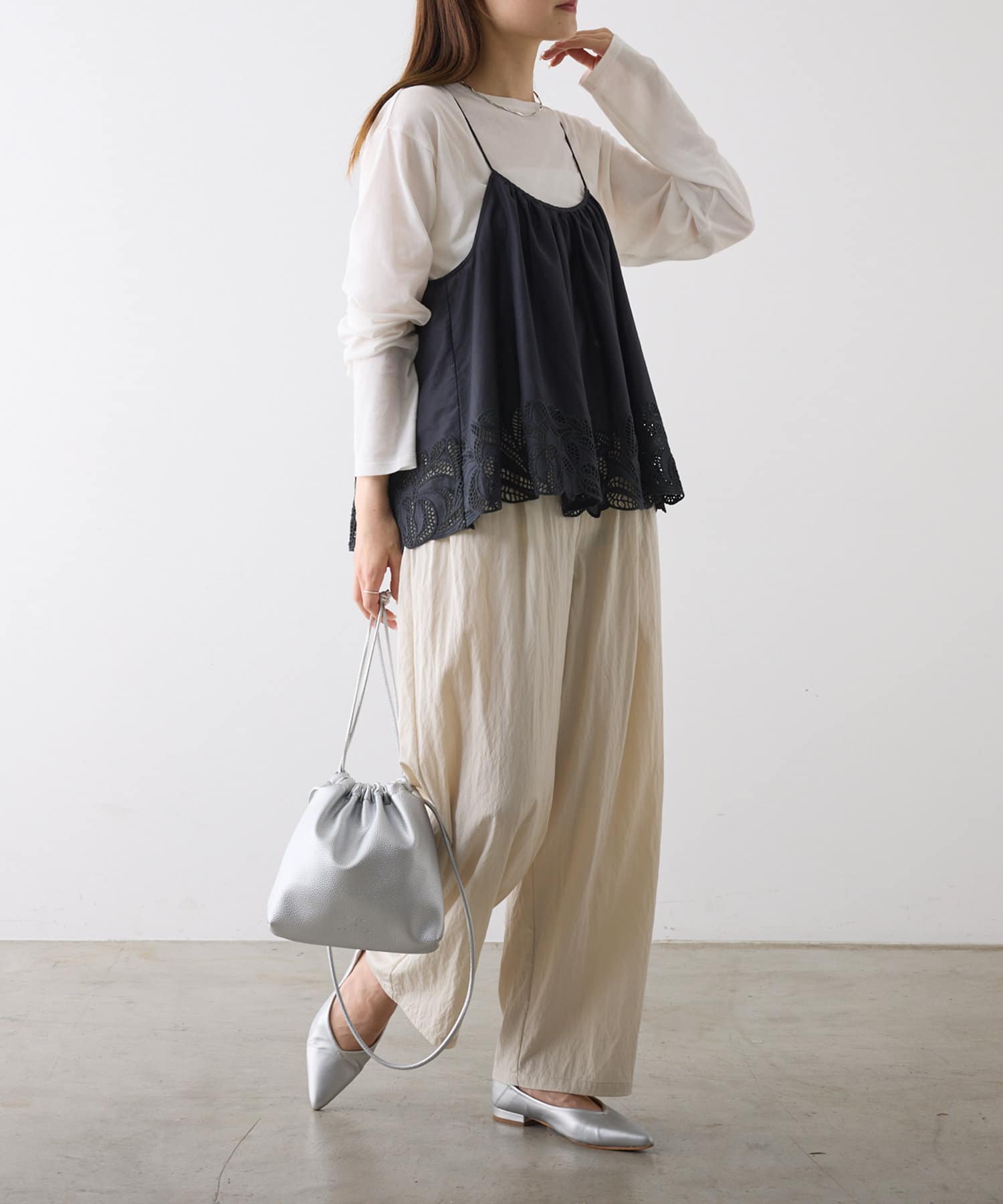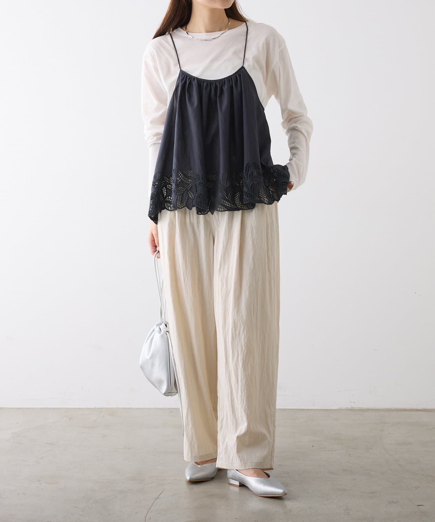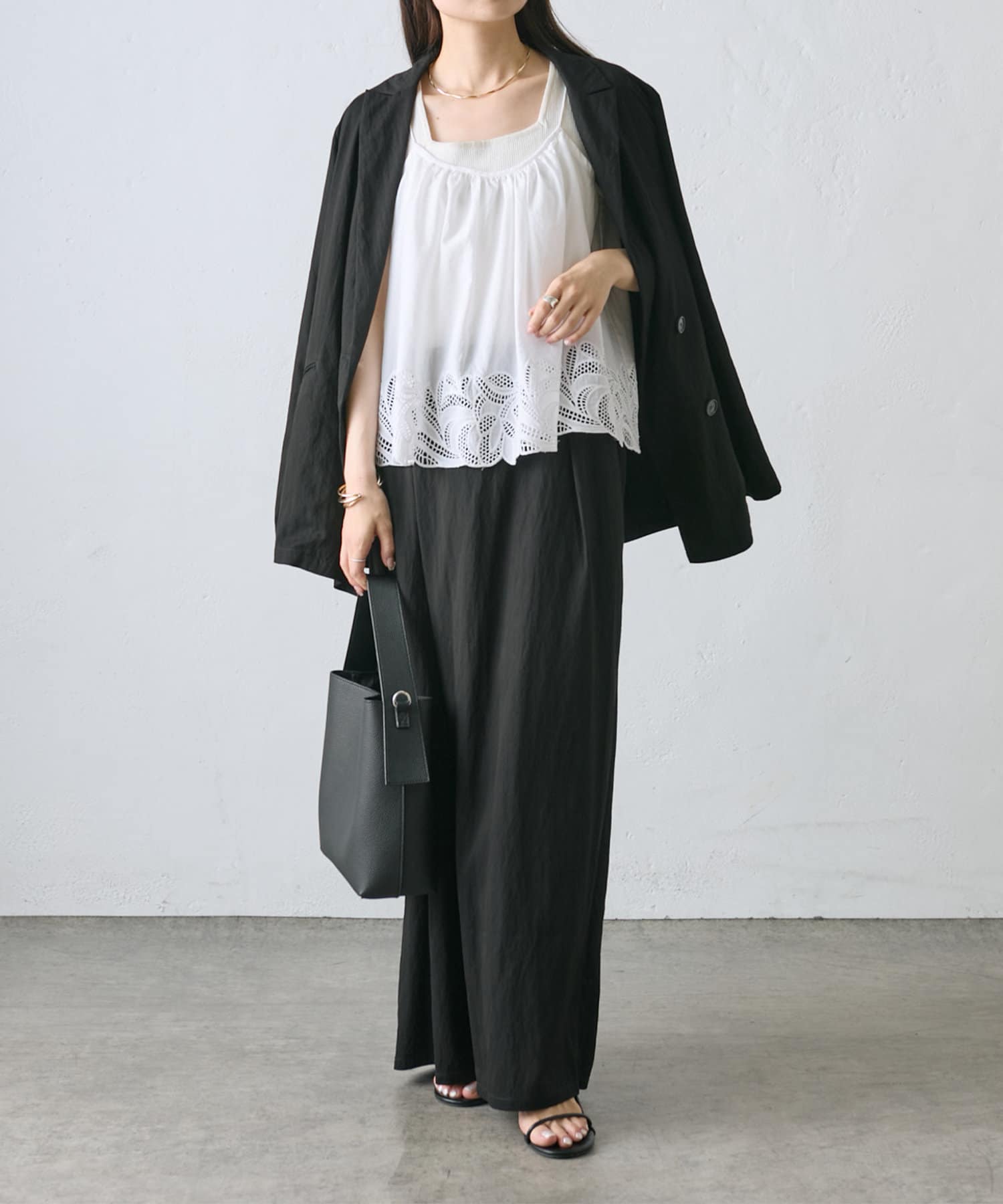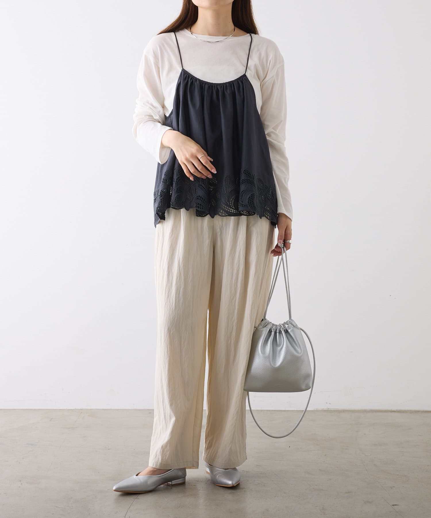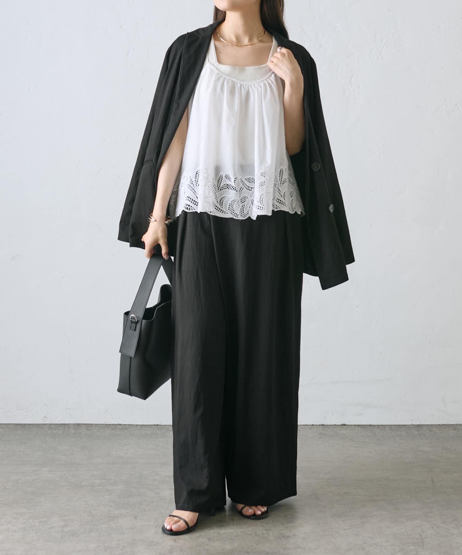スクエアネックタンクトップや、キャミソールインナーを合わせて