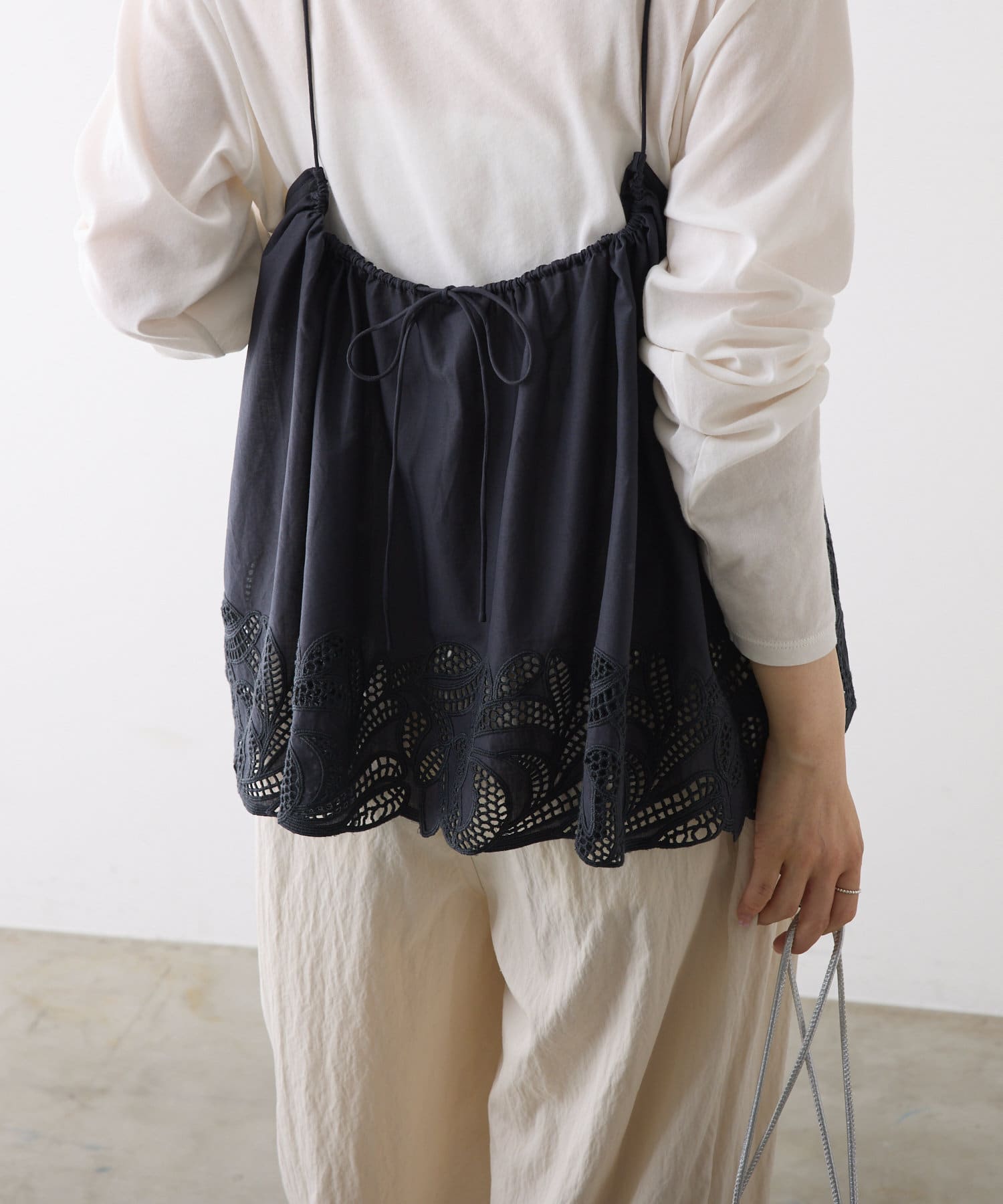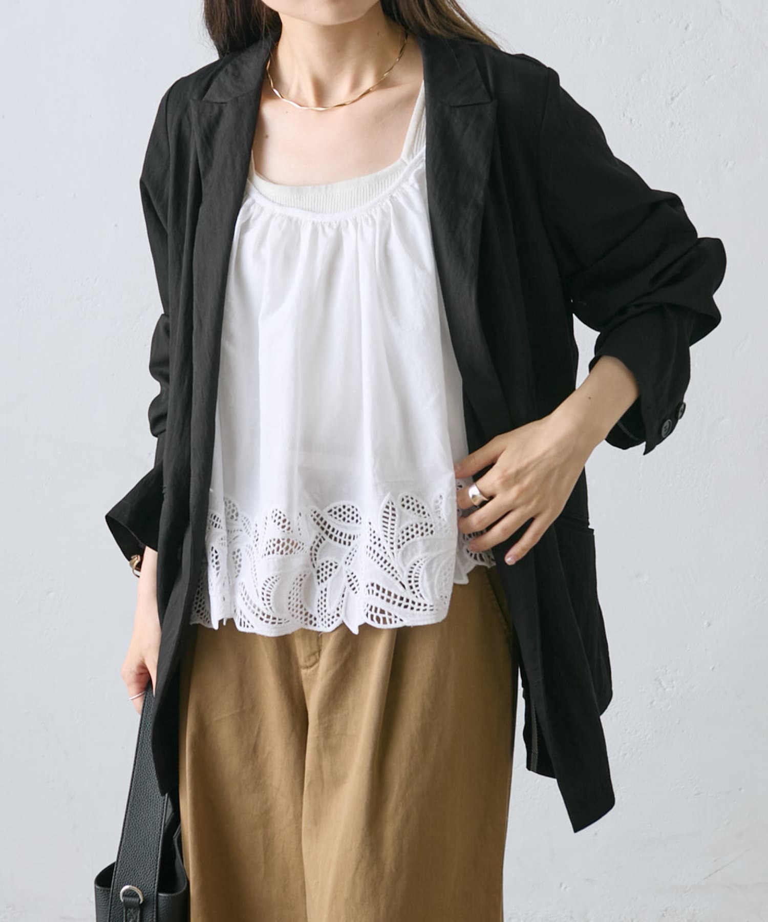 夏の時期から秋ムードを高めてくれるレースキャミソールブラウス。