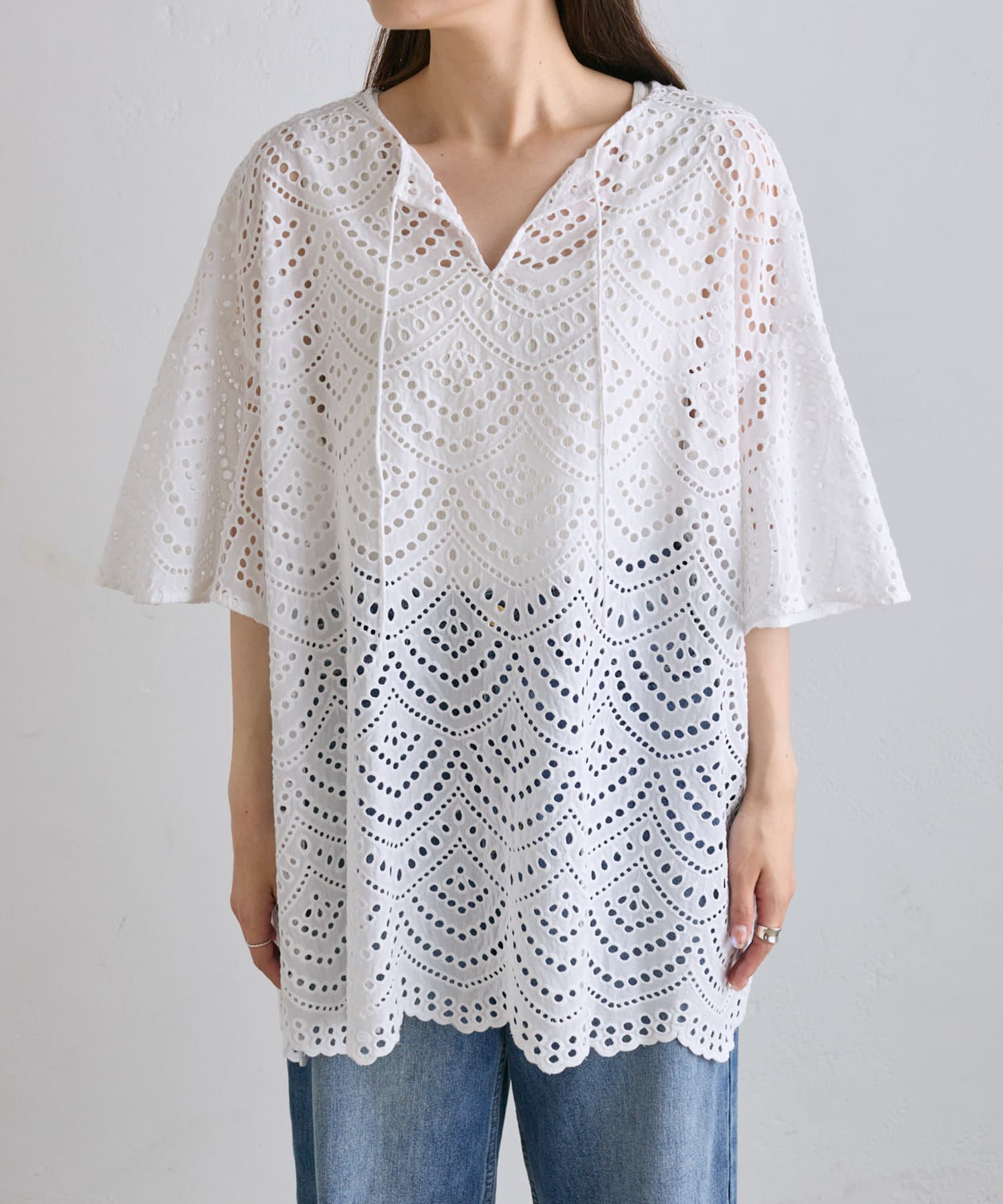 【2024AW】スカラップレースチュニックブラウス