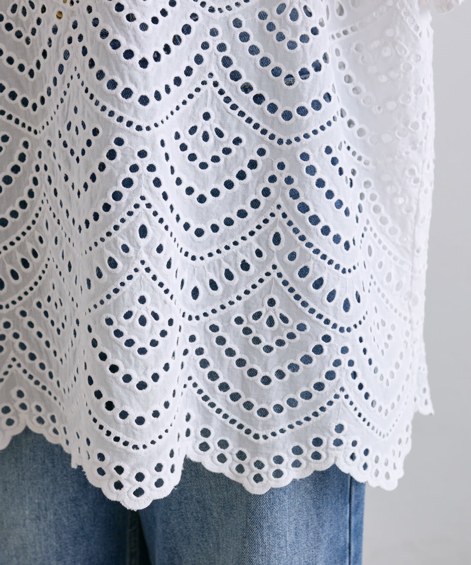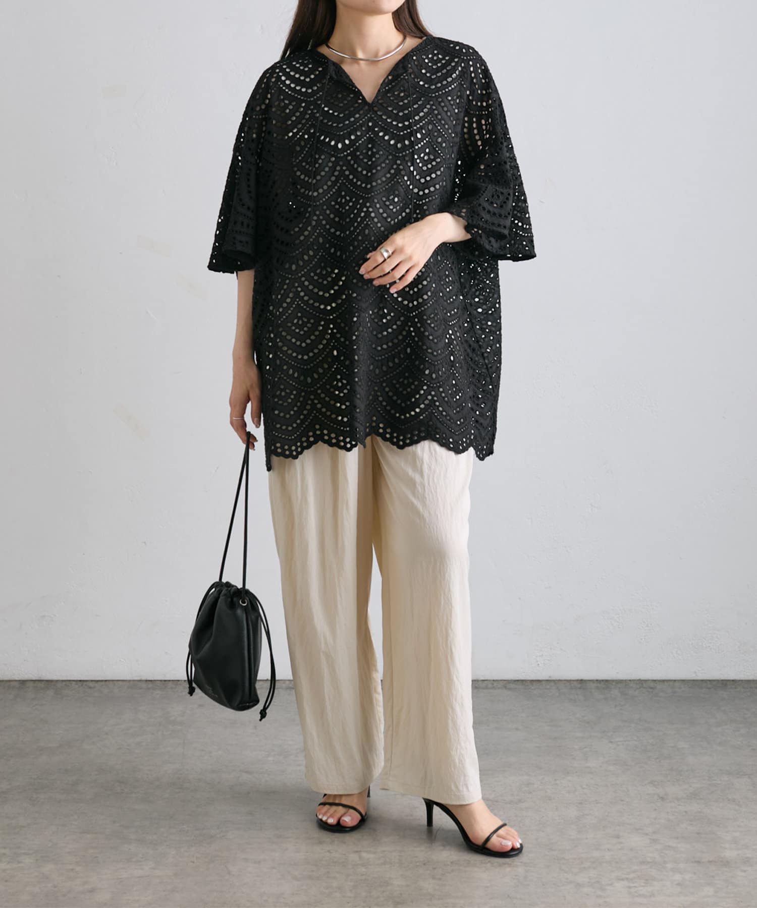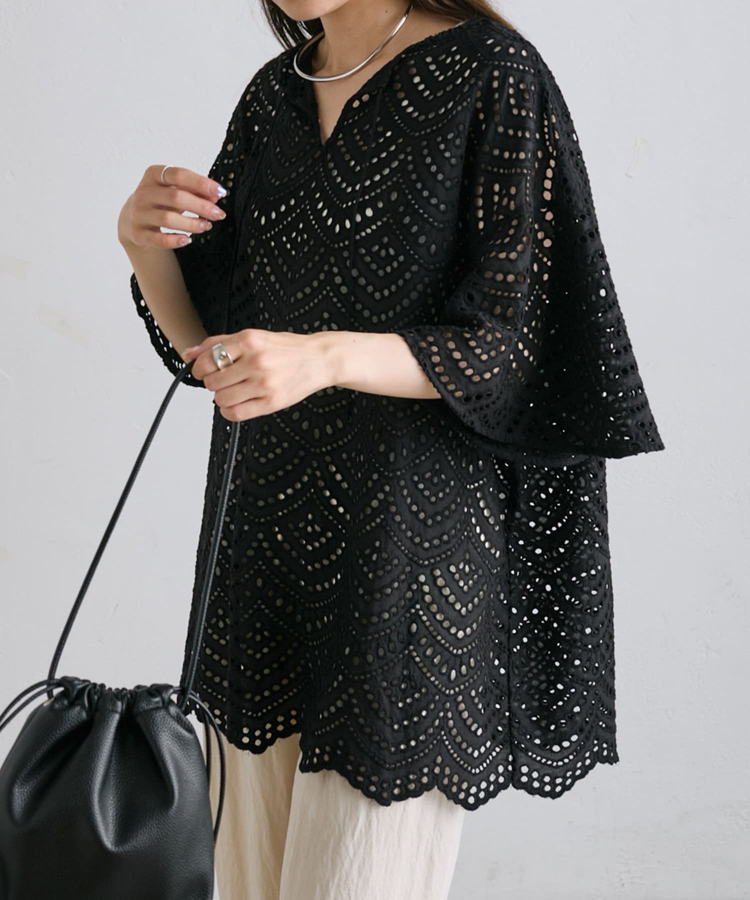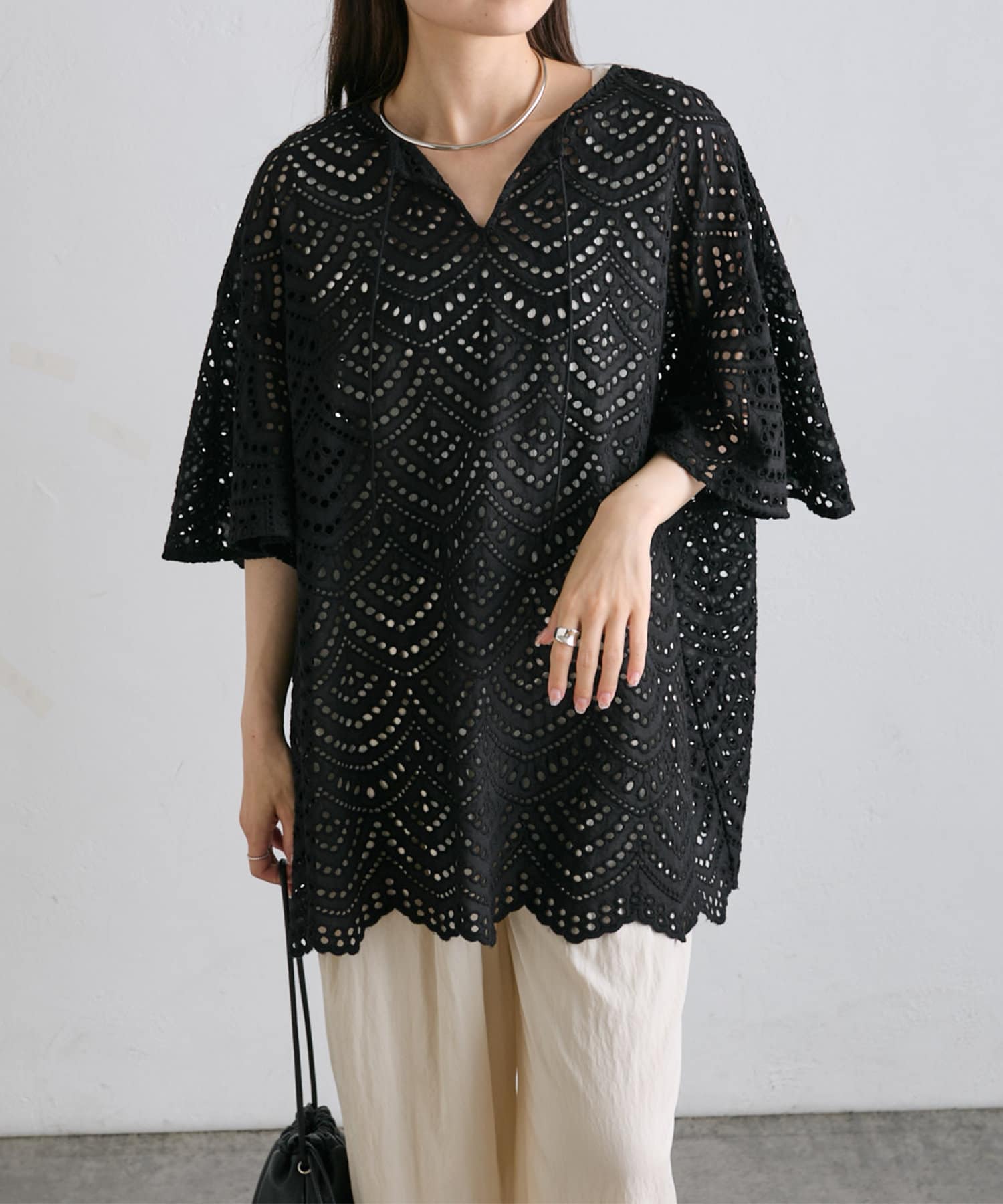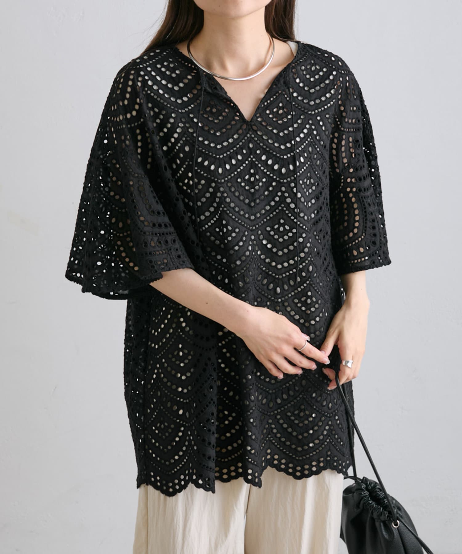 夏の時期から秋ムードを高めてくれるスカラップレースチュニック。