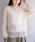繊細な花柄を表現したレースを使用したプルオーバーブラウス。