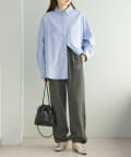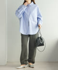 華奢見えする抜け感たっぷりなオーバーシルエットに、きちんと感のあるボタンダウンの襟元が絶妙なバランス。