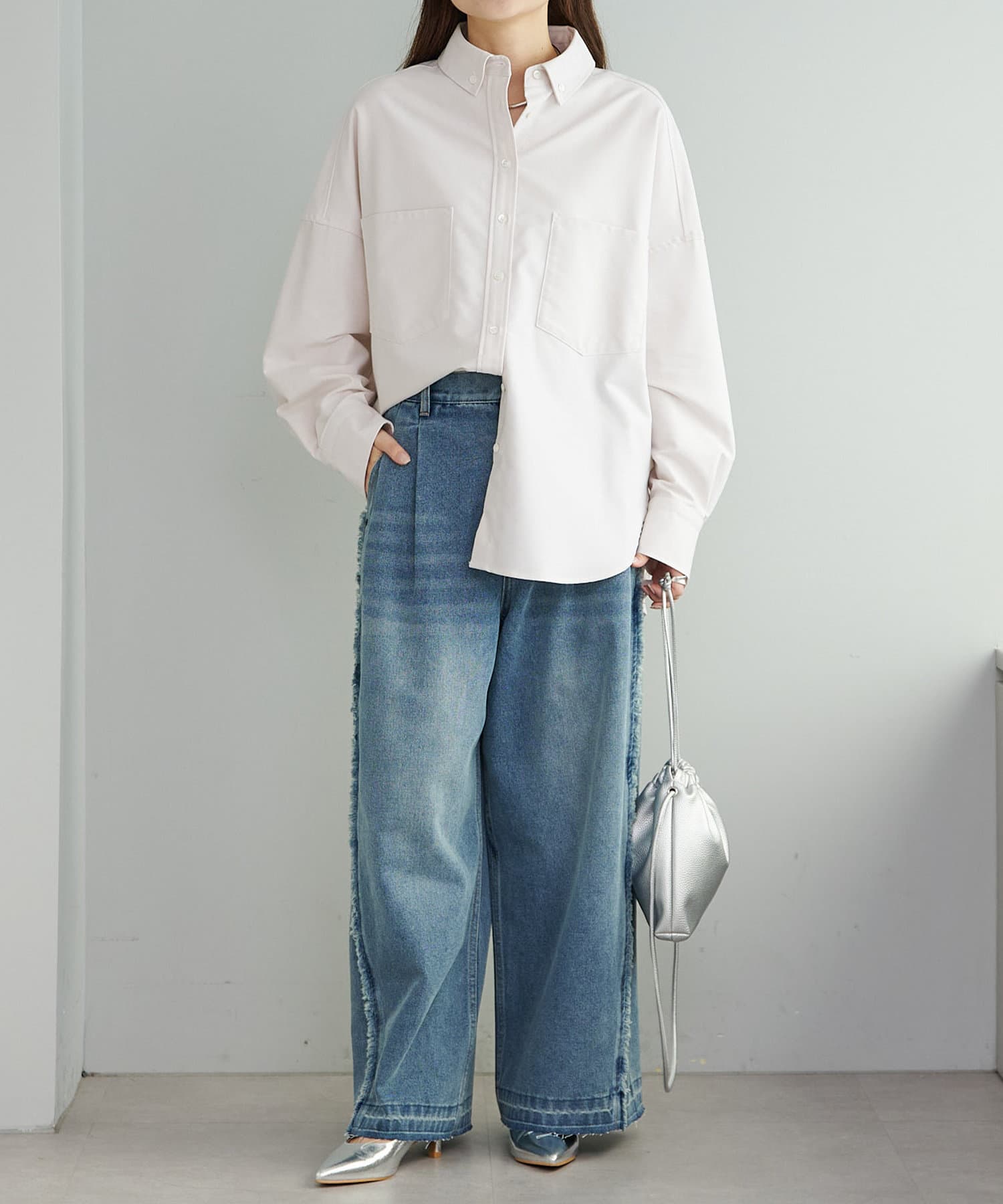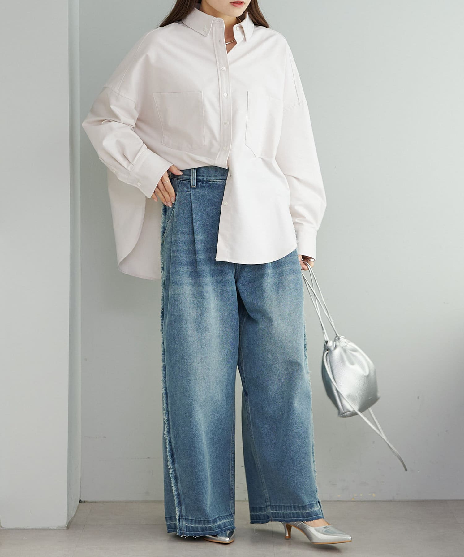 メンズライクなムードを漂わせるオーバーサイズシルエットのオックスフォードシャツ。