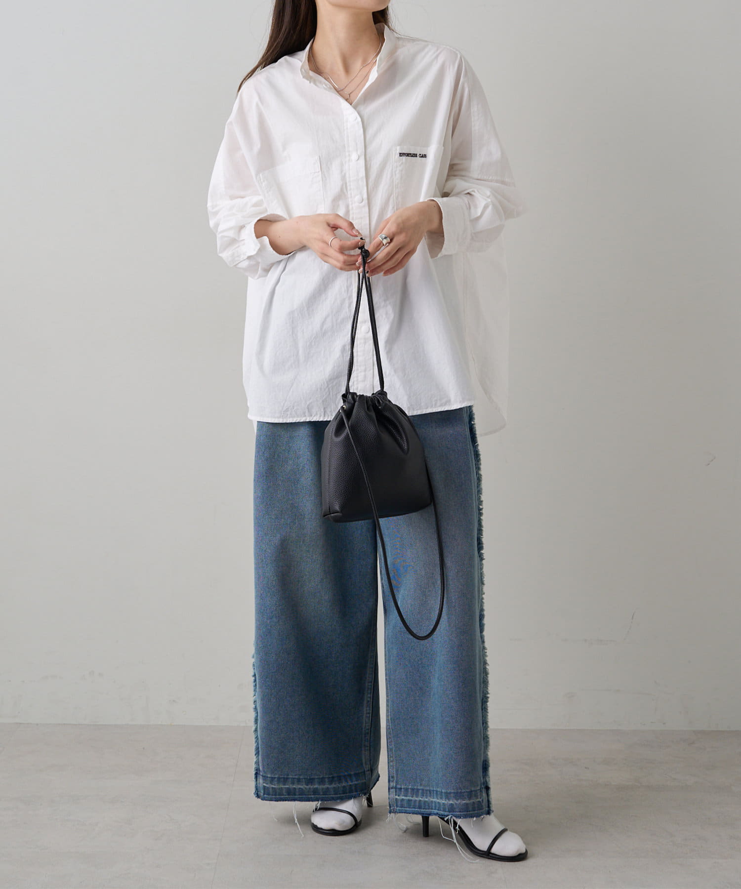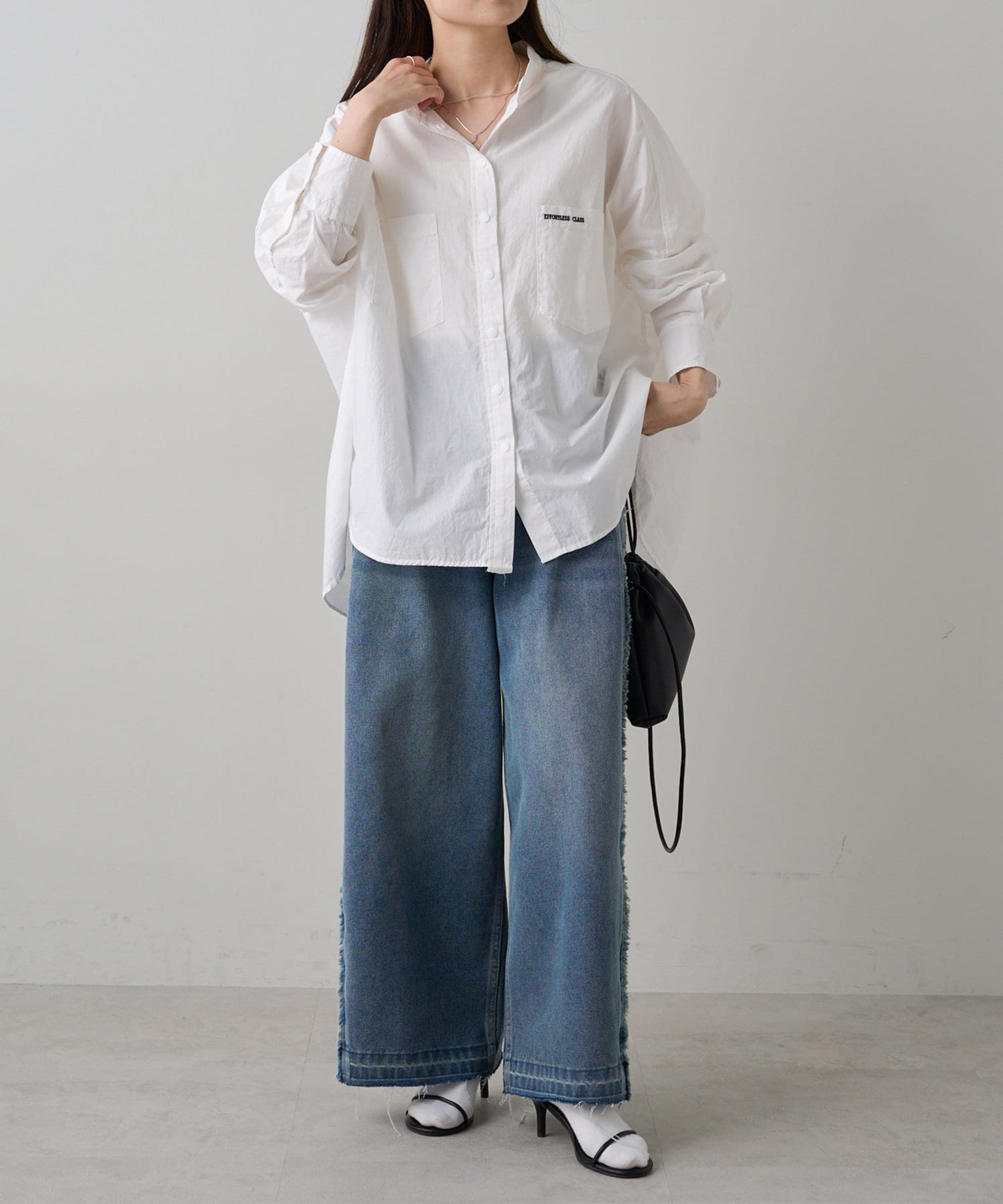 ワイドシルエットのデニムパンツやスラックスと合わせて、