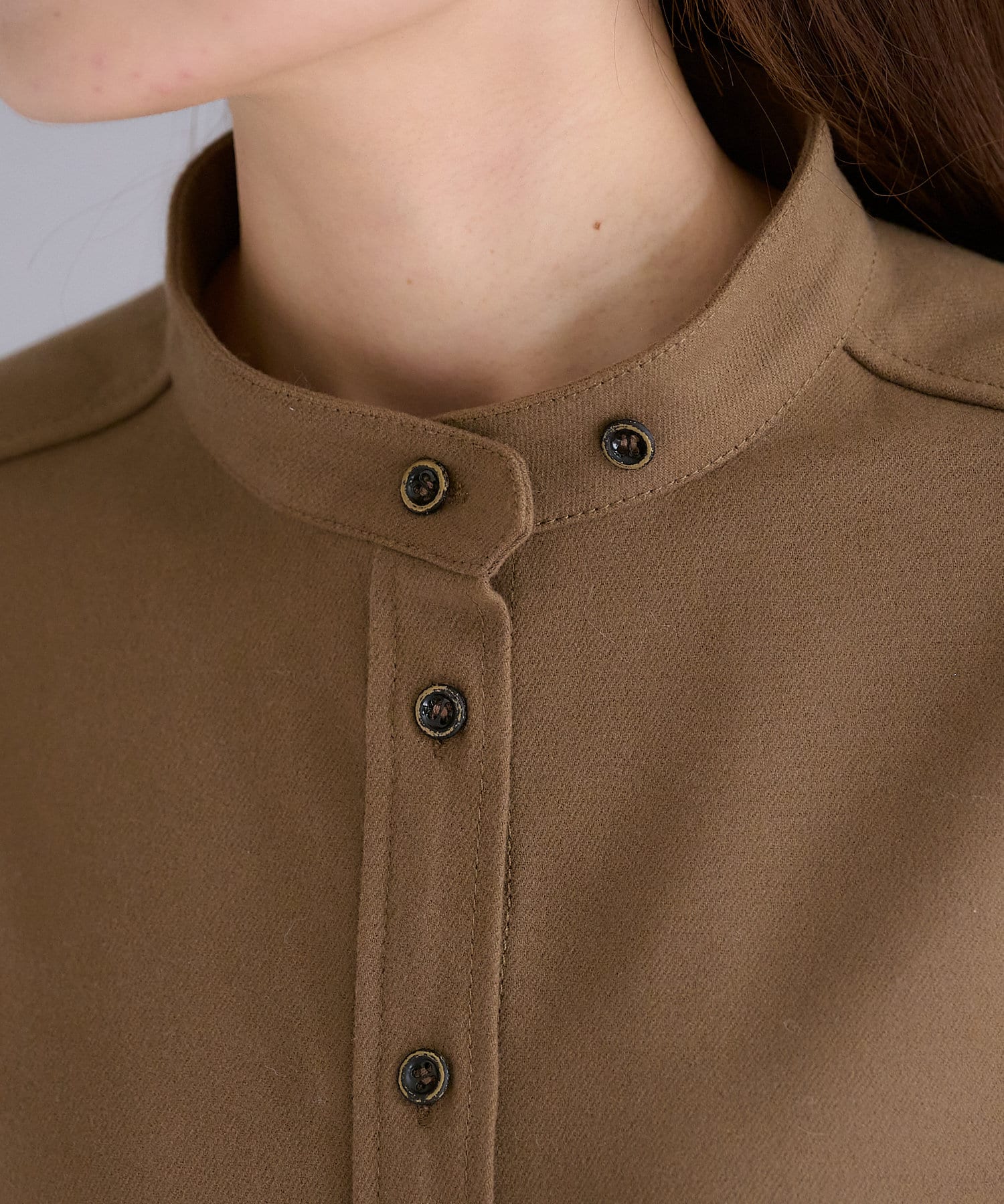 バンドカラーにすることで、程よいきちんと感も兼ね備えています。