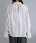 襟フリルや袖のフレアデザインが可愛らしい印象ながらも、控えめなフリルを施したバンドカラーが大人も着やすいクラシカルな1枚に仕上げました。