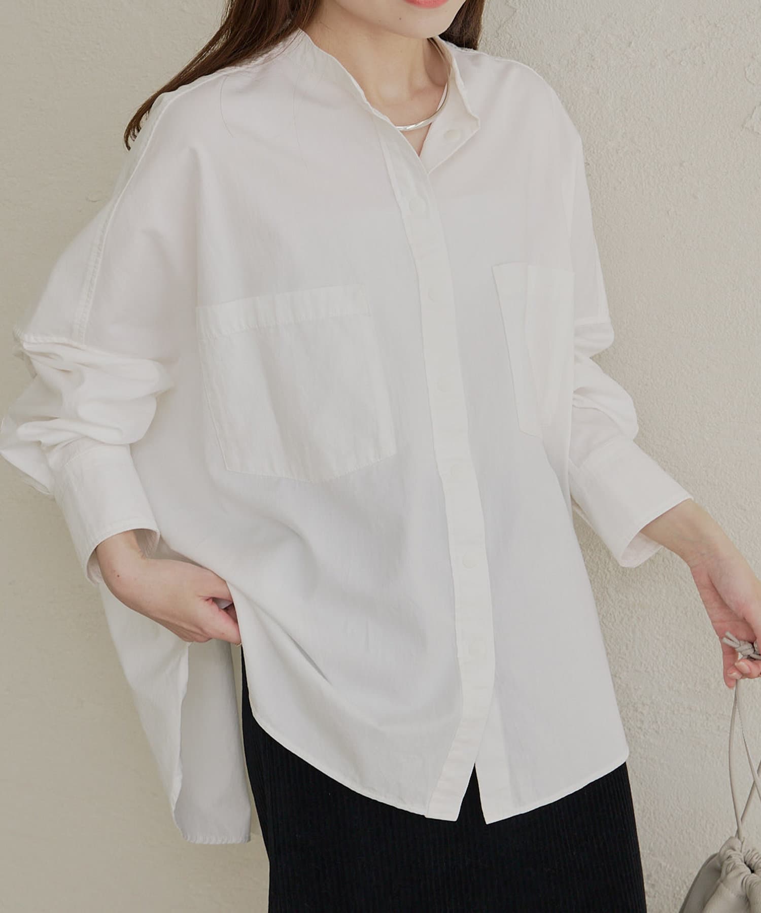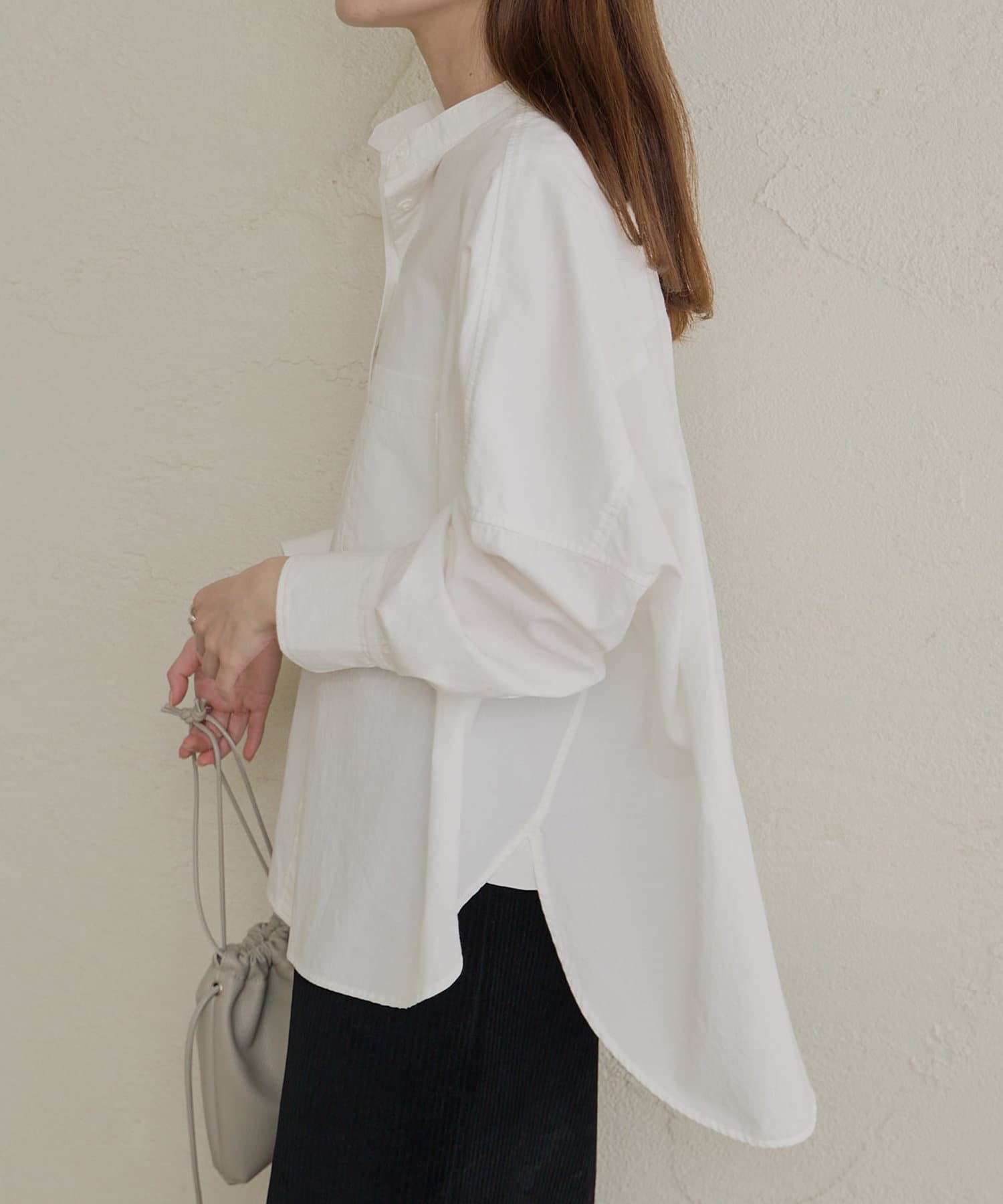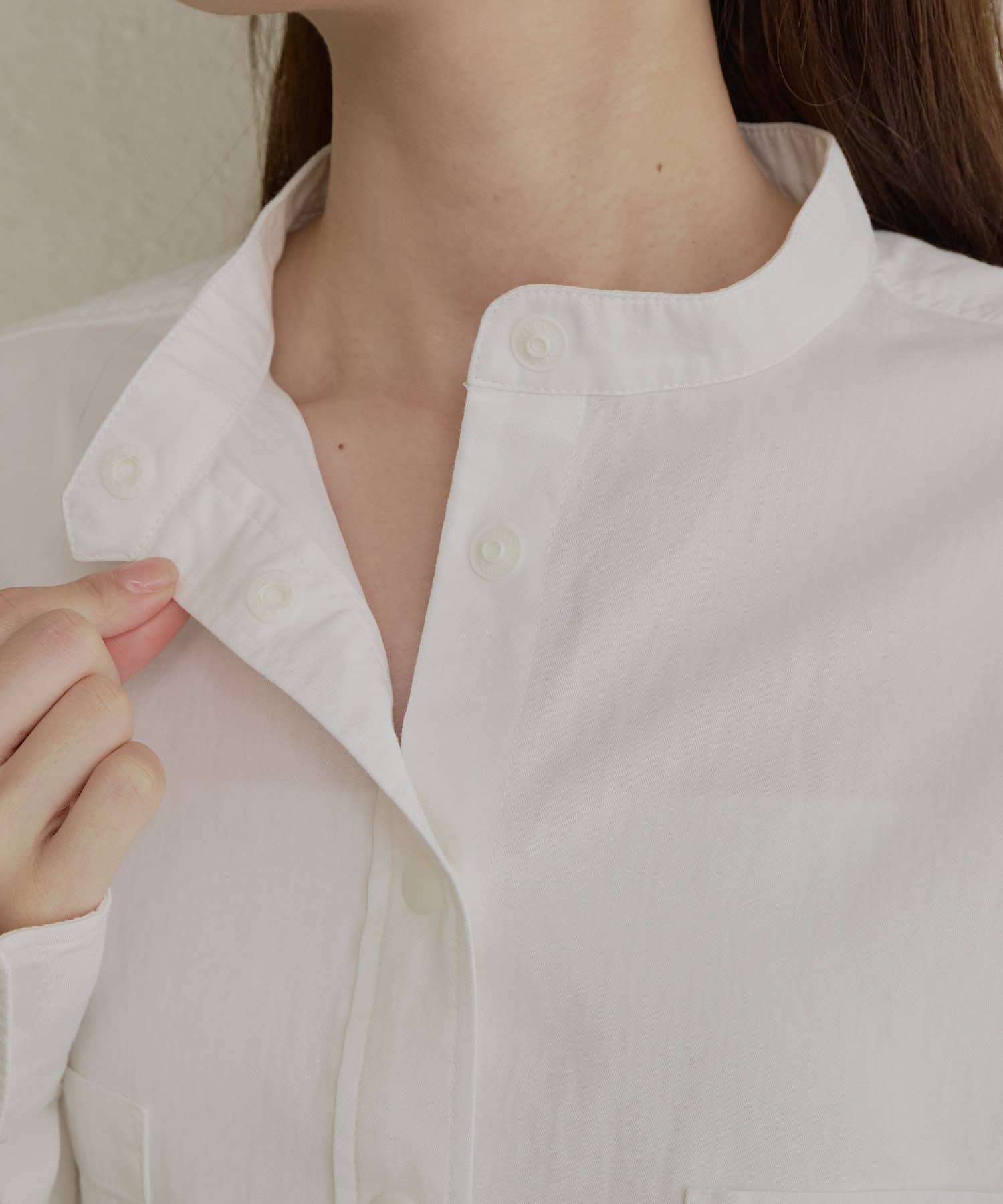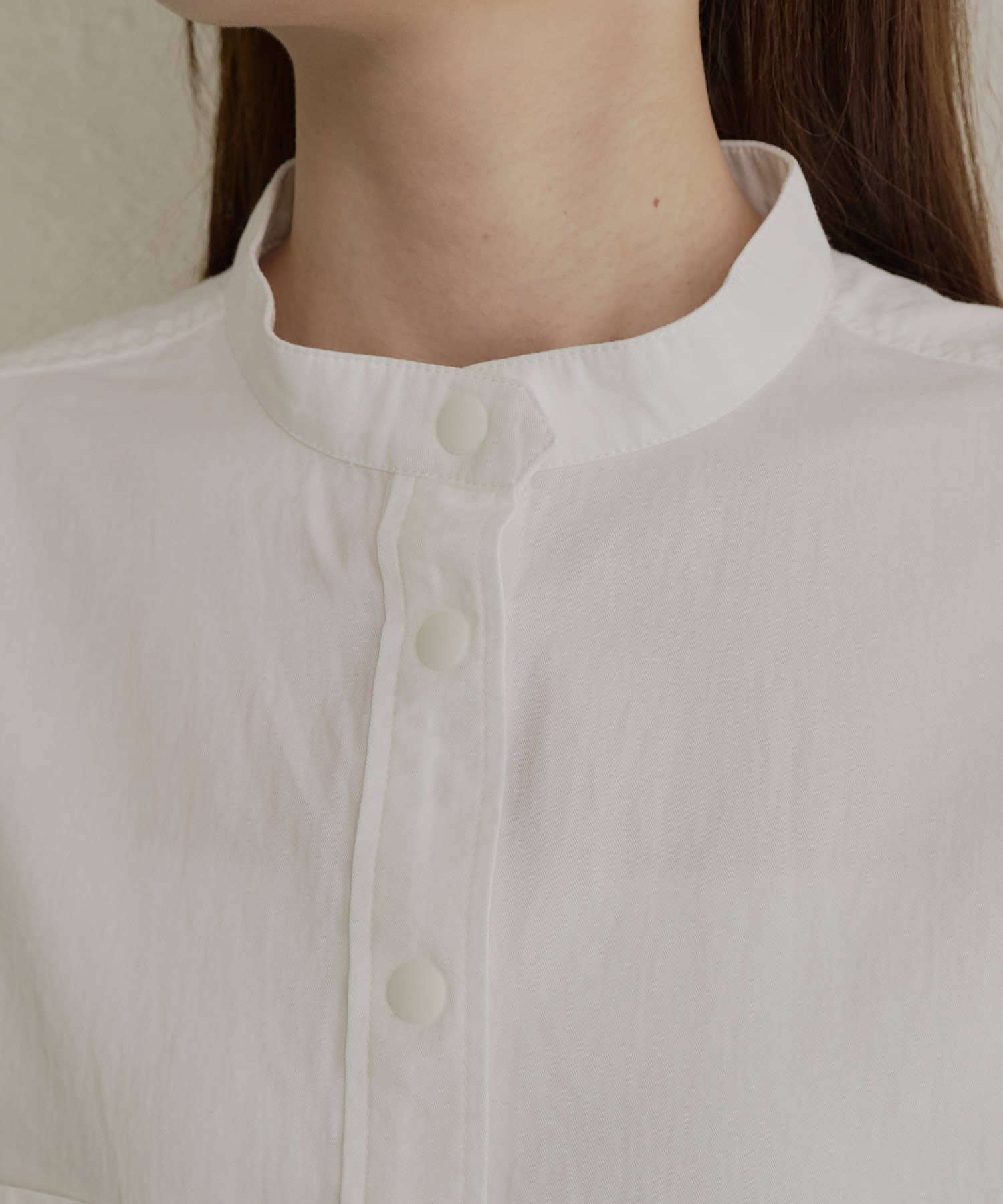 バンドカラーでスッキリとしたバランス感に。
