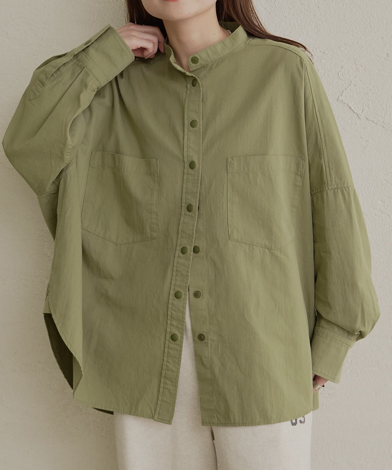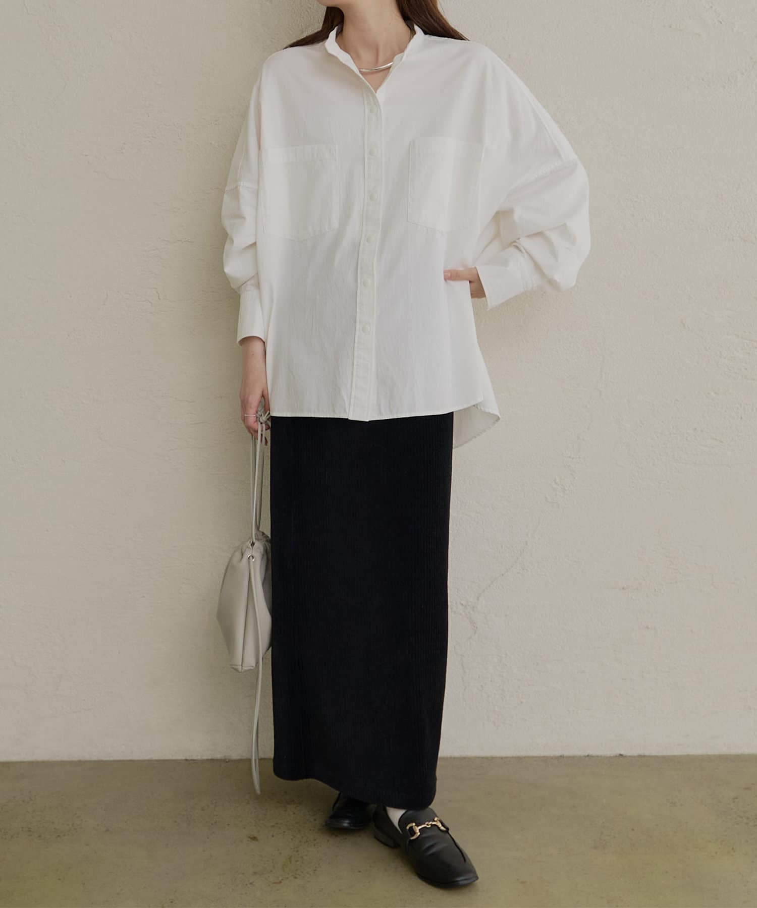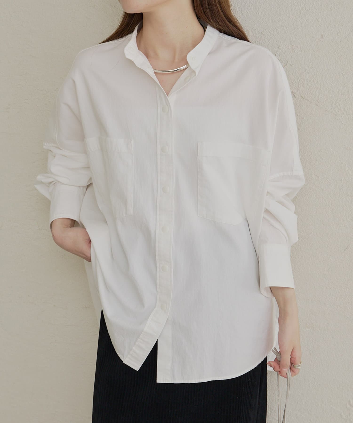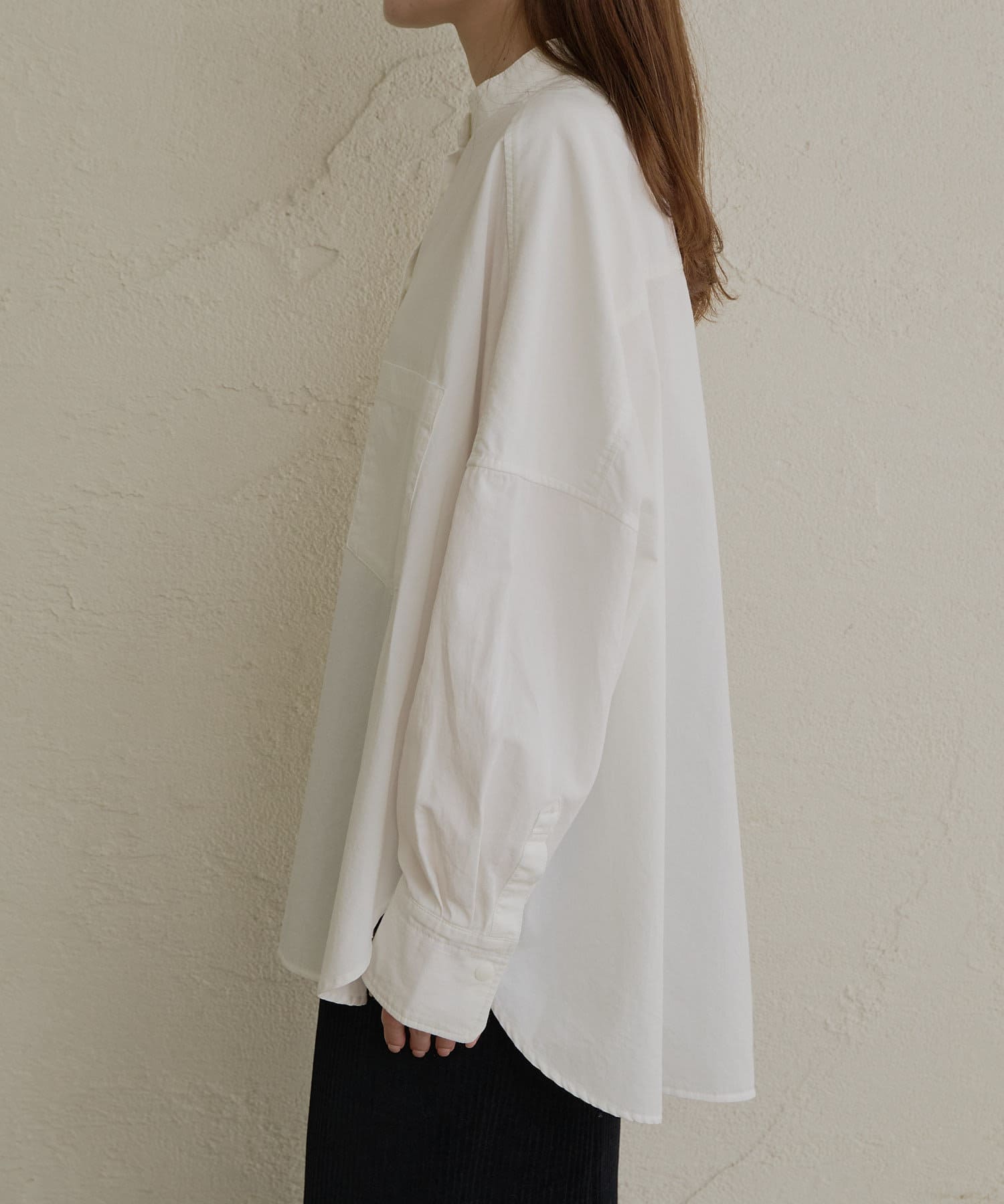 バンドカラーでスッキリとしたバランス感に。