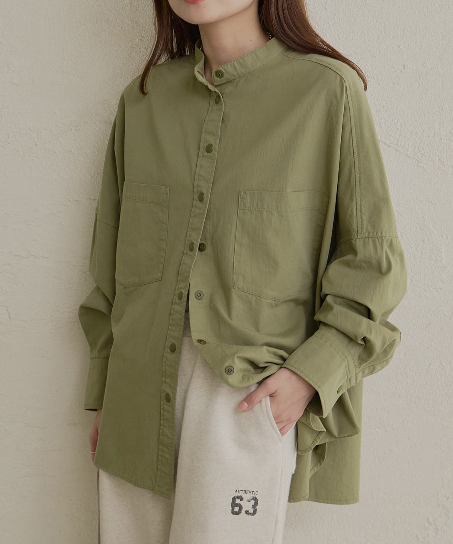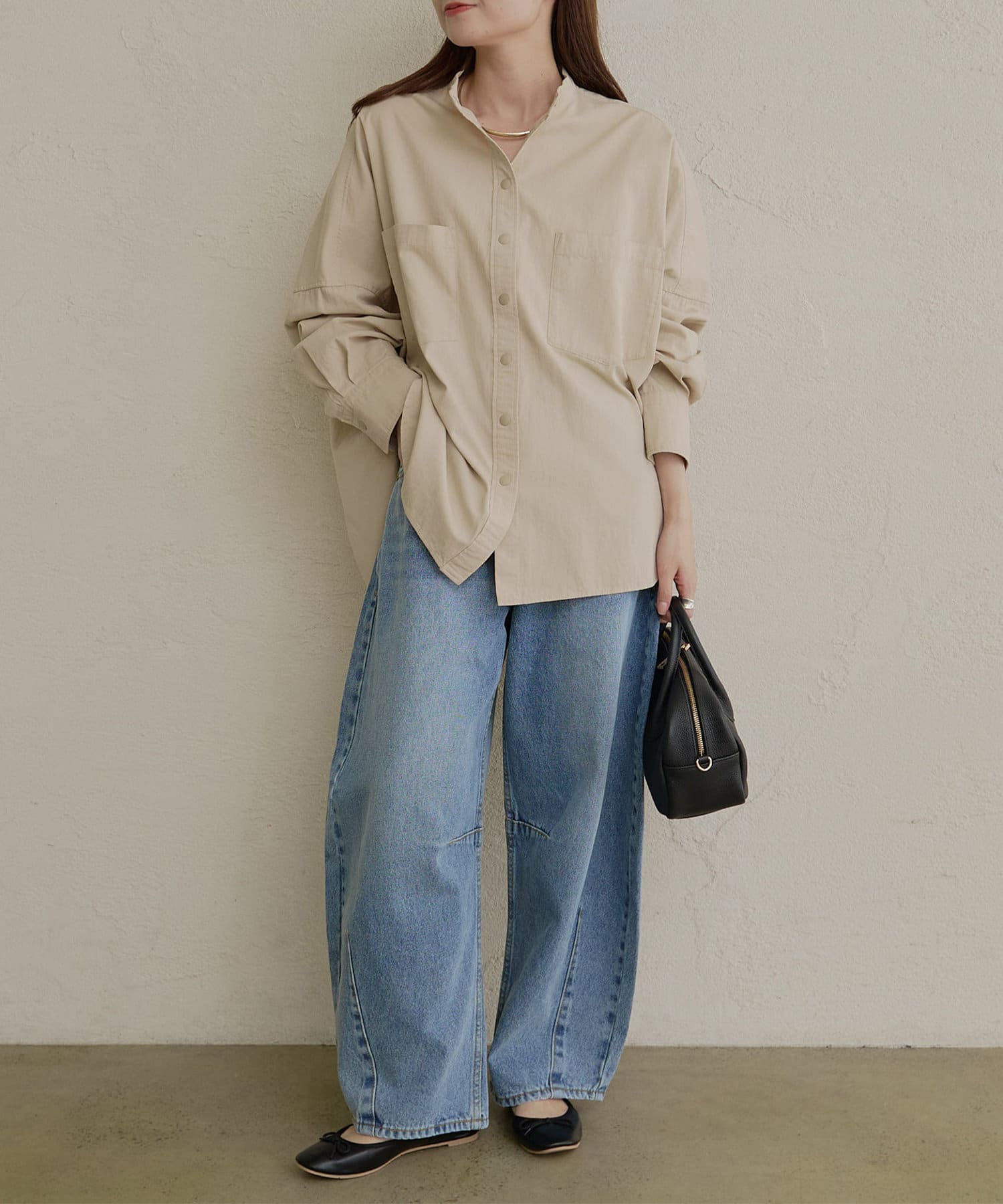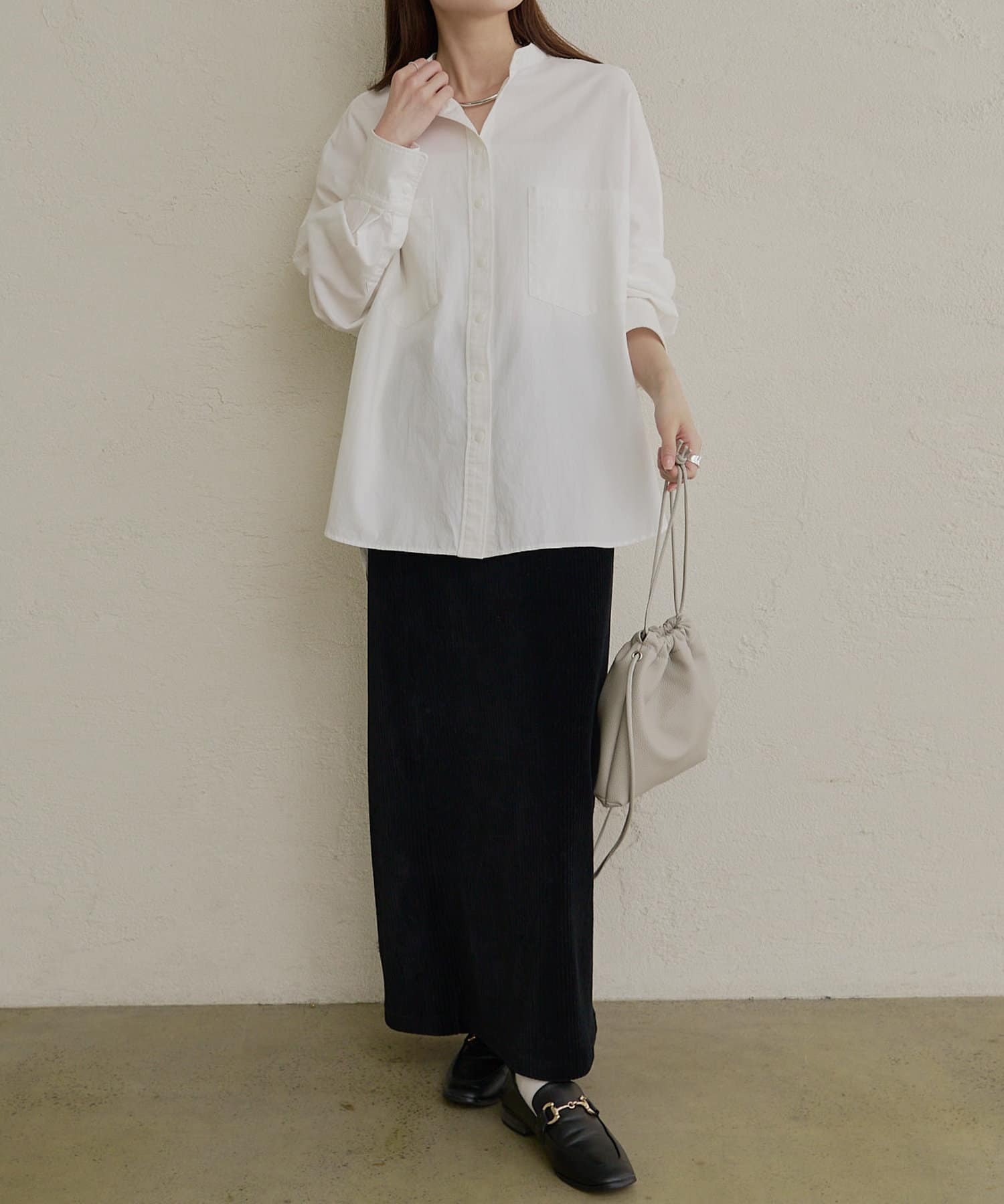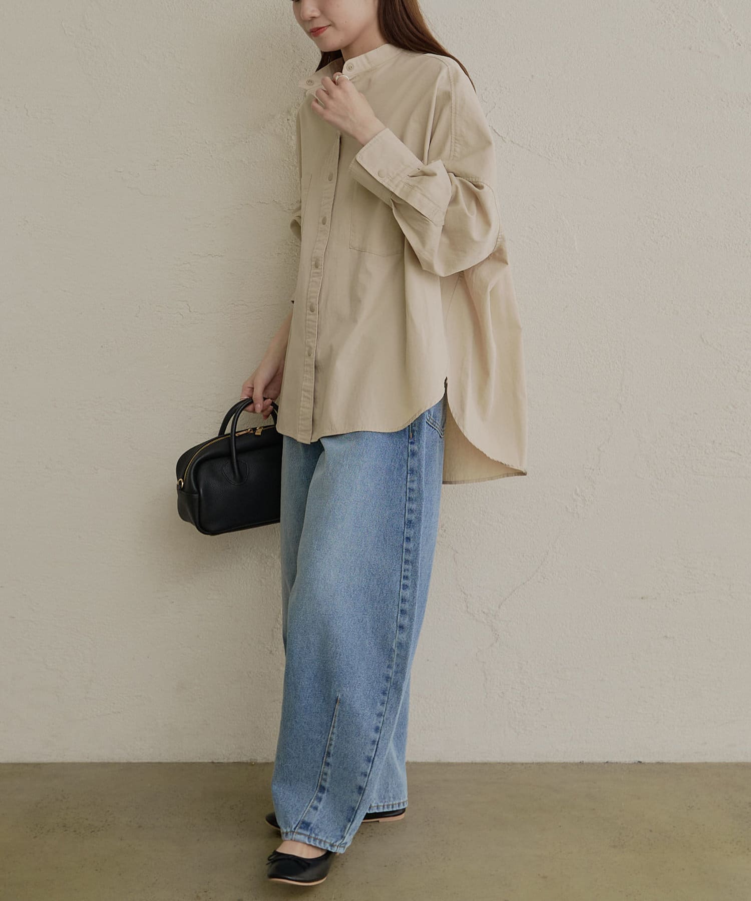 バンドカラーでスッキリとしたバランス感に。