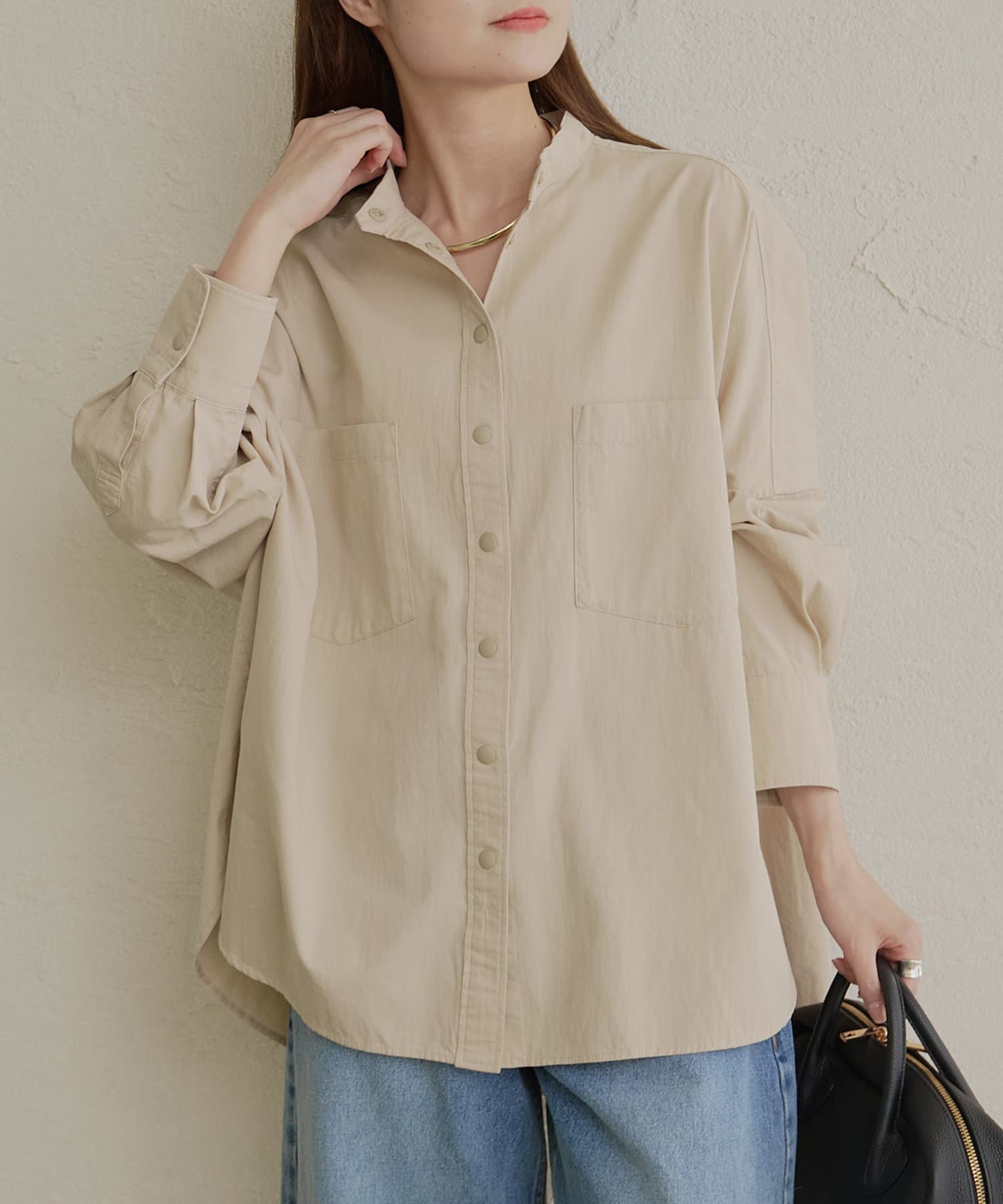 コットンビエラバンドカラーブラウス