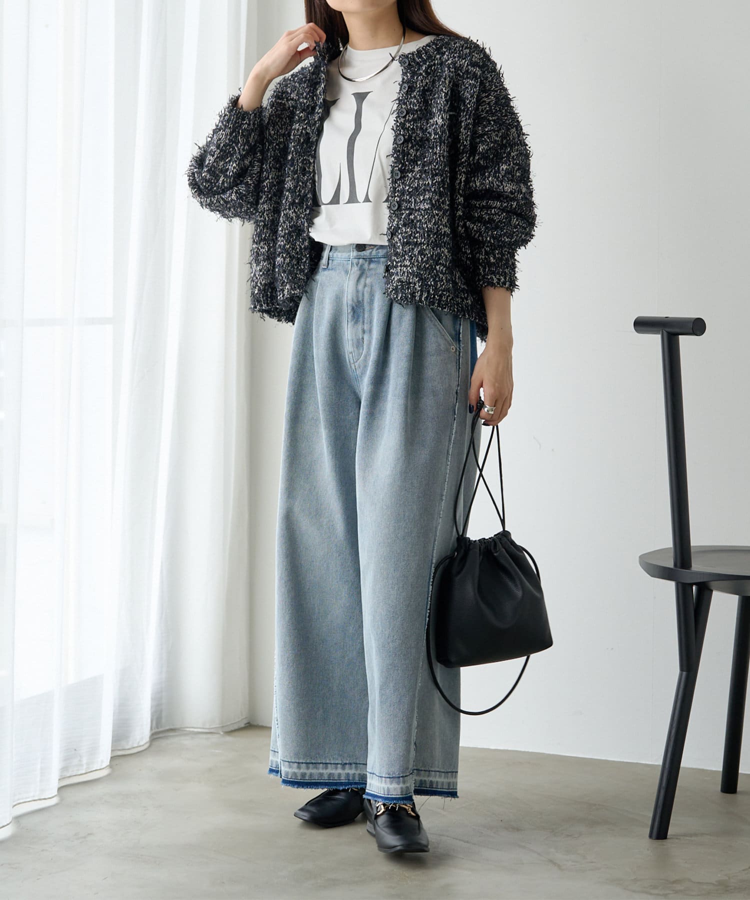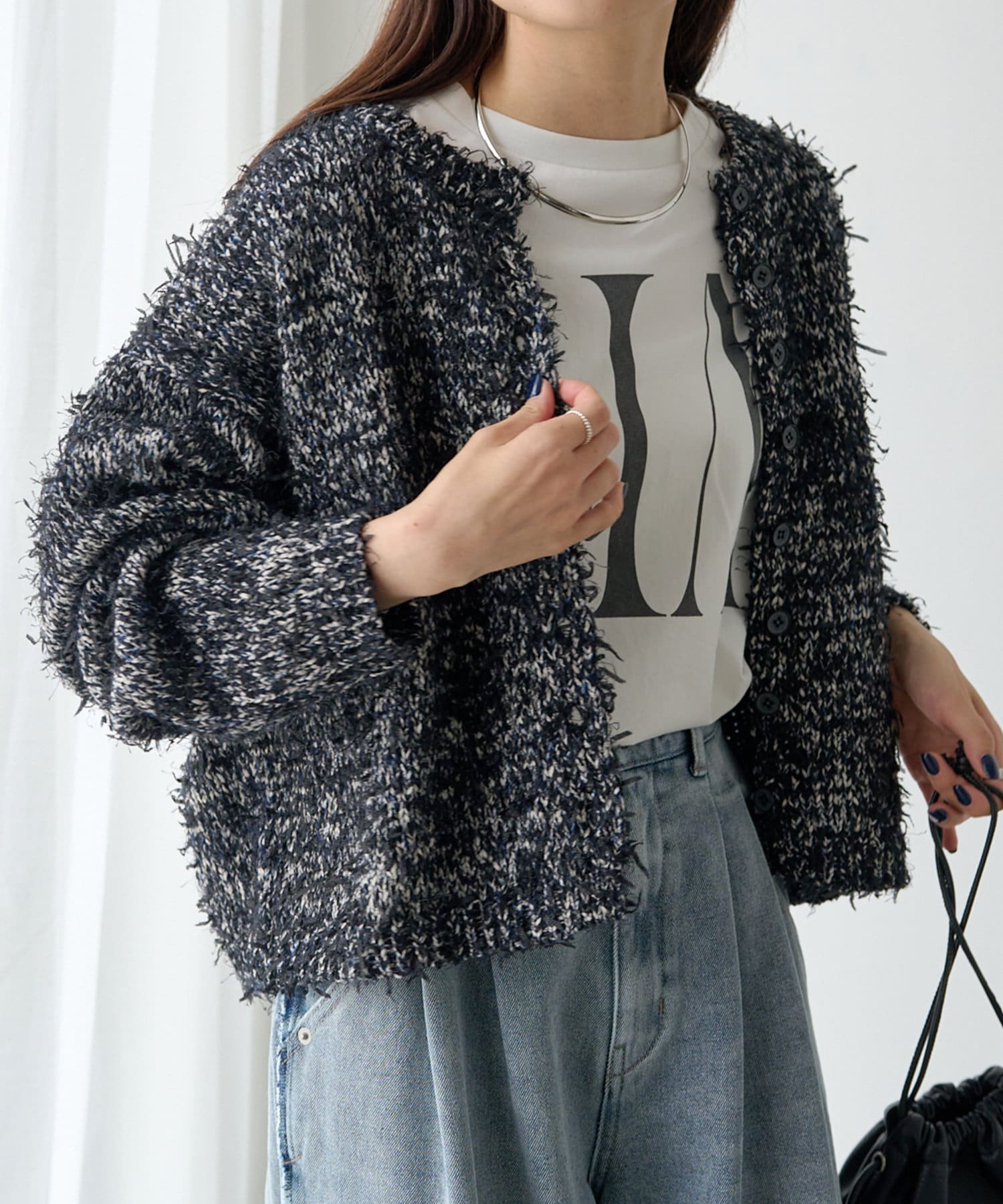 秋はシャツやロゴTに合わせてカーディガンとして、