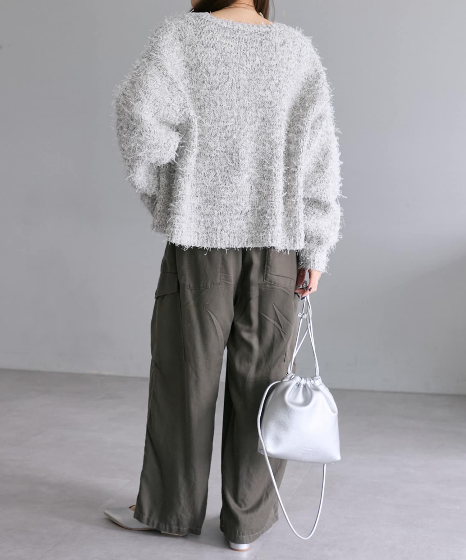 素材感:伸縮性もあり、肌当たりが柔らかいアクリル混のニット素材です。