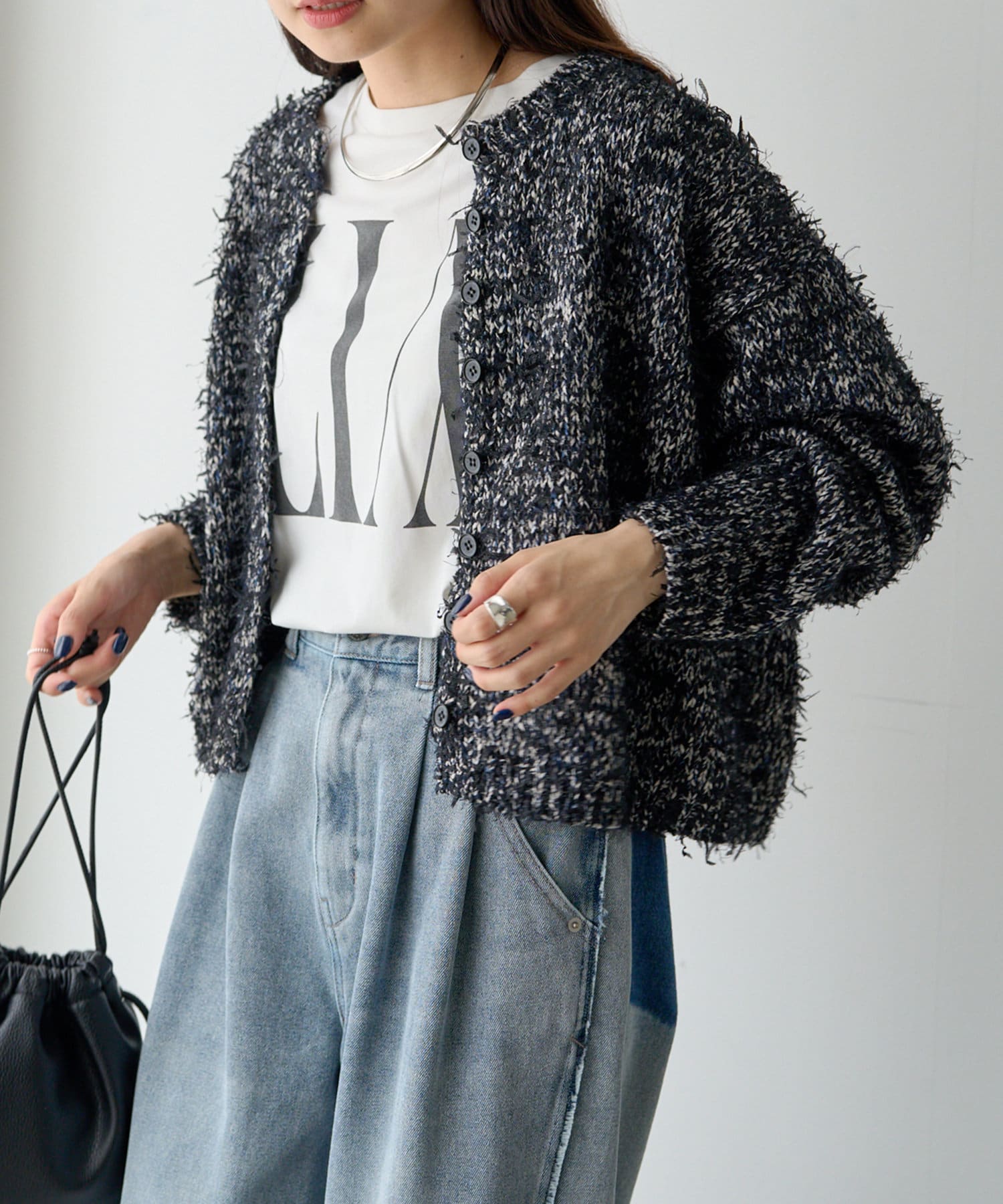 秋はシャツやロゴTに合わせてカーディガンとして、