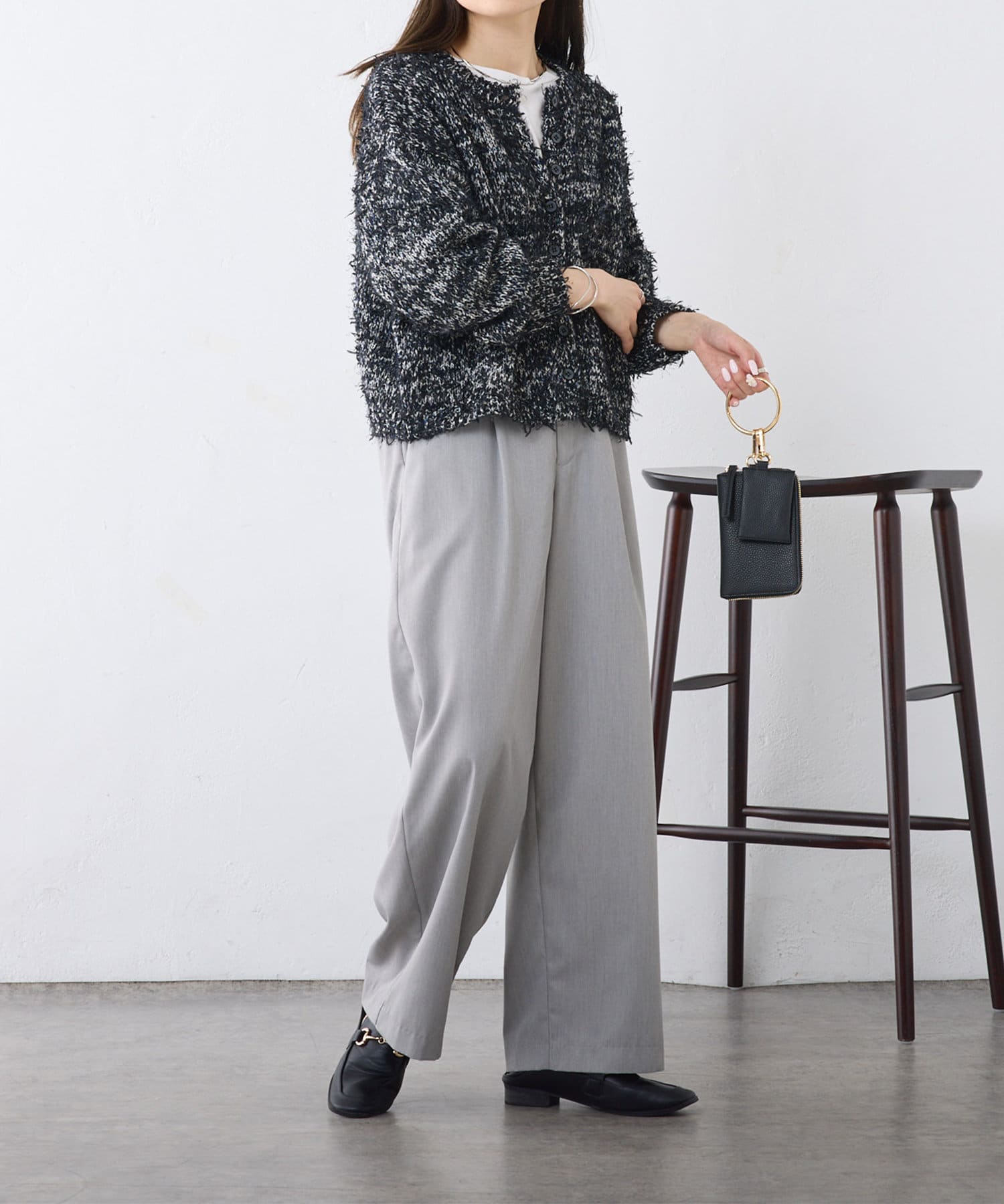 とろみ感のあるブラウスに合わせて上品さを演出してくれます。