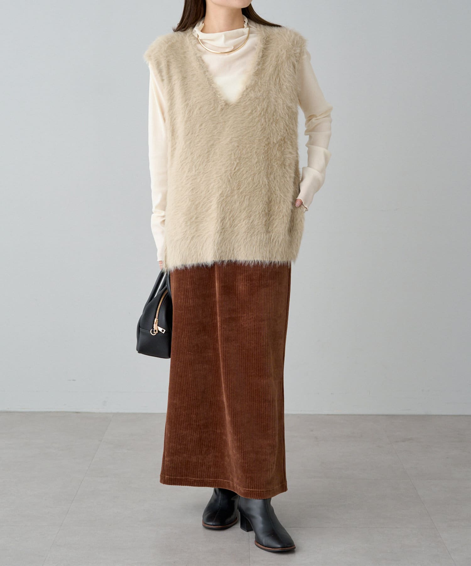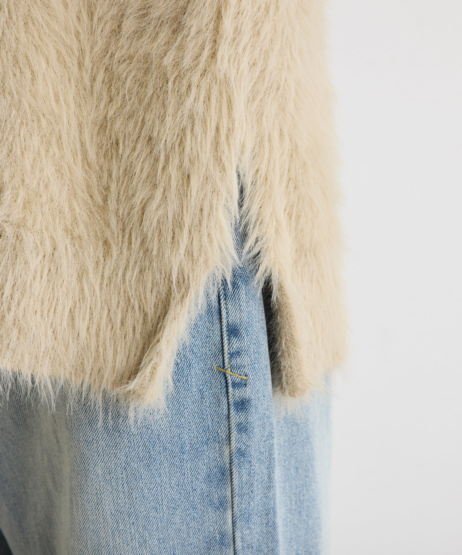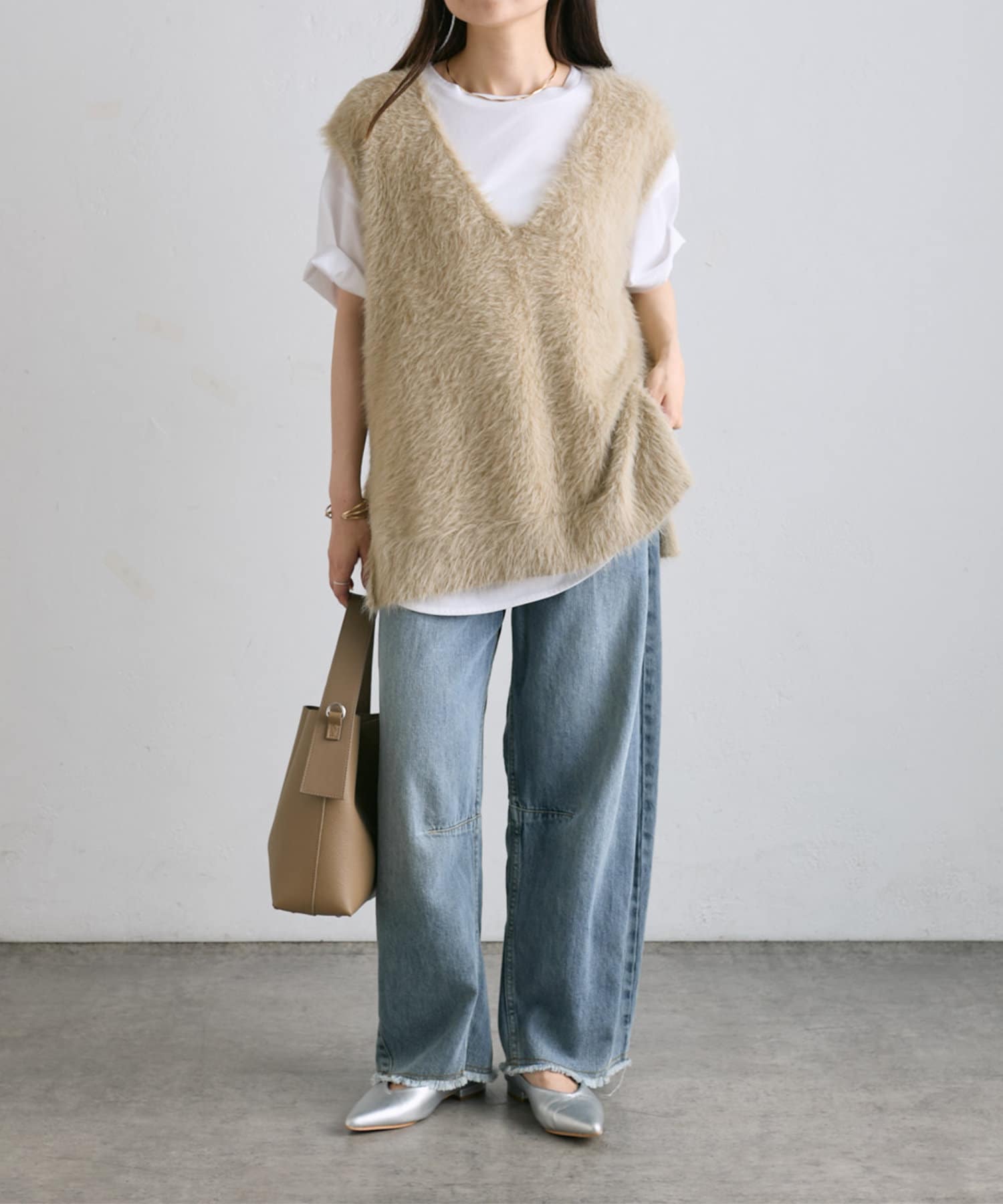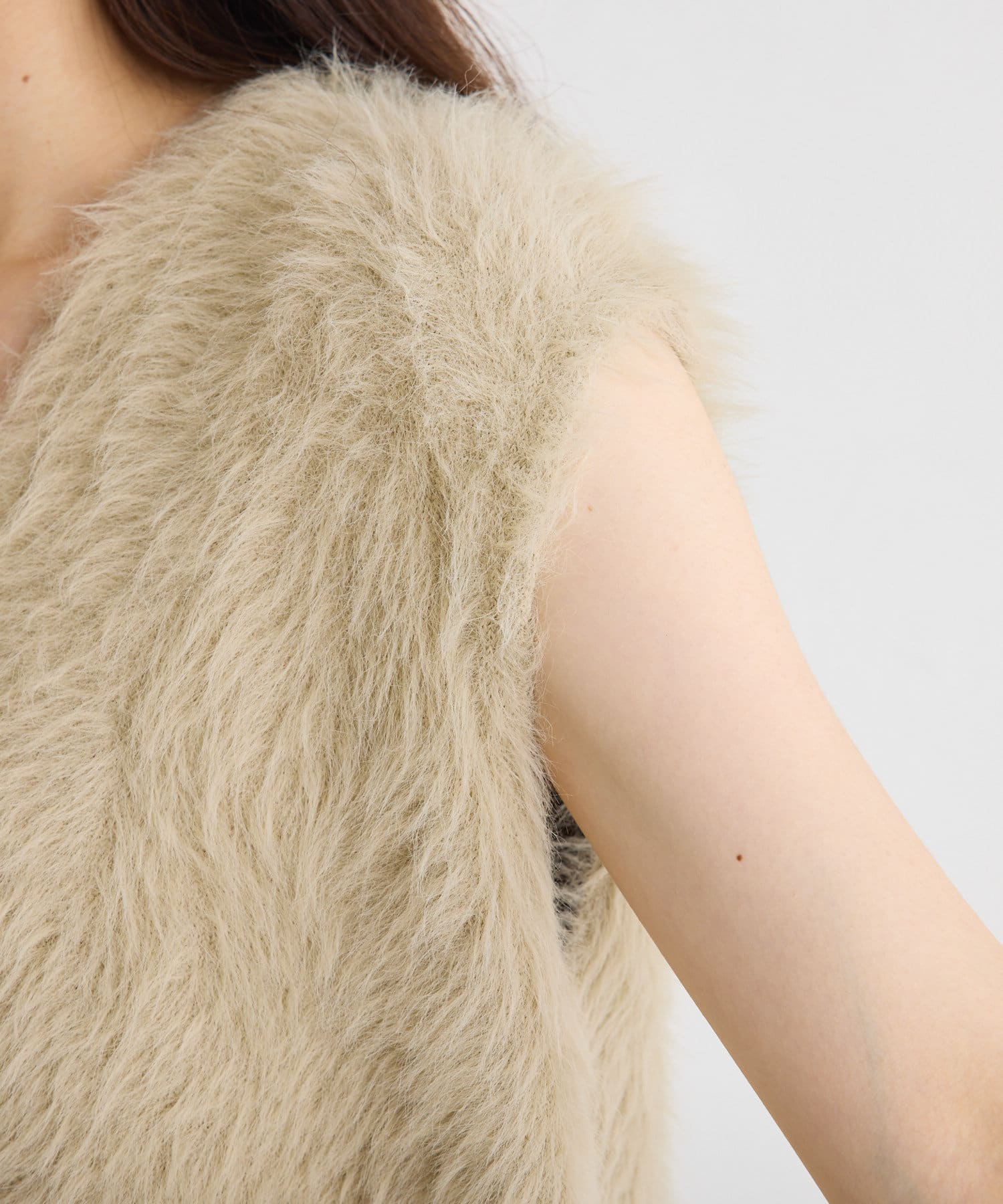 ボリューム感のある毛並みが1枚で華やかに決まるニットベスト。