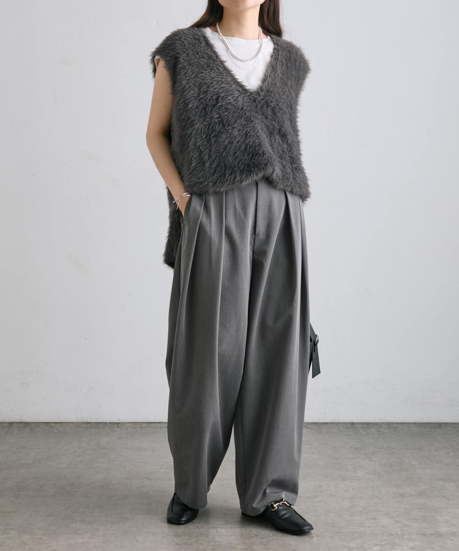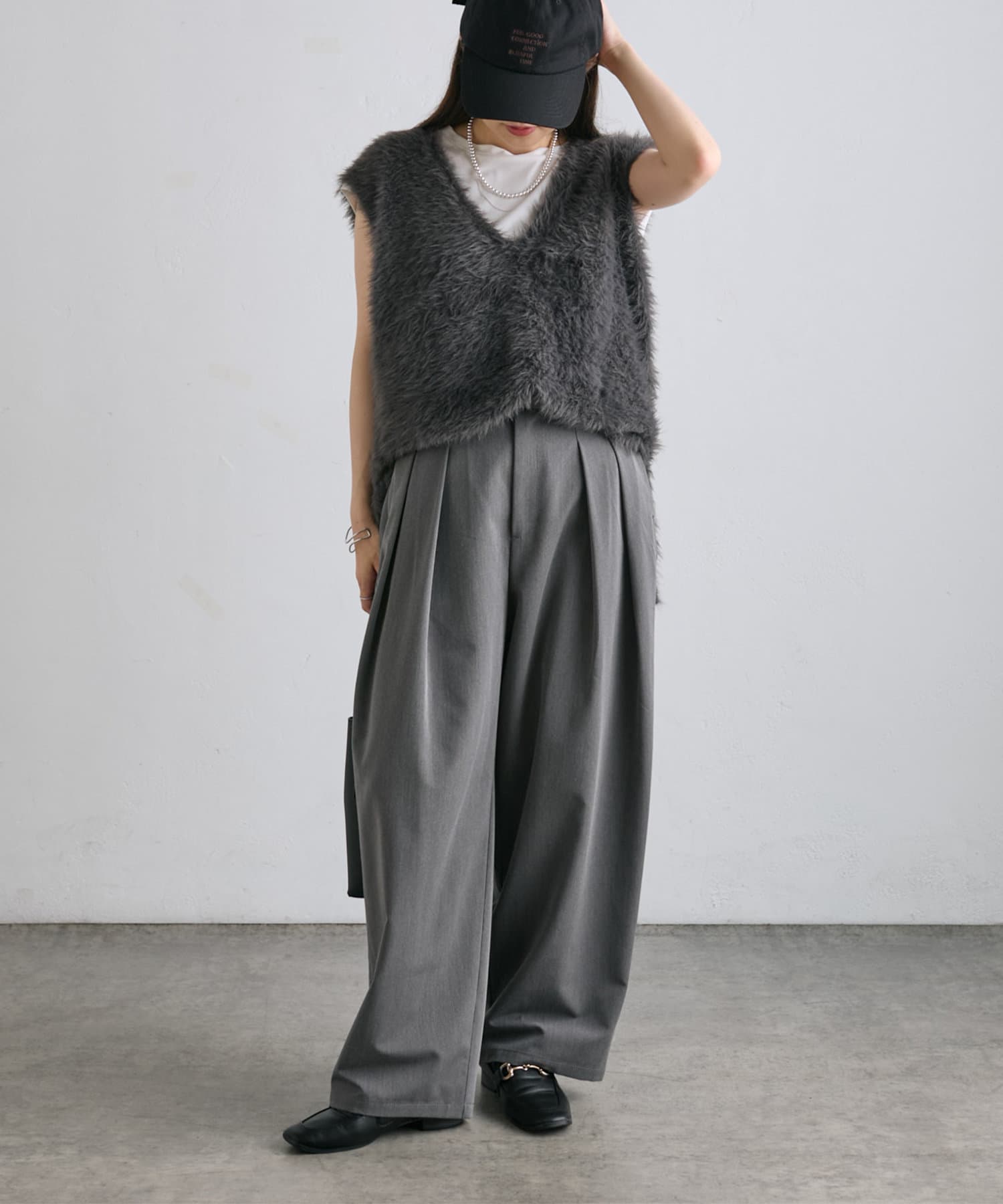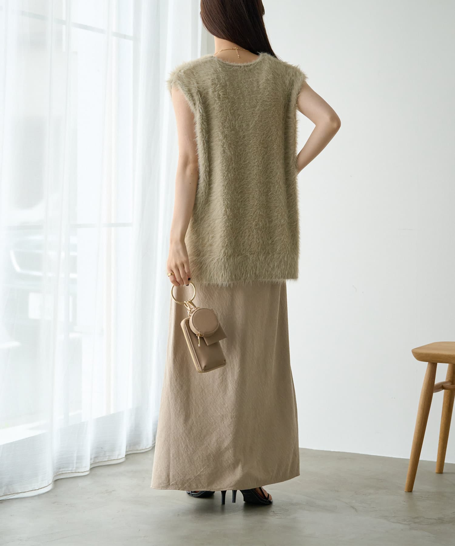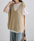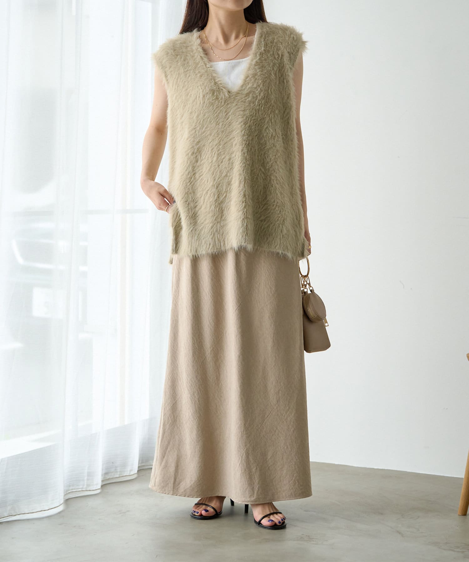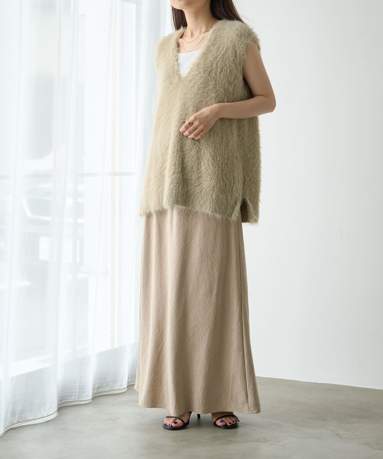 ボリューム感のある毛並みが1枚で華やかに決まるニットベスト。