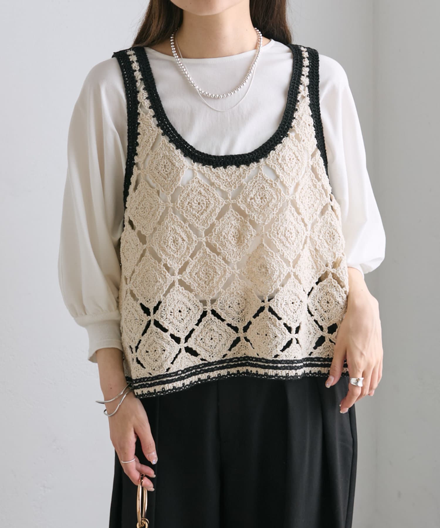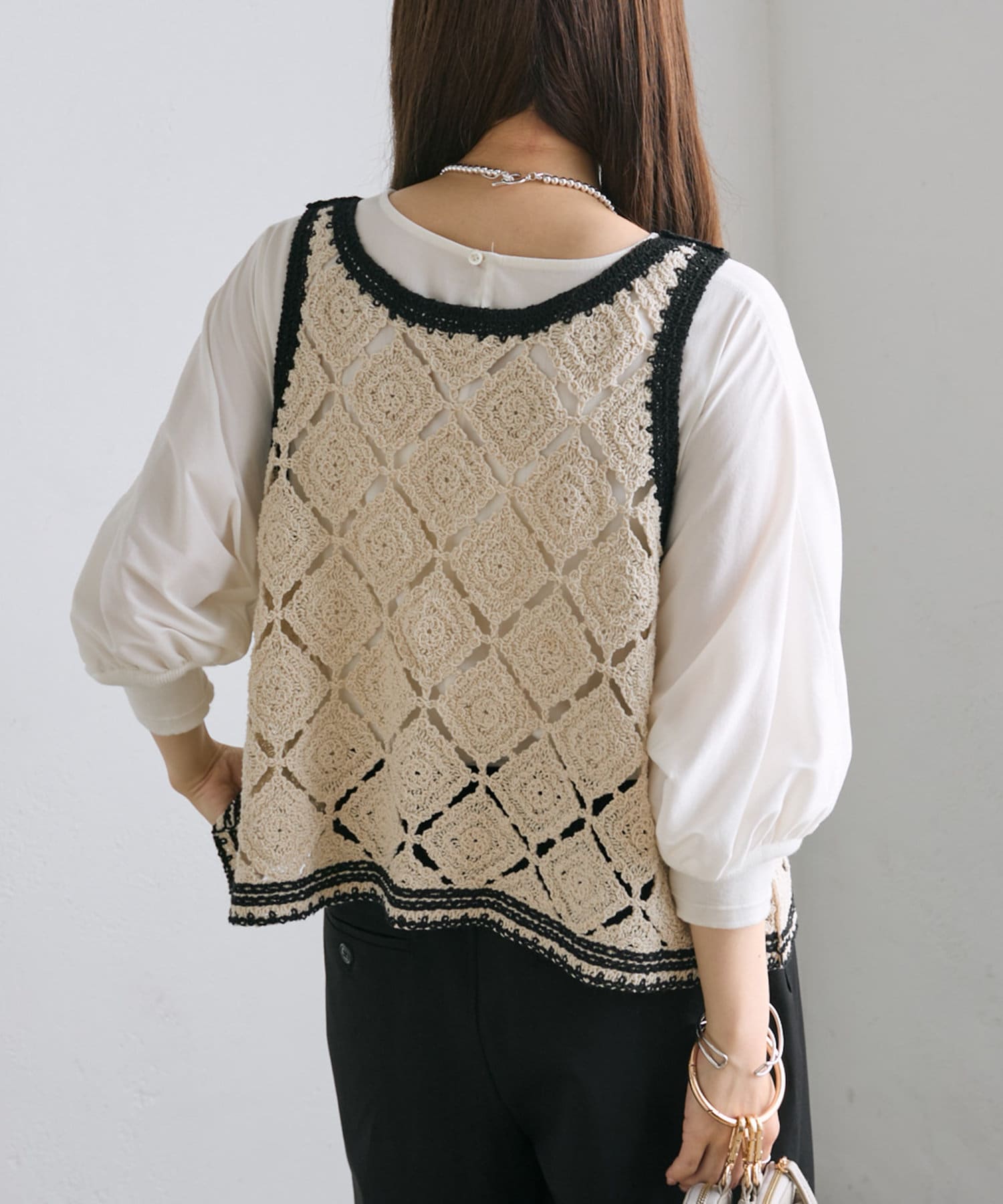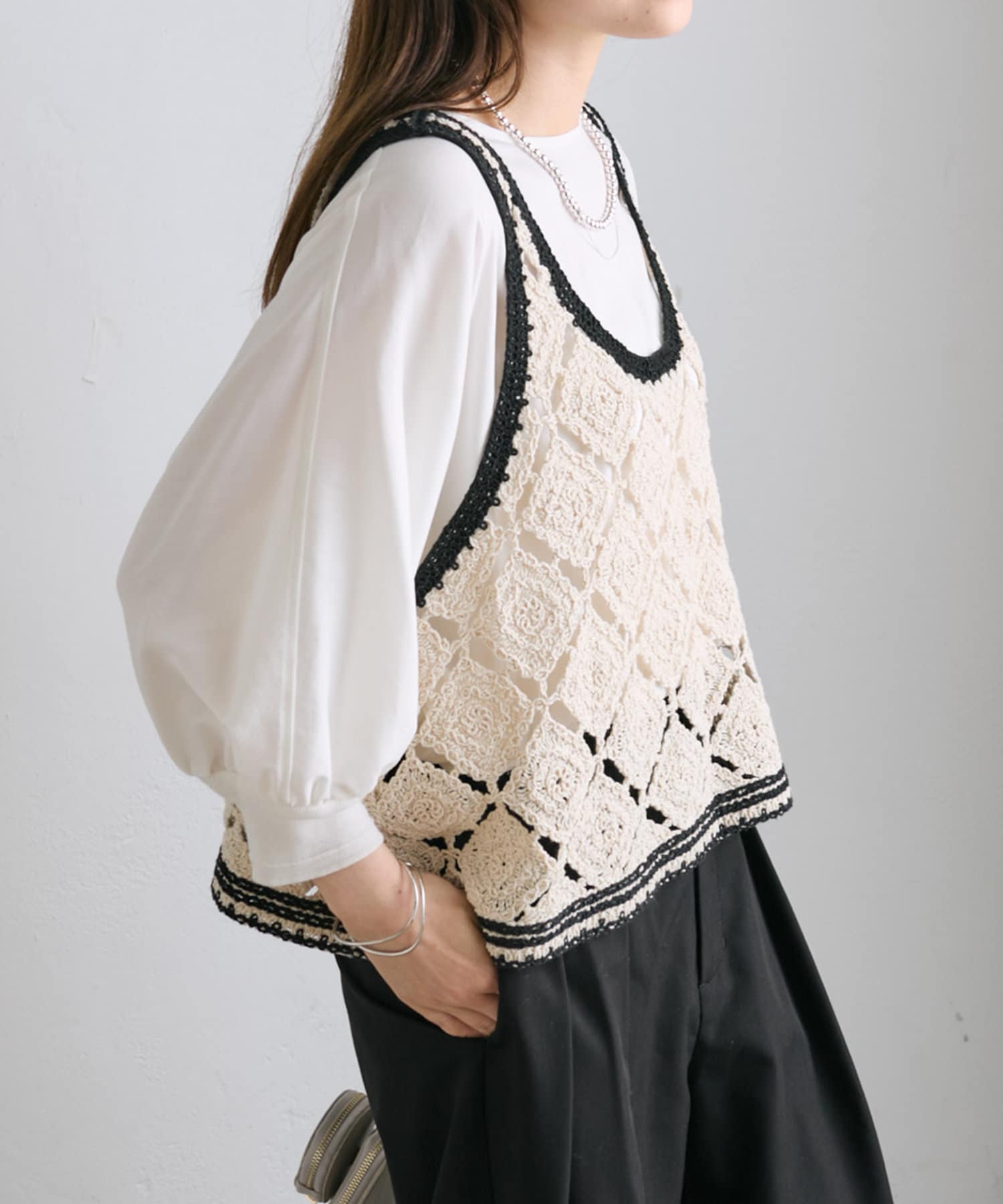 ◇コーデを格上げするかぎ針編み風ベスト◇