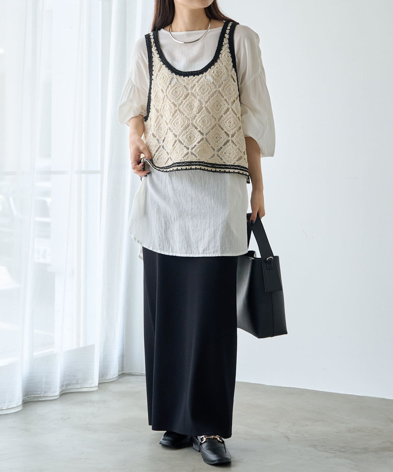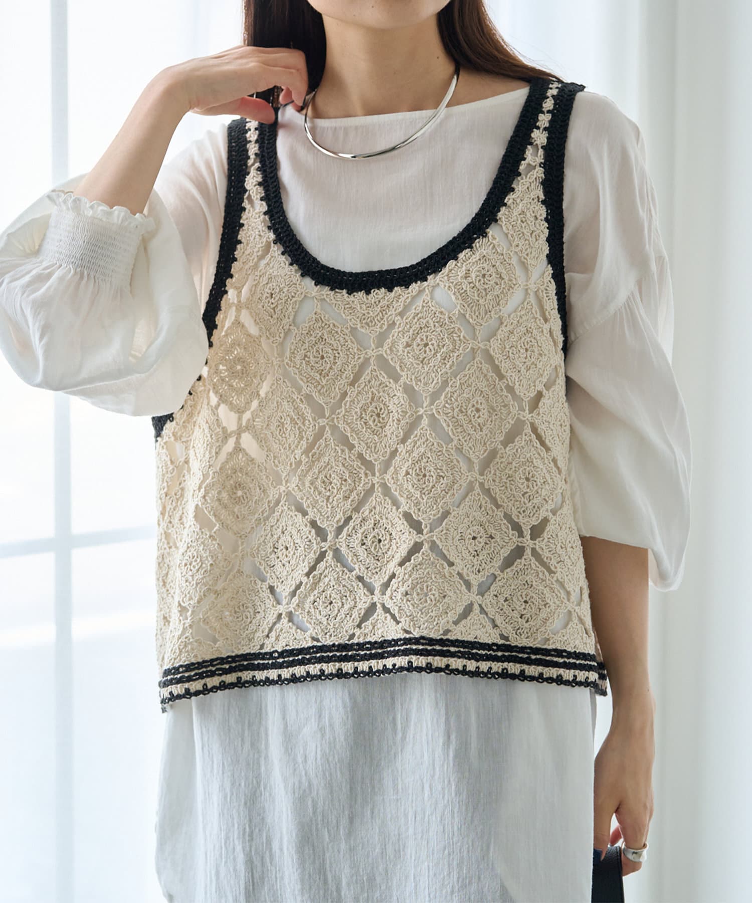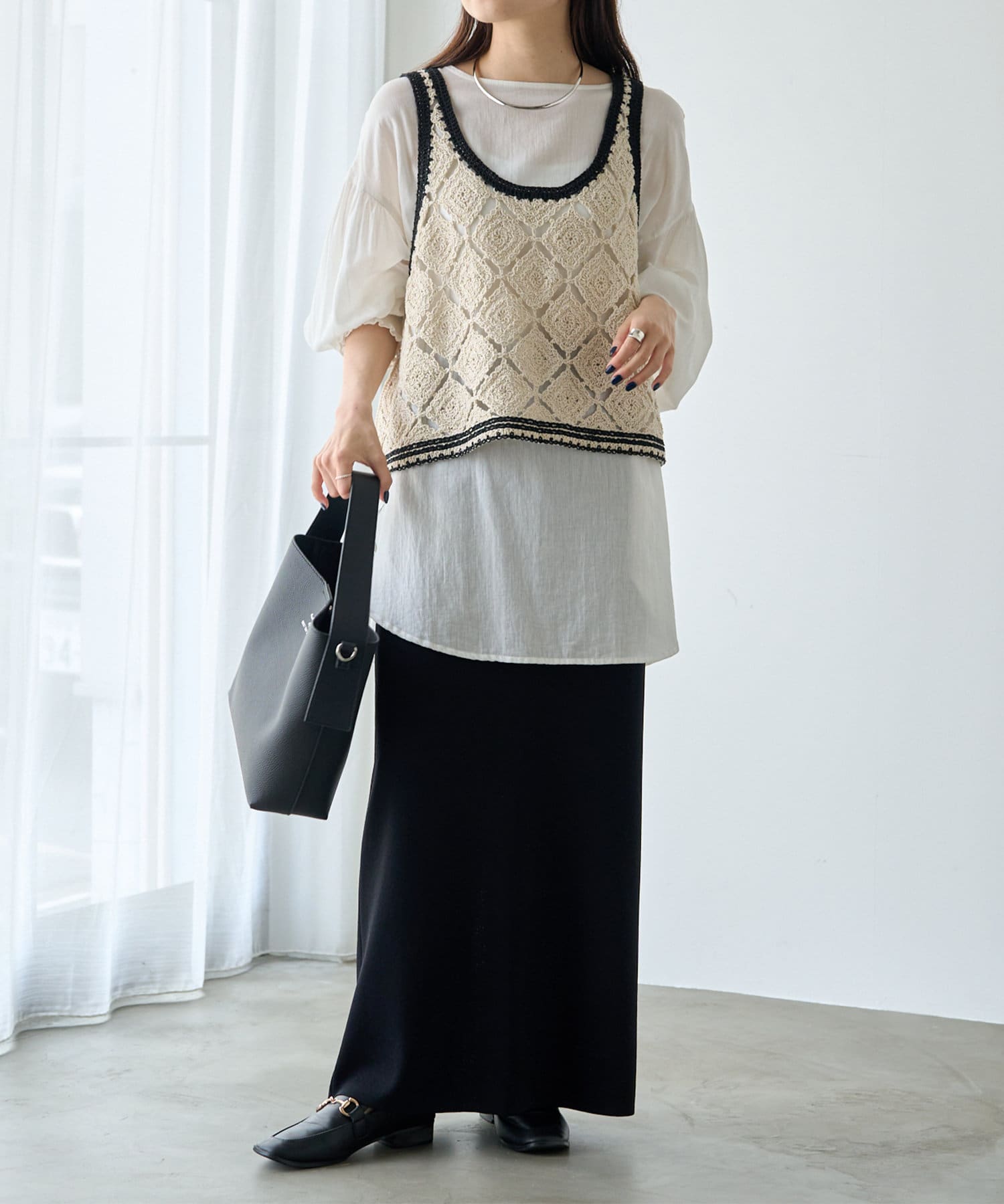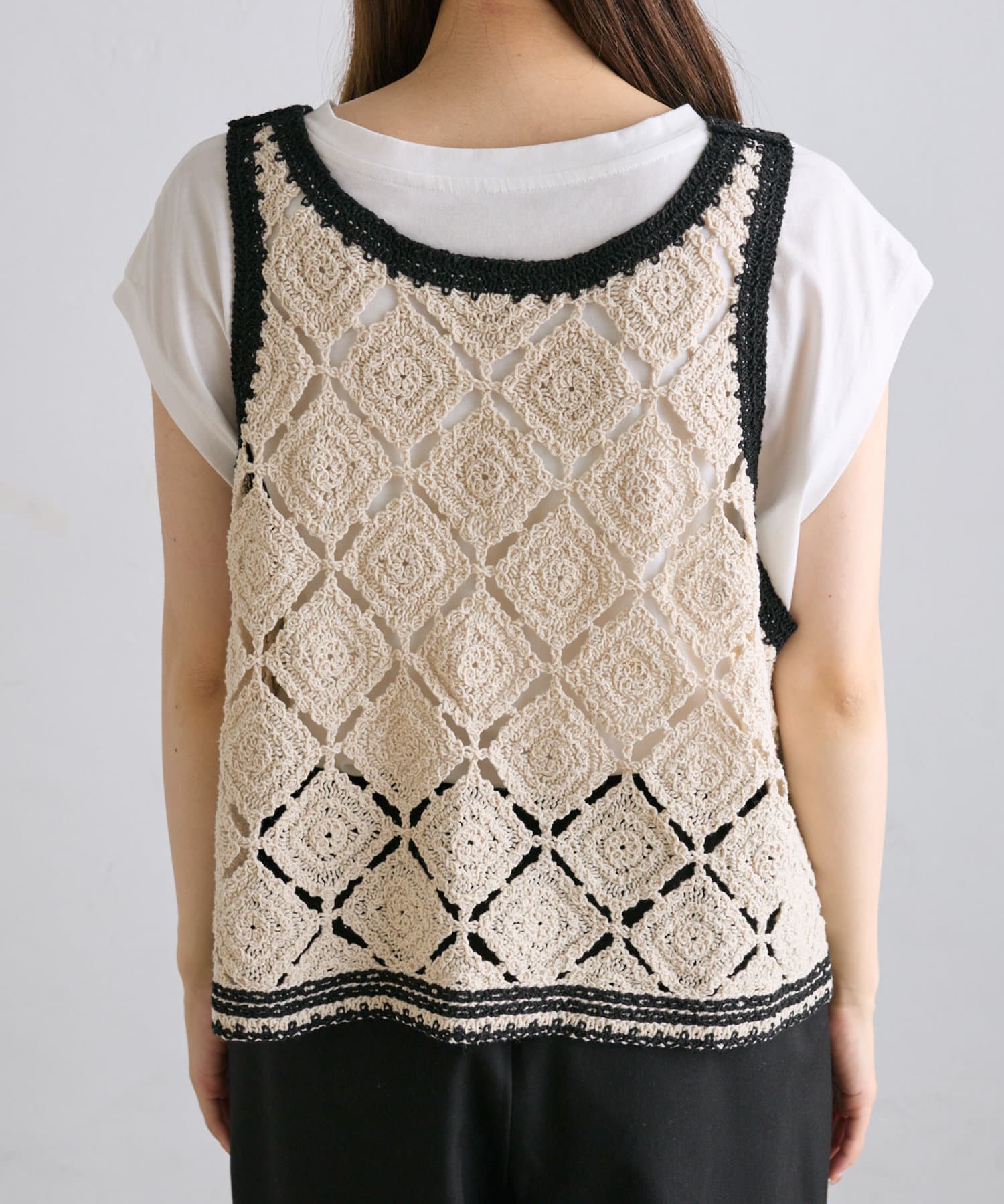 ◇コーデを格上げするかぎ針編み風ベスト◇
