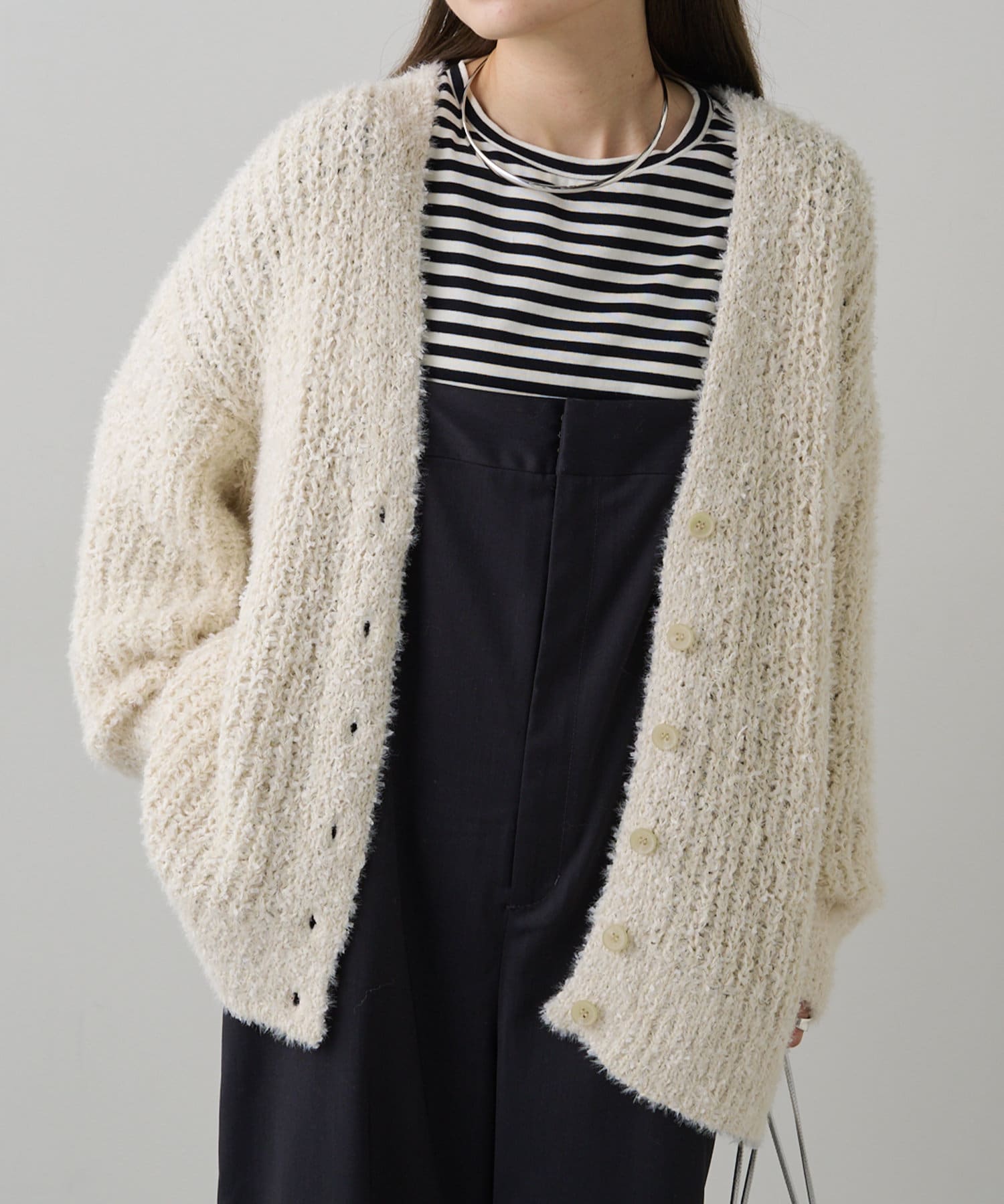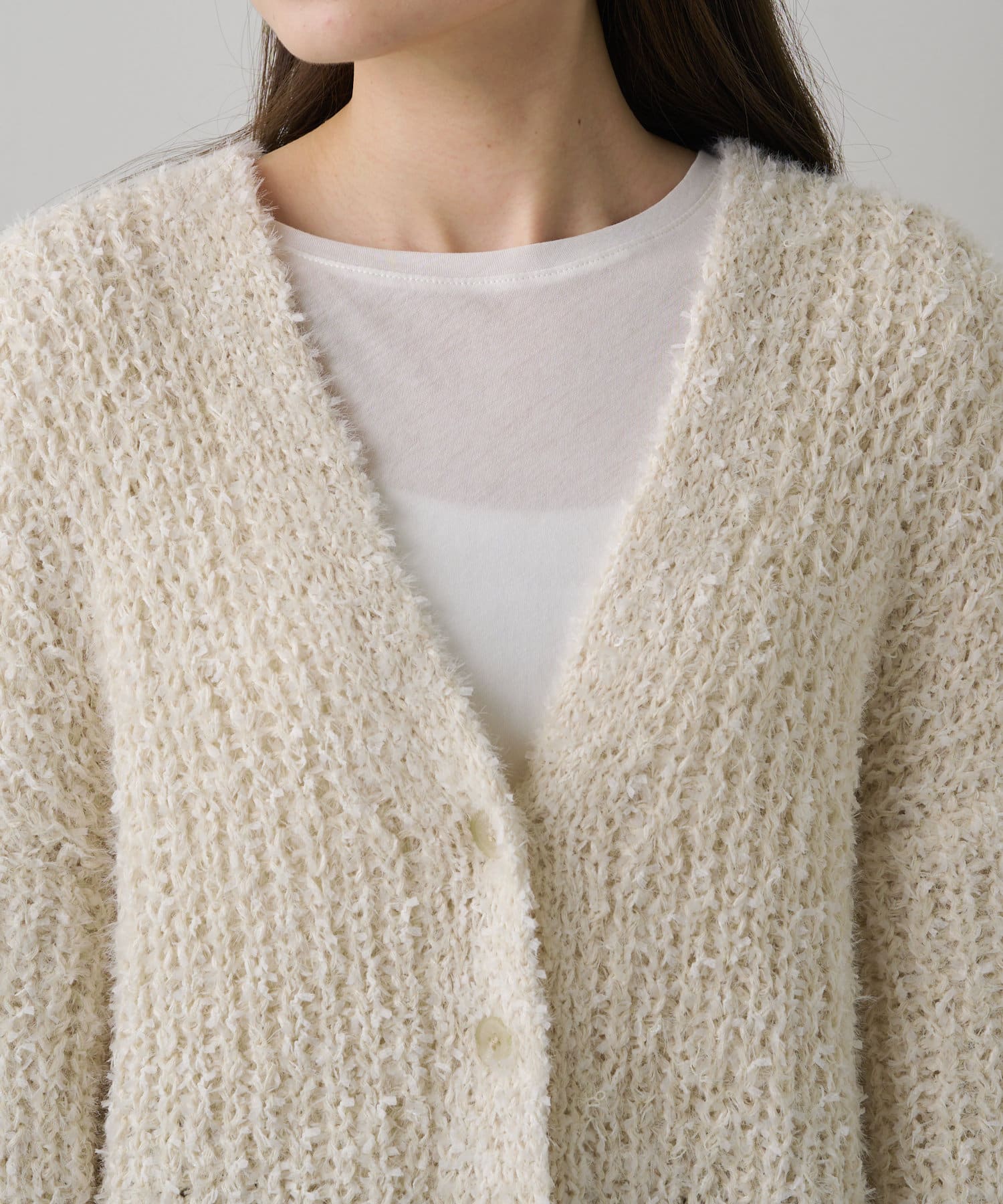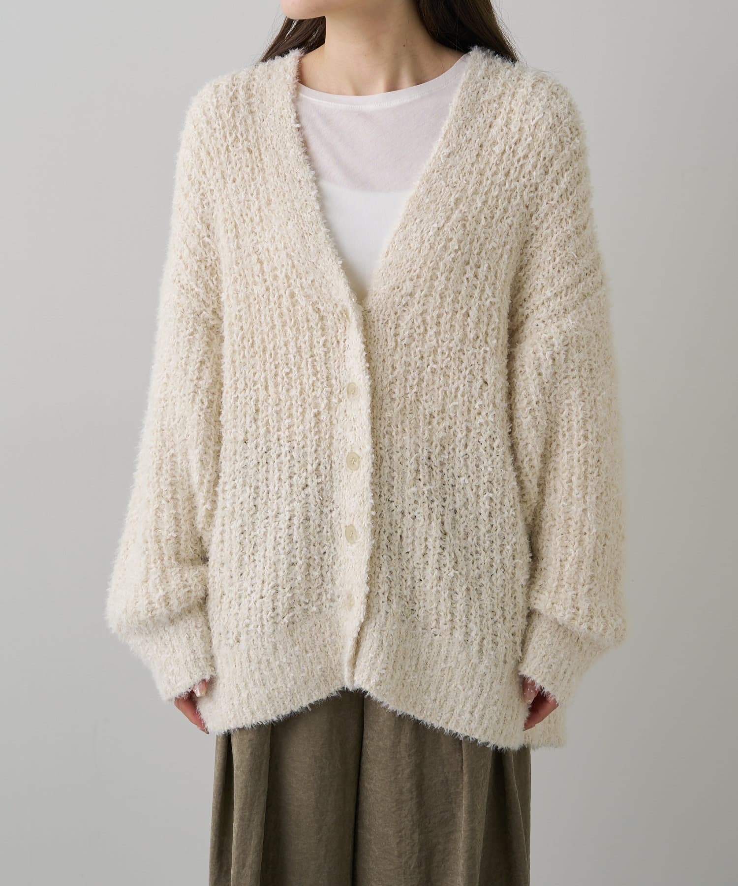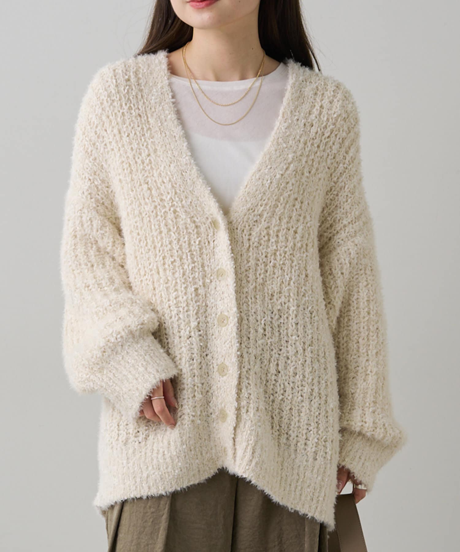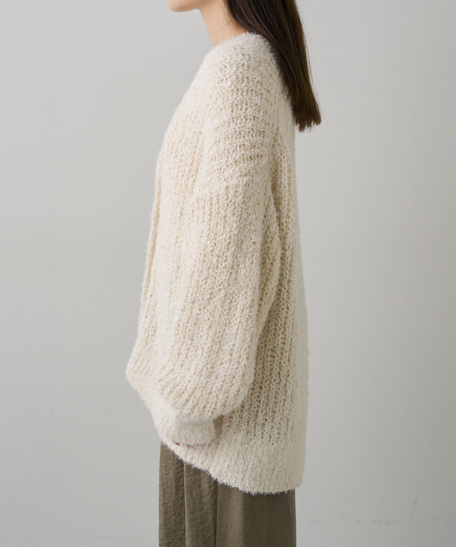 豊かな表面感で秋冬のコーデを華やかに仕上げるニットカーディガン。