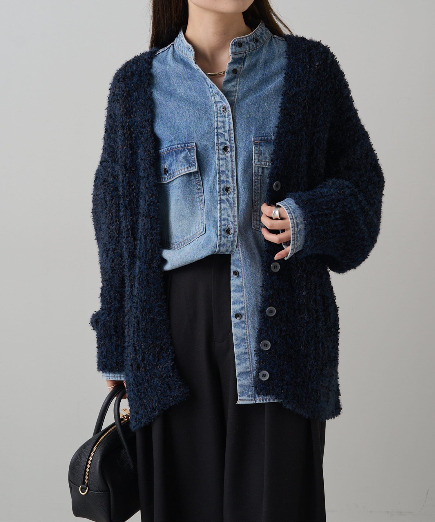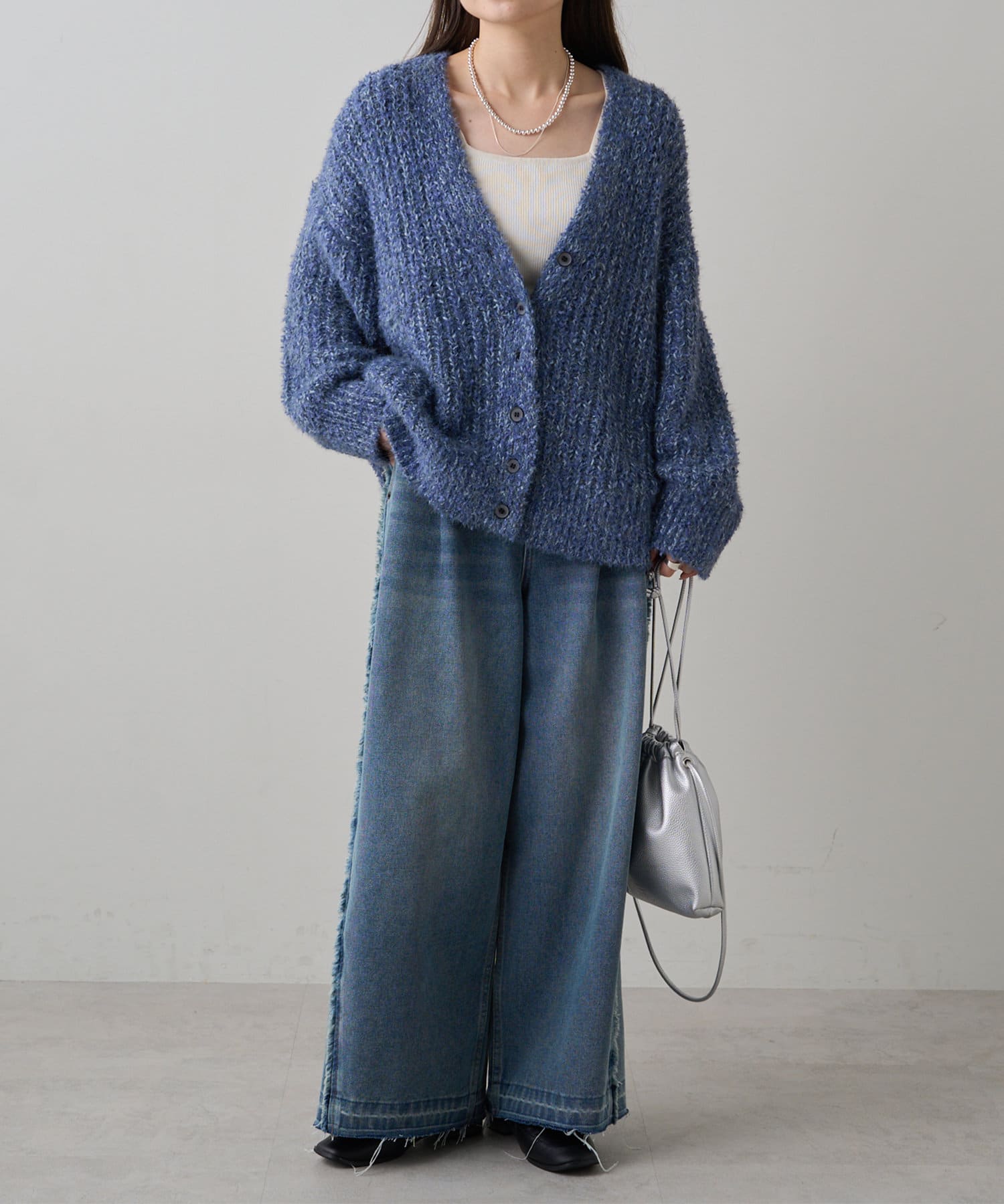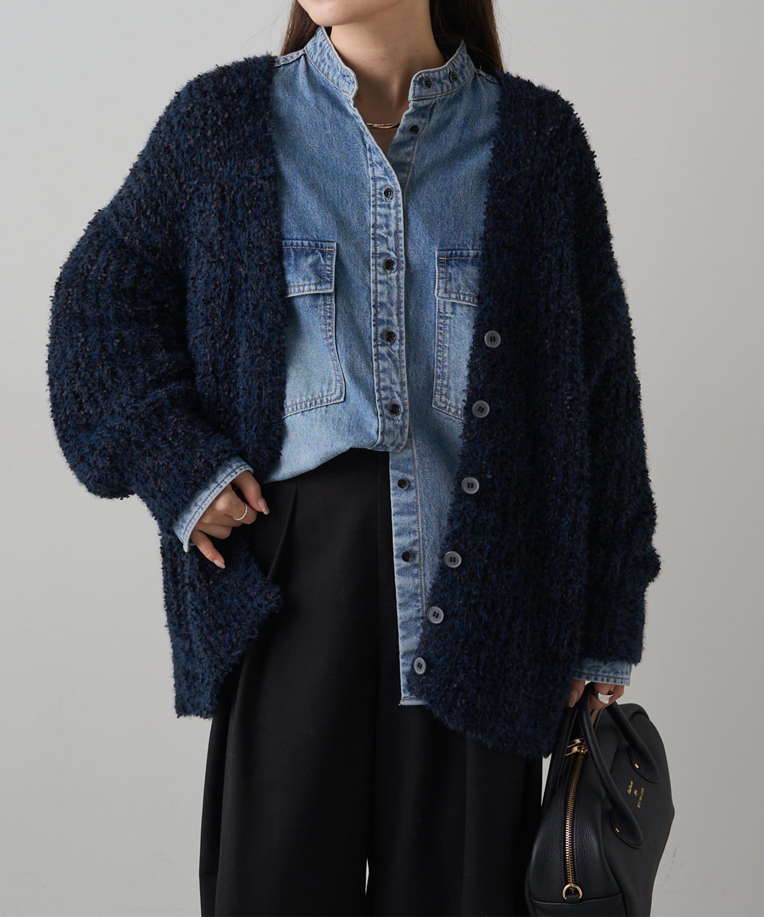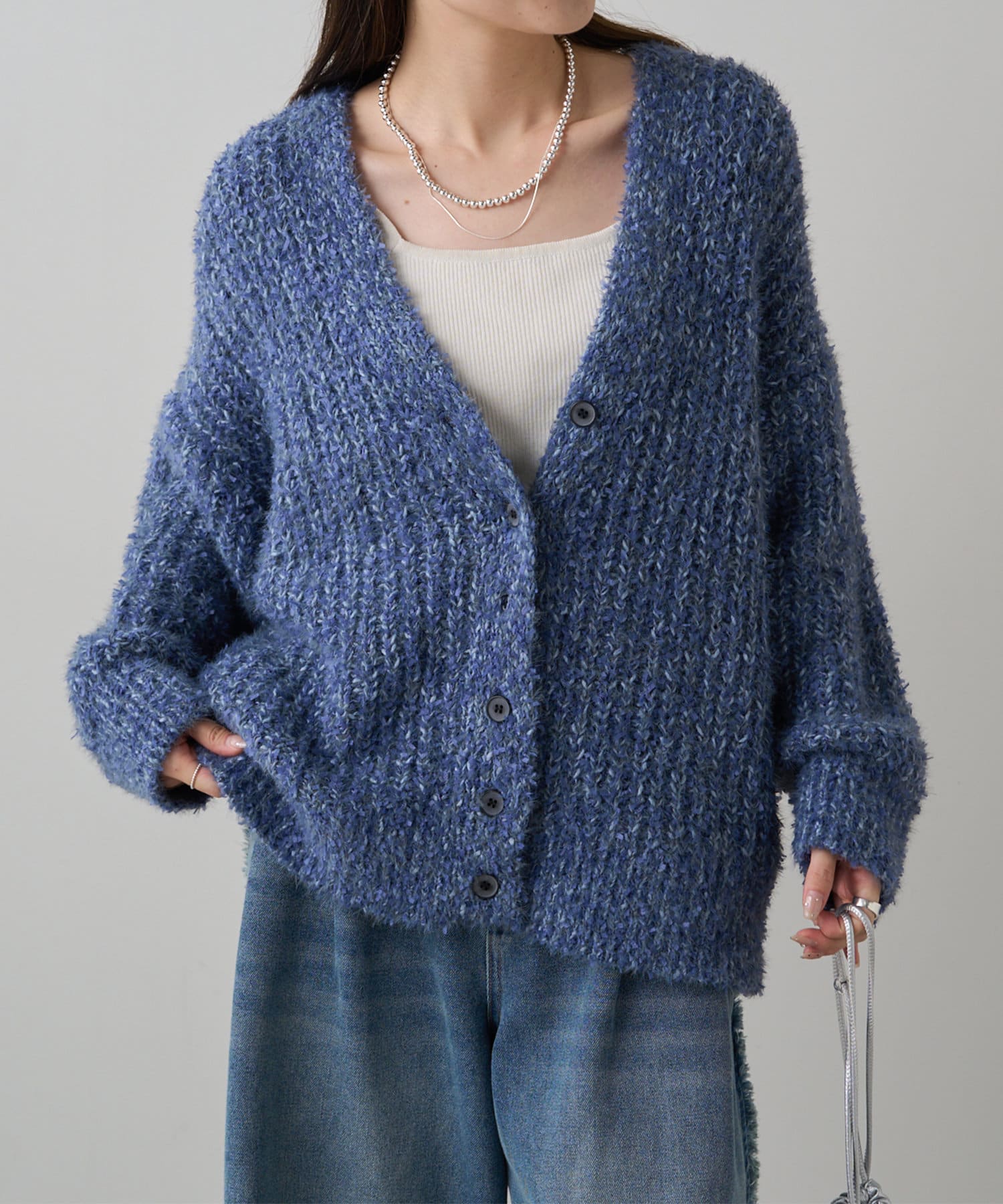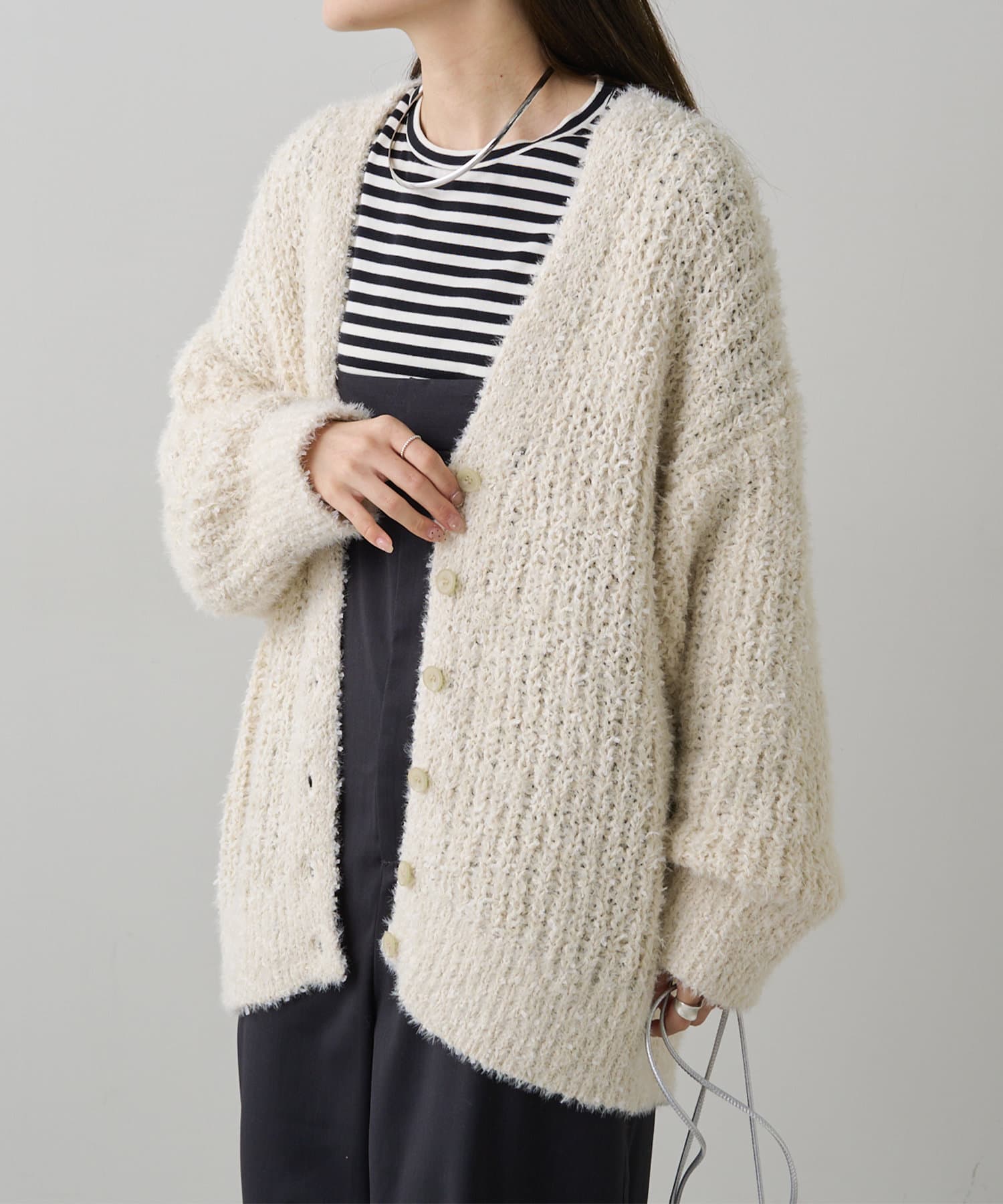 豊かな表面感で秋冬のコーデを華やかに仕上げるニットカーディガン。