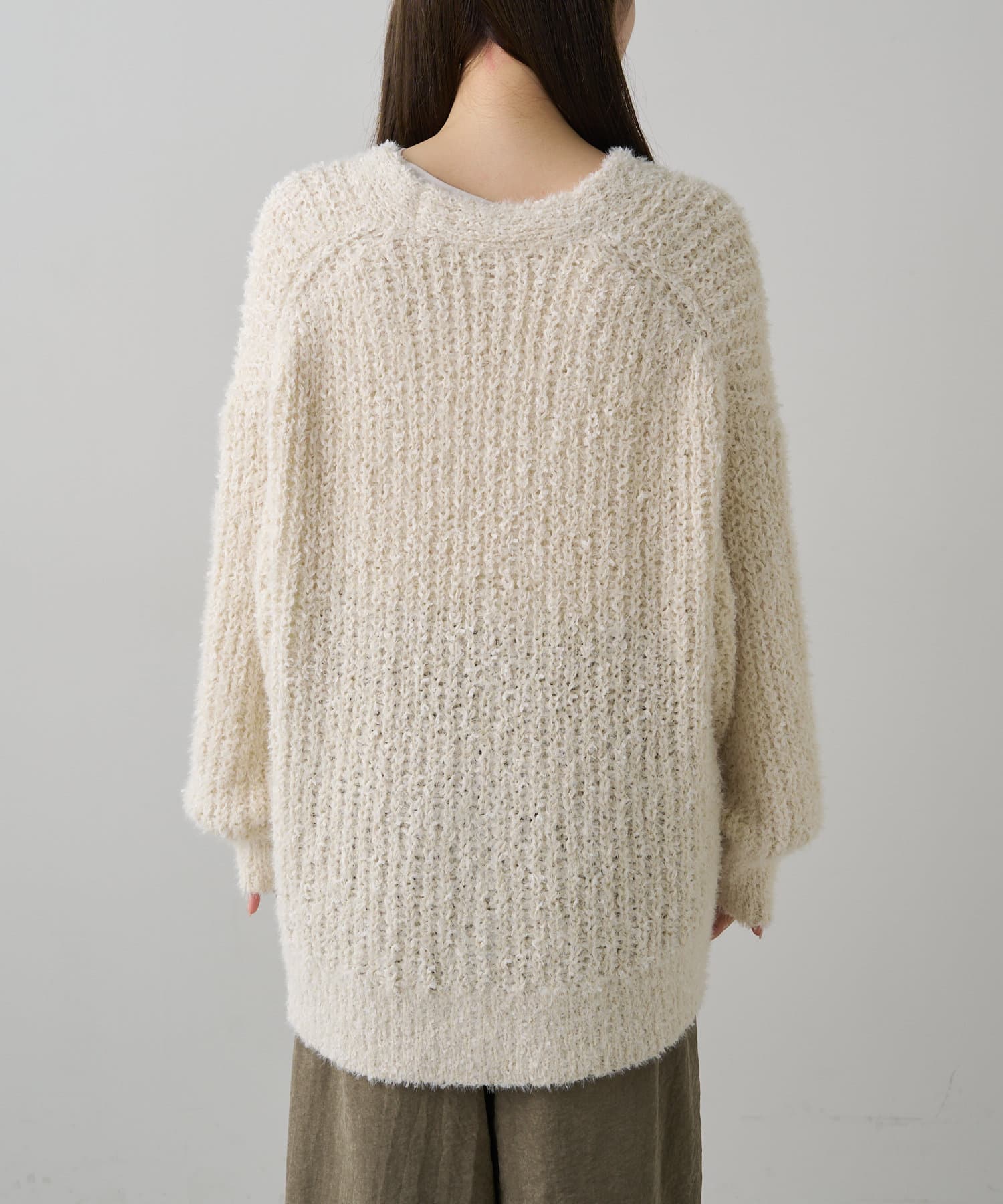 異素材ミックス畦ニットカーディガン