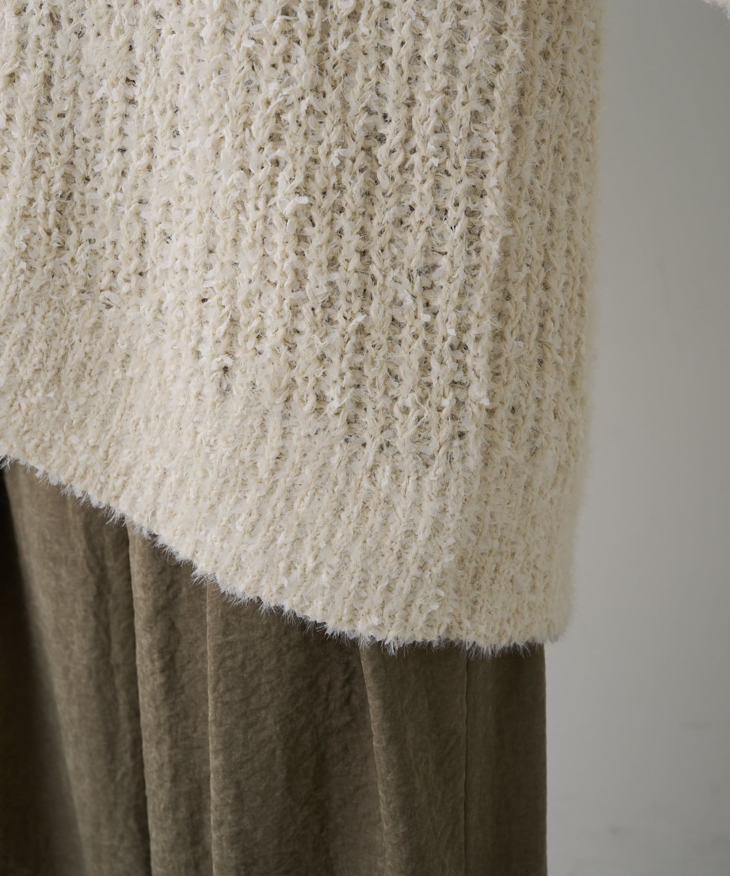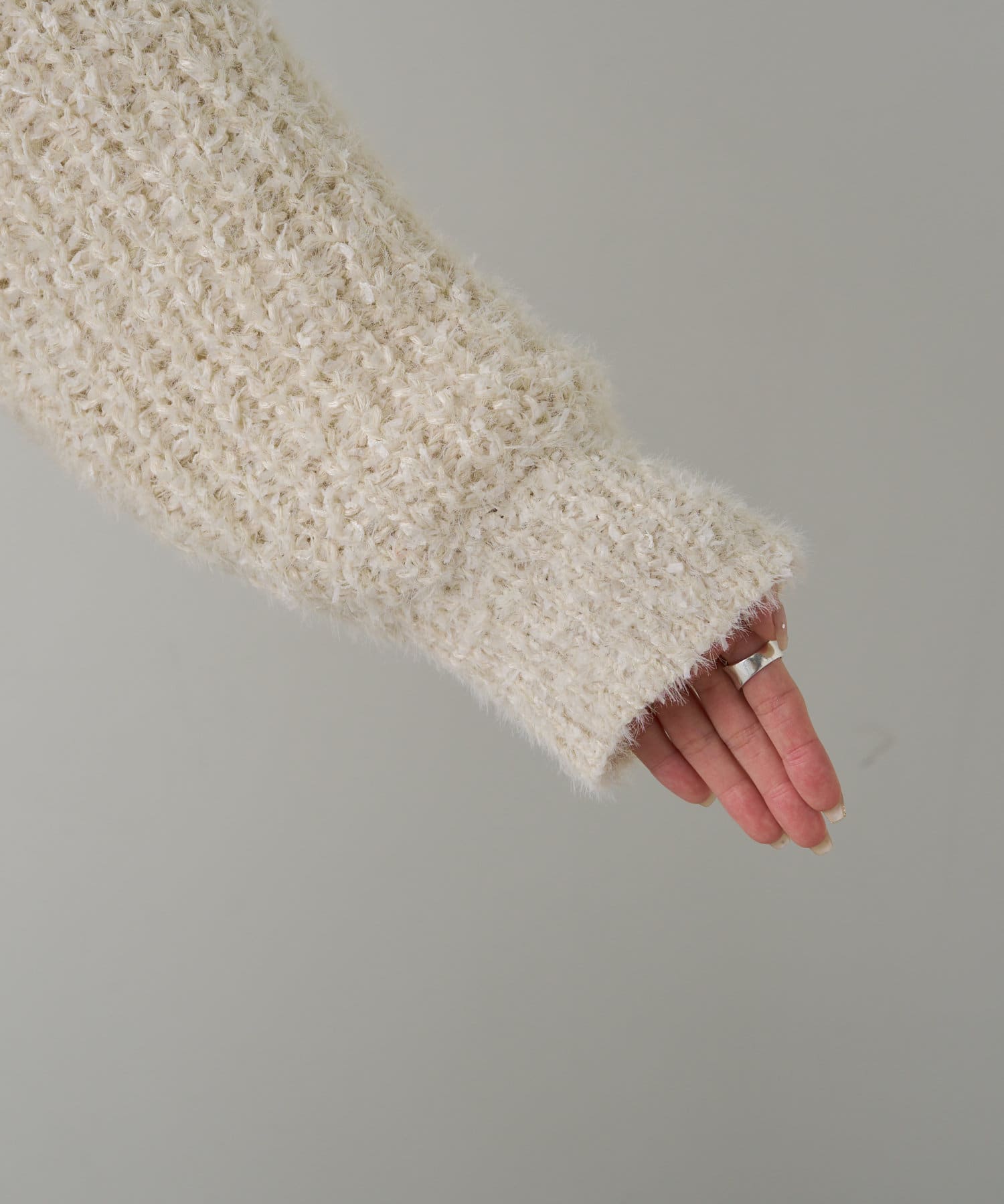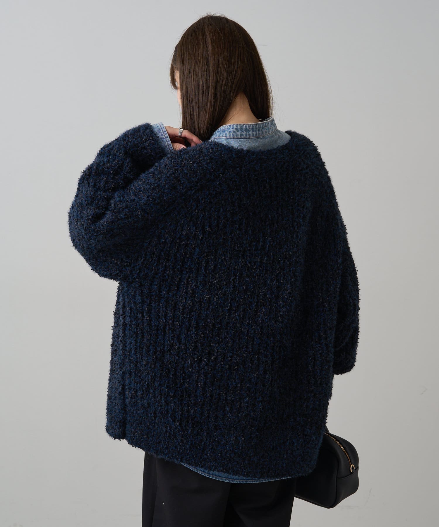 3種類の糸をミックスして仕上げることで表面に奥行きを感じられ、コーデに華やかさをプラスしてくれます。