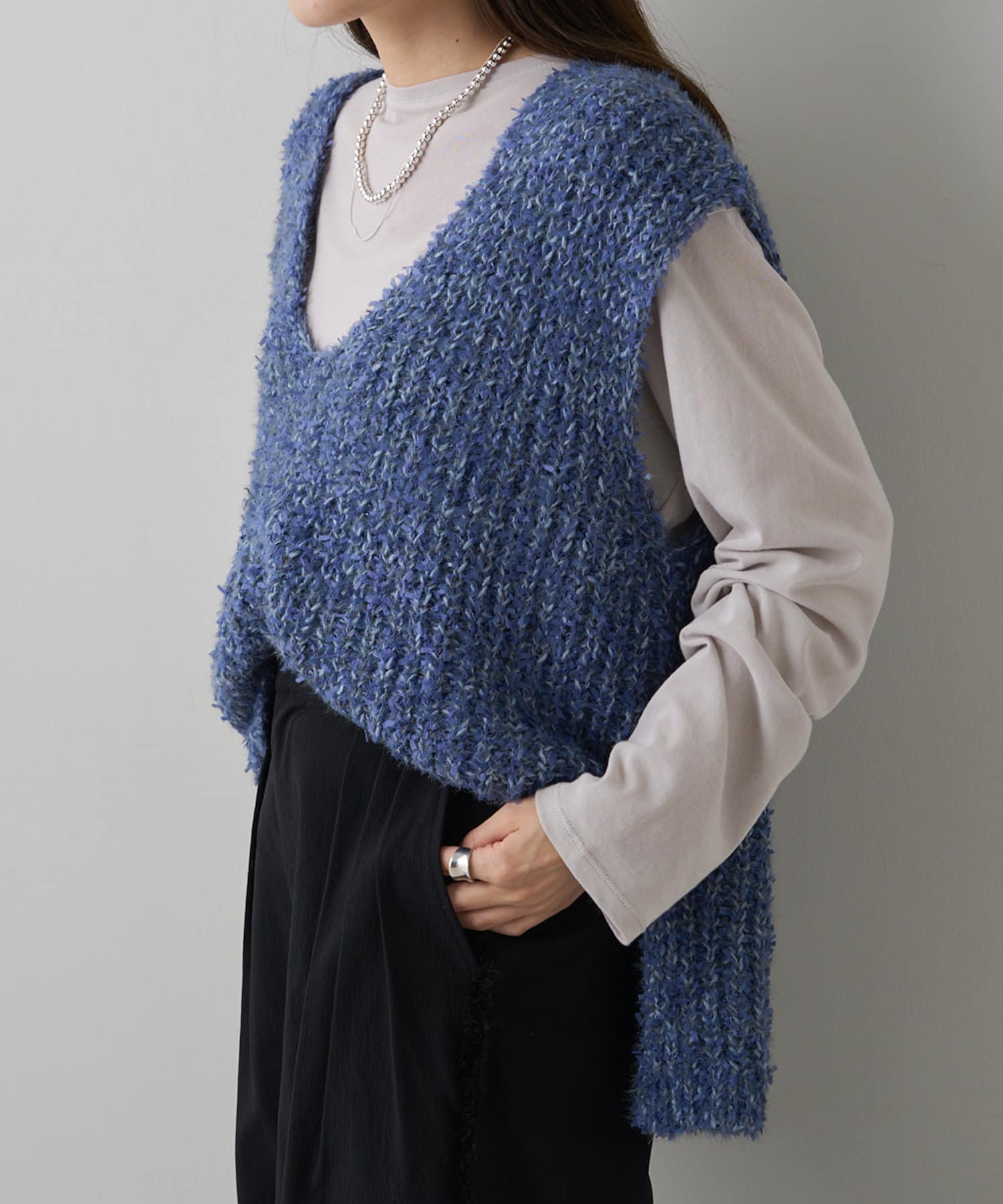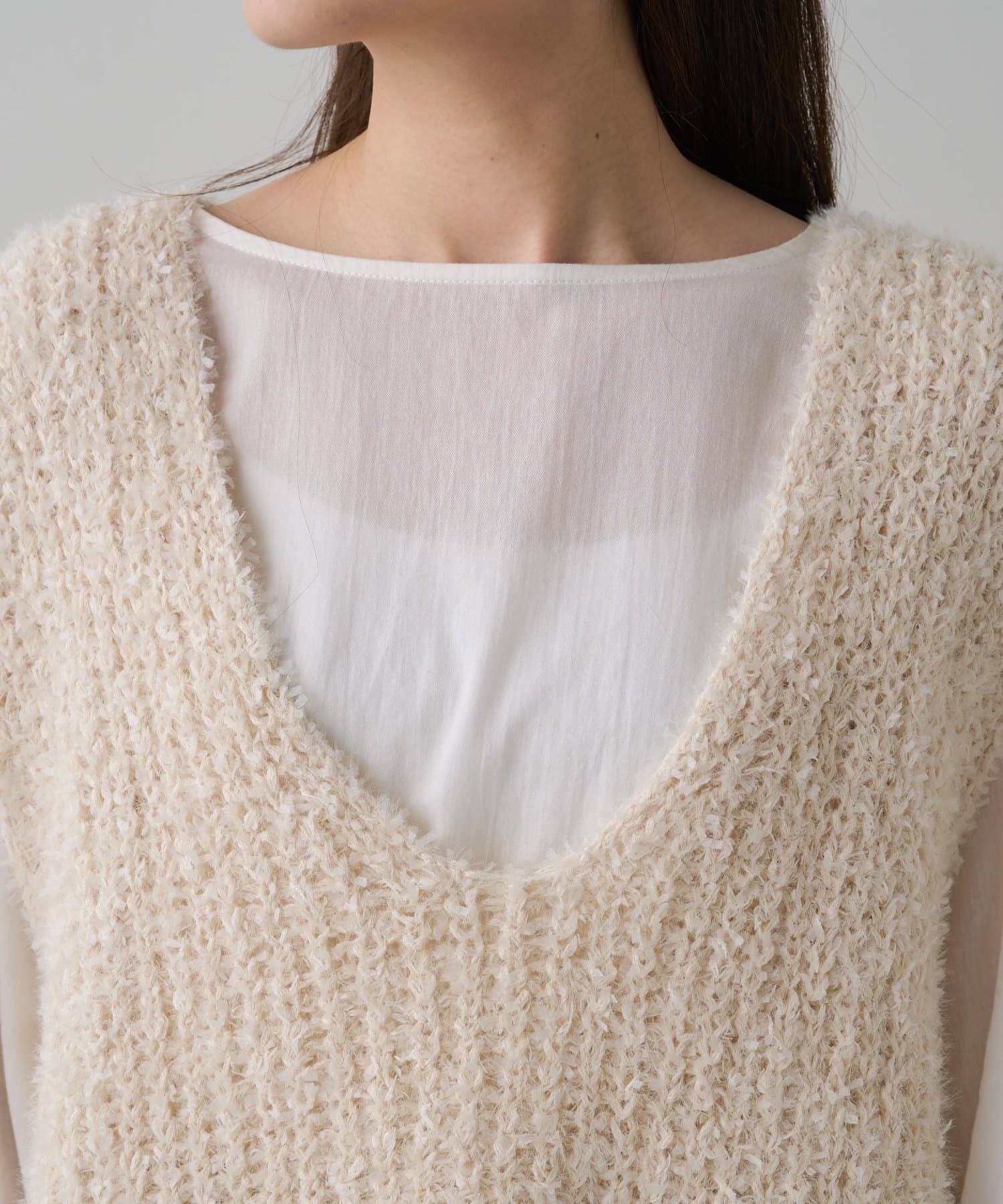 カジュアルに着崩しても、きれいめに仕上げてもサマになるツイードライクニットベスト。