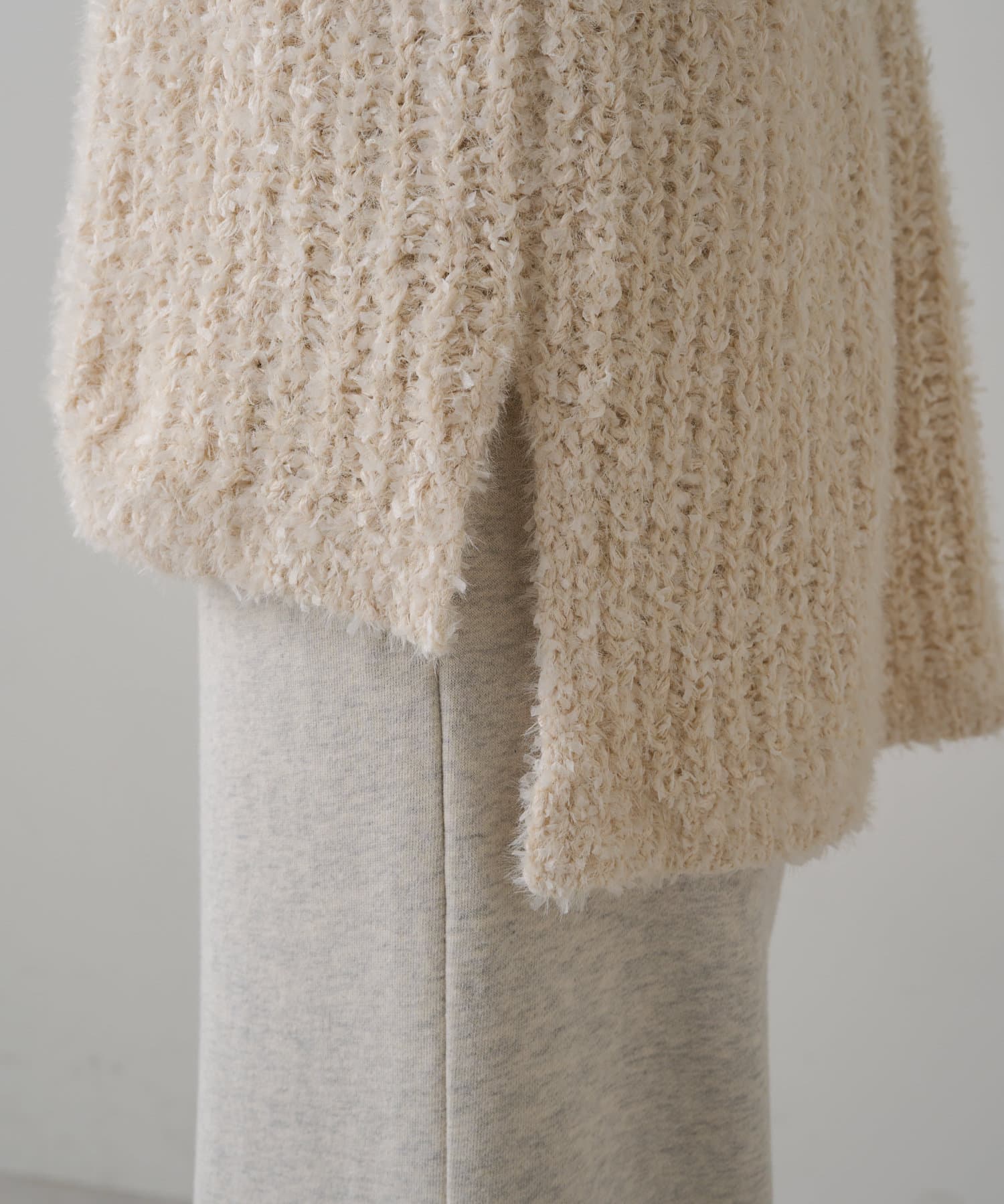 着用感:ゆとりがありラフな着心地。伸縮性もあり、肌当たりが柔らかいアクリル混のニット素材です。