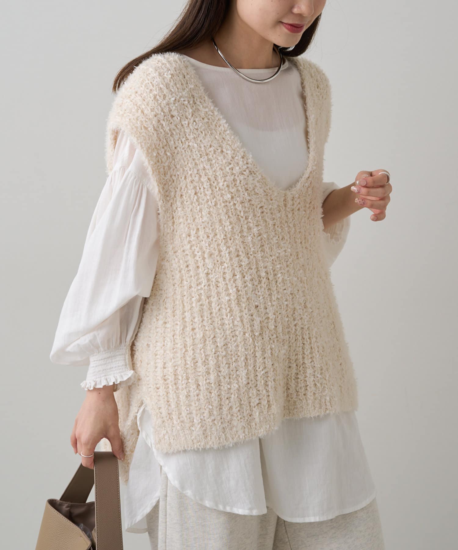 ◇綺麗見えと楽チン着心地が両立!コーディネートに華やかさをプラスするニットベスト◇