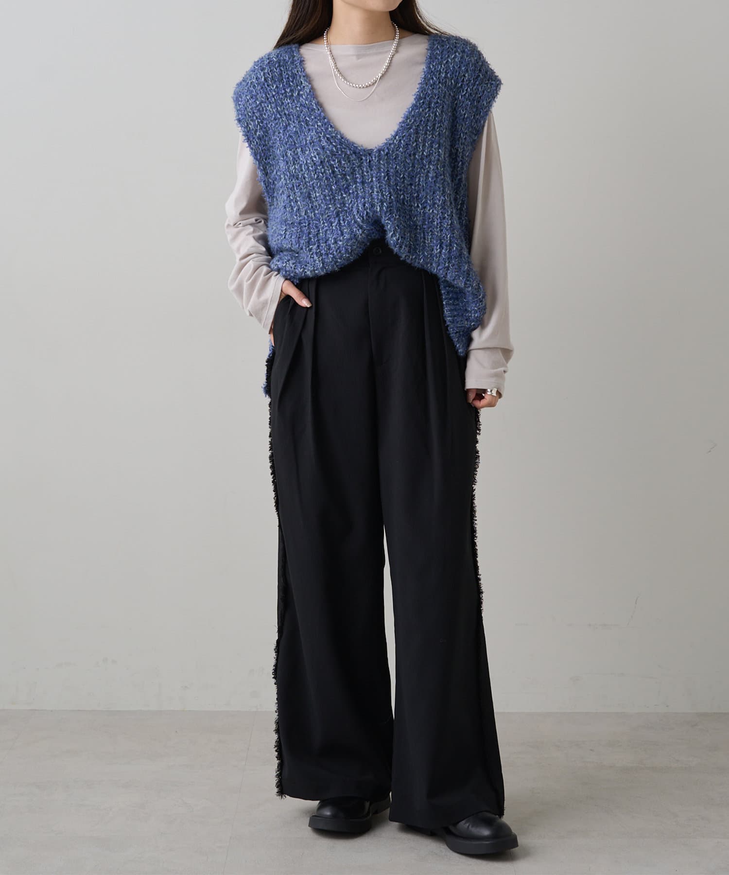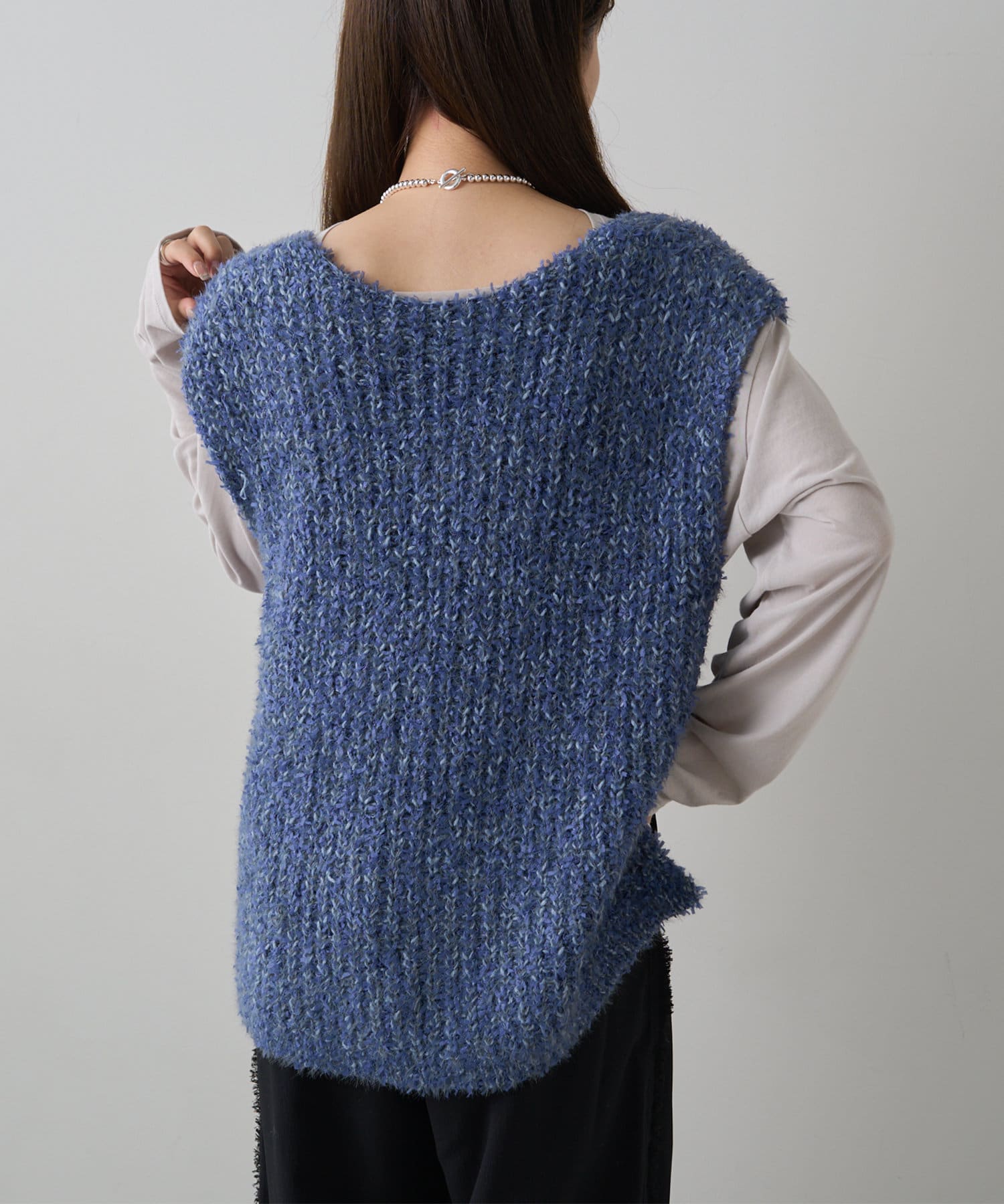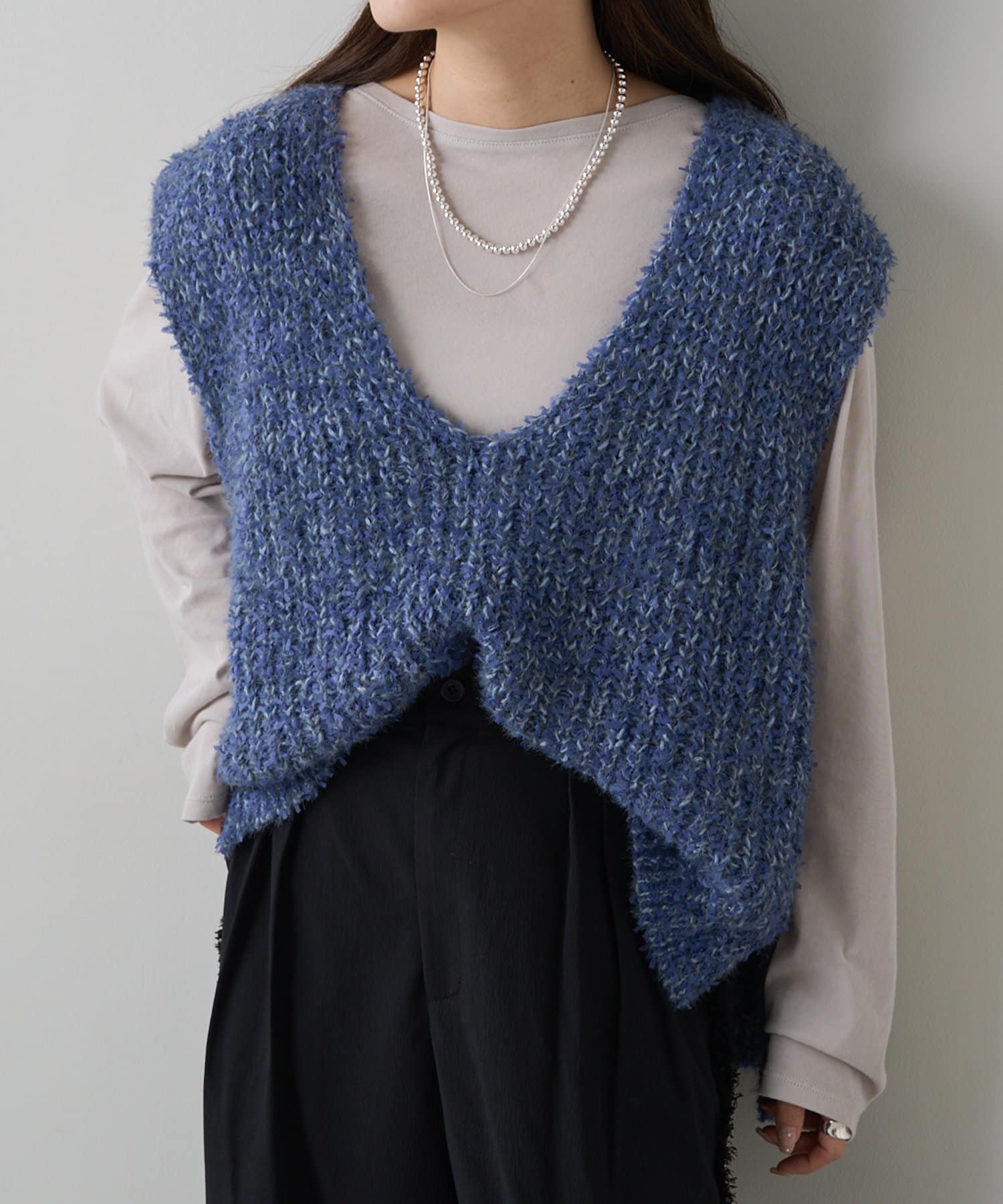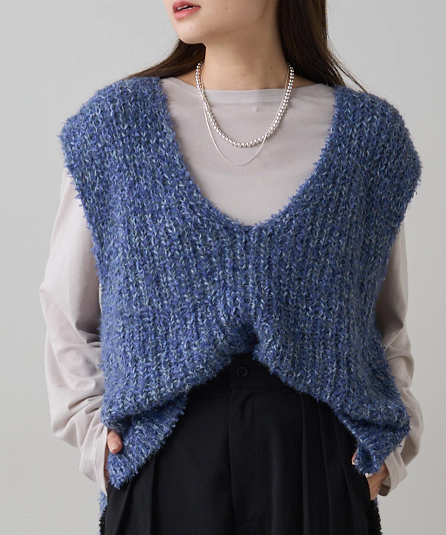 ニット素材なのでラフに着用することが出来るニットベスト。