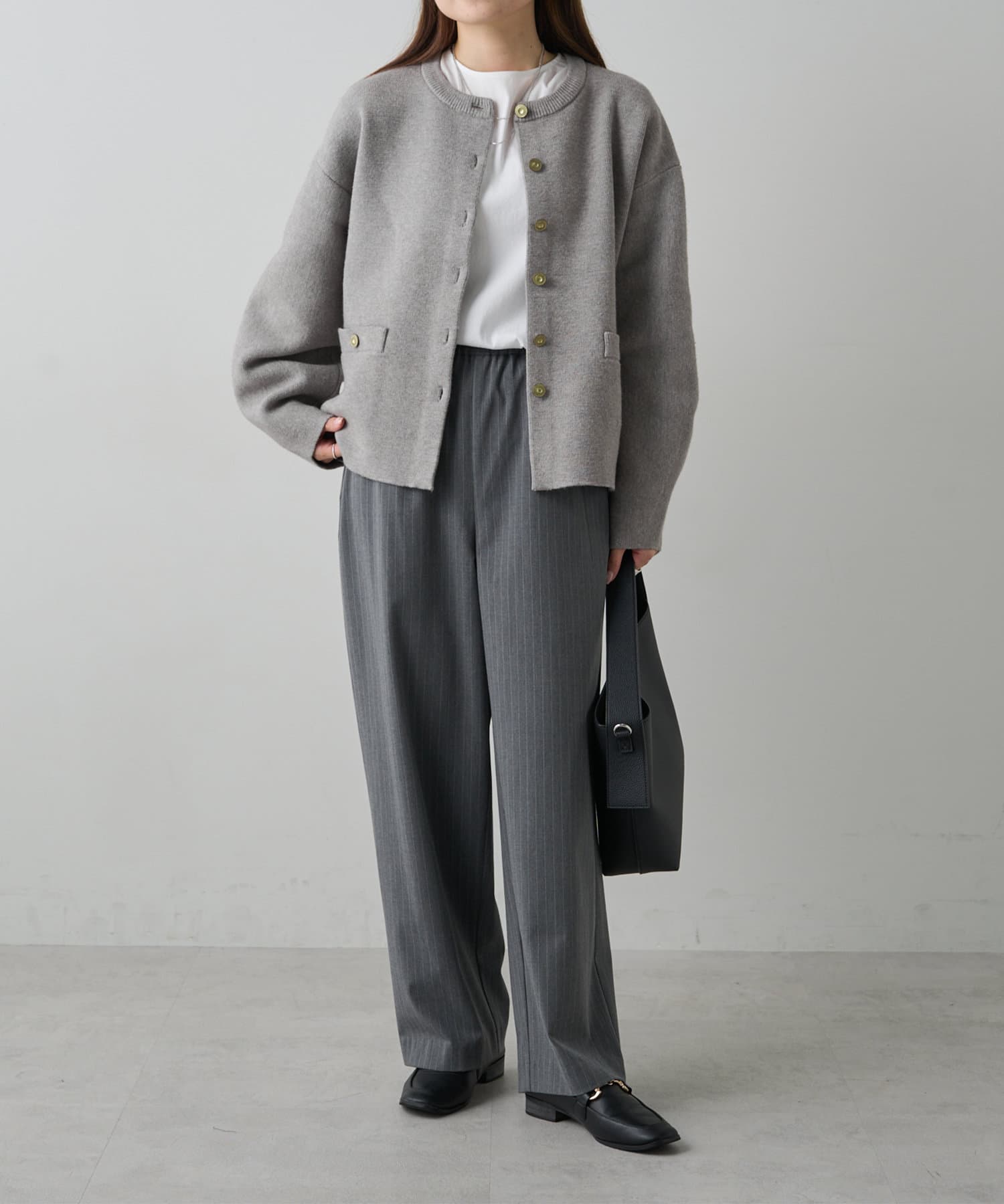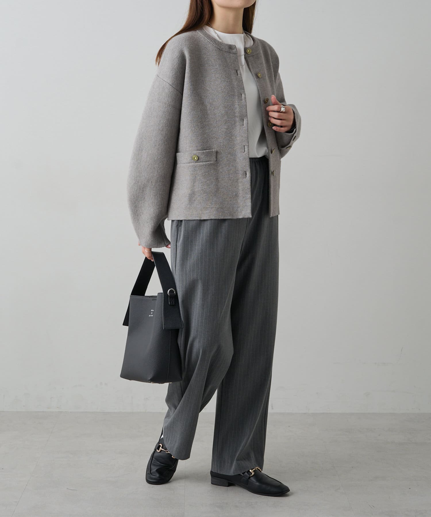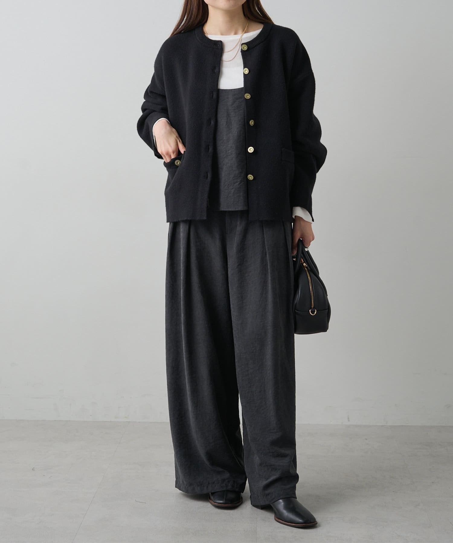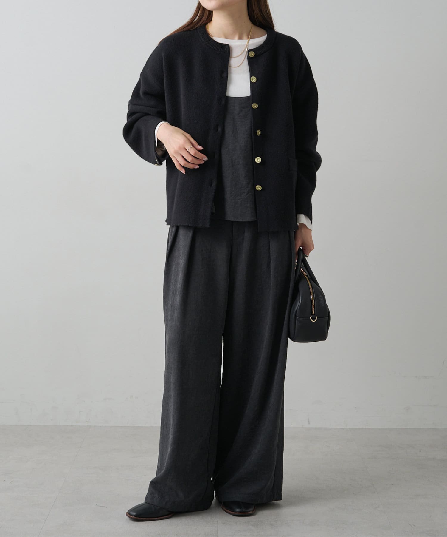 身幅やアームにゆとりを持ったサイジングなので、ブラウスやカットソーとの着合わせてもスムーズに脱ぎ着でき、気軽に羽織れます。