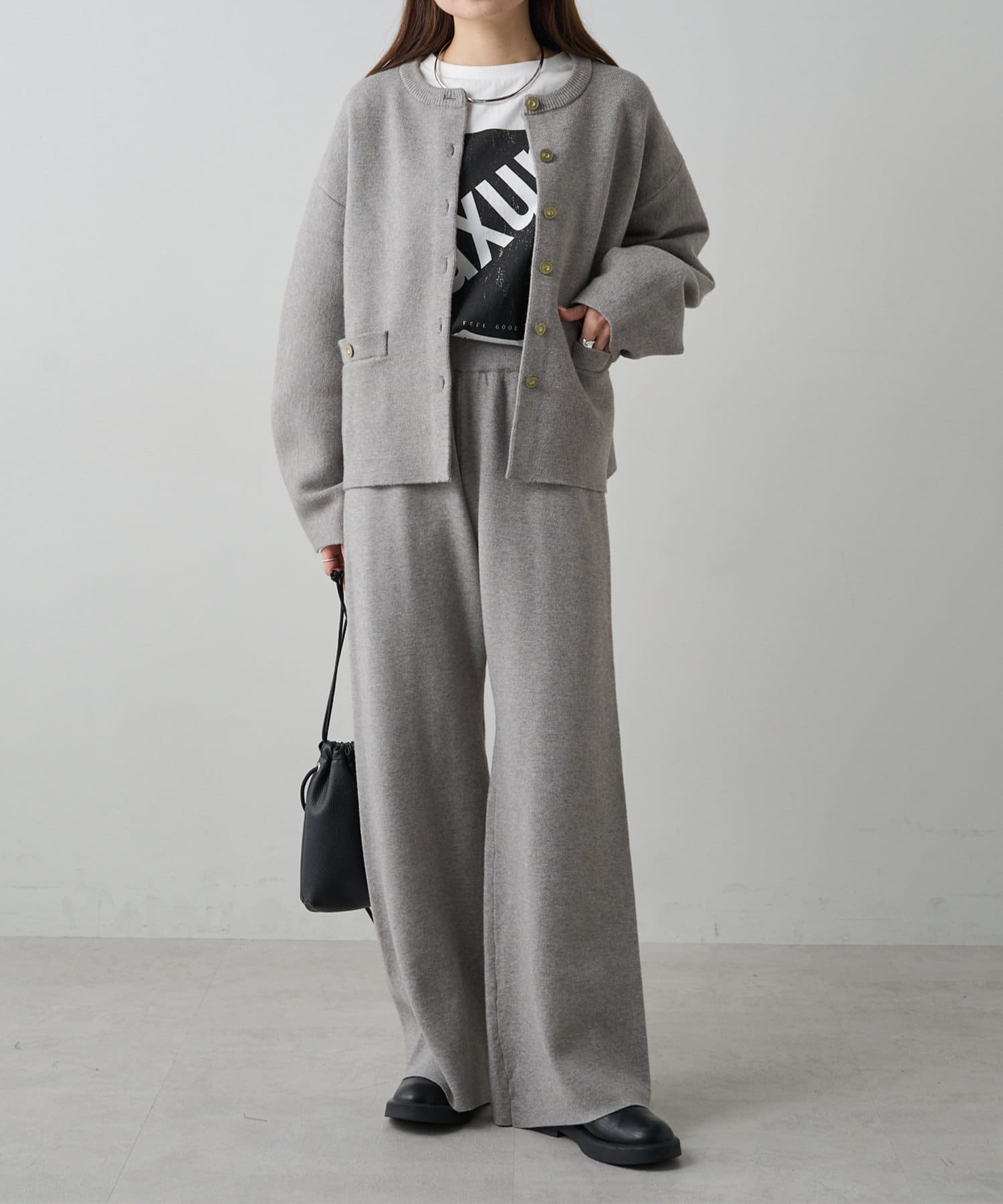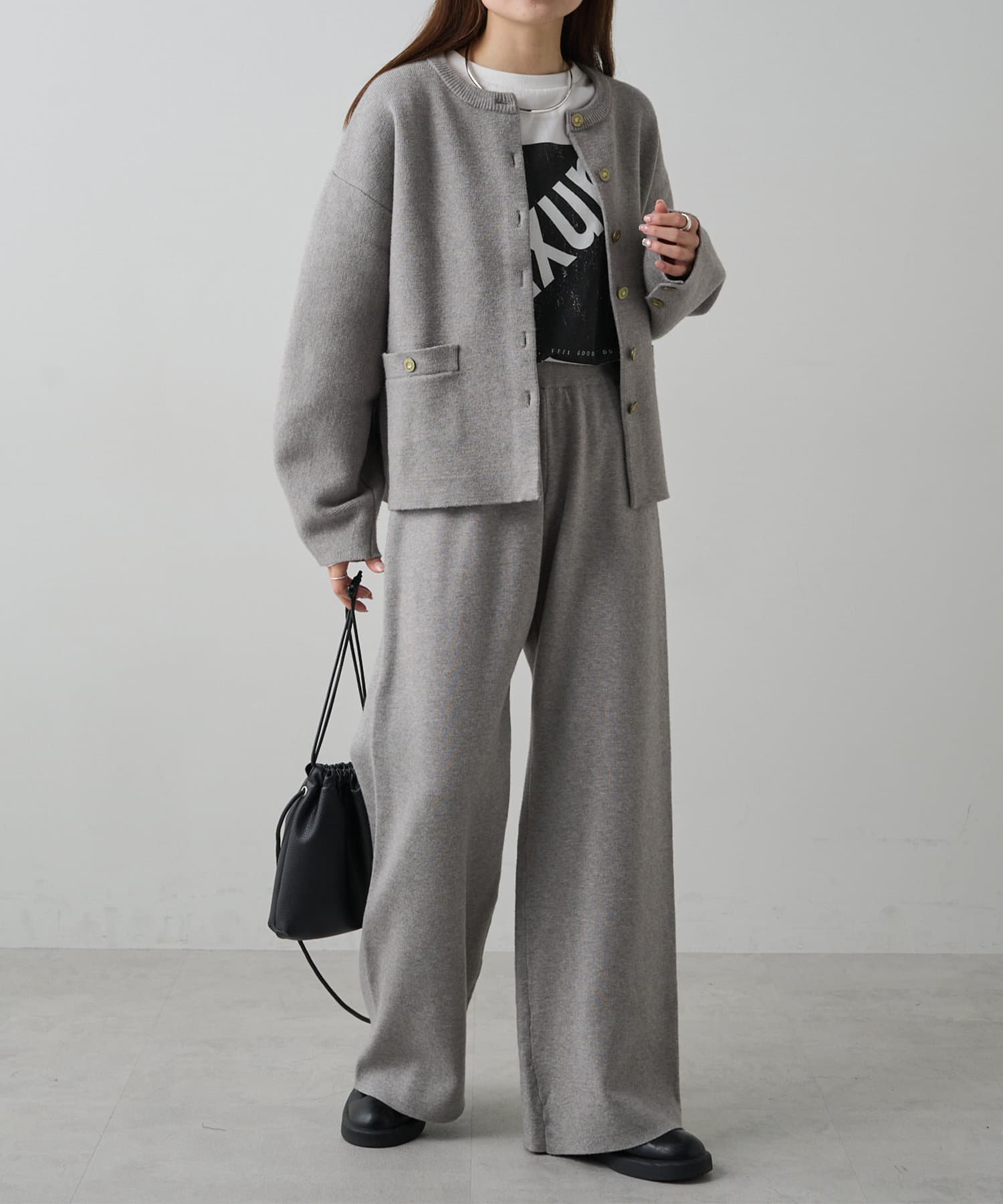 同素材のシリーズでボトムスを合わせると、セットアップで着用して頂けます。
