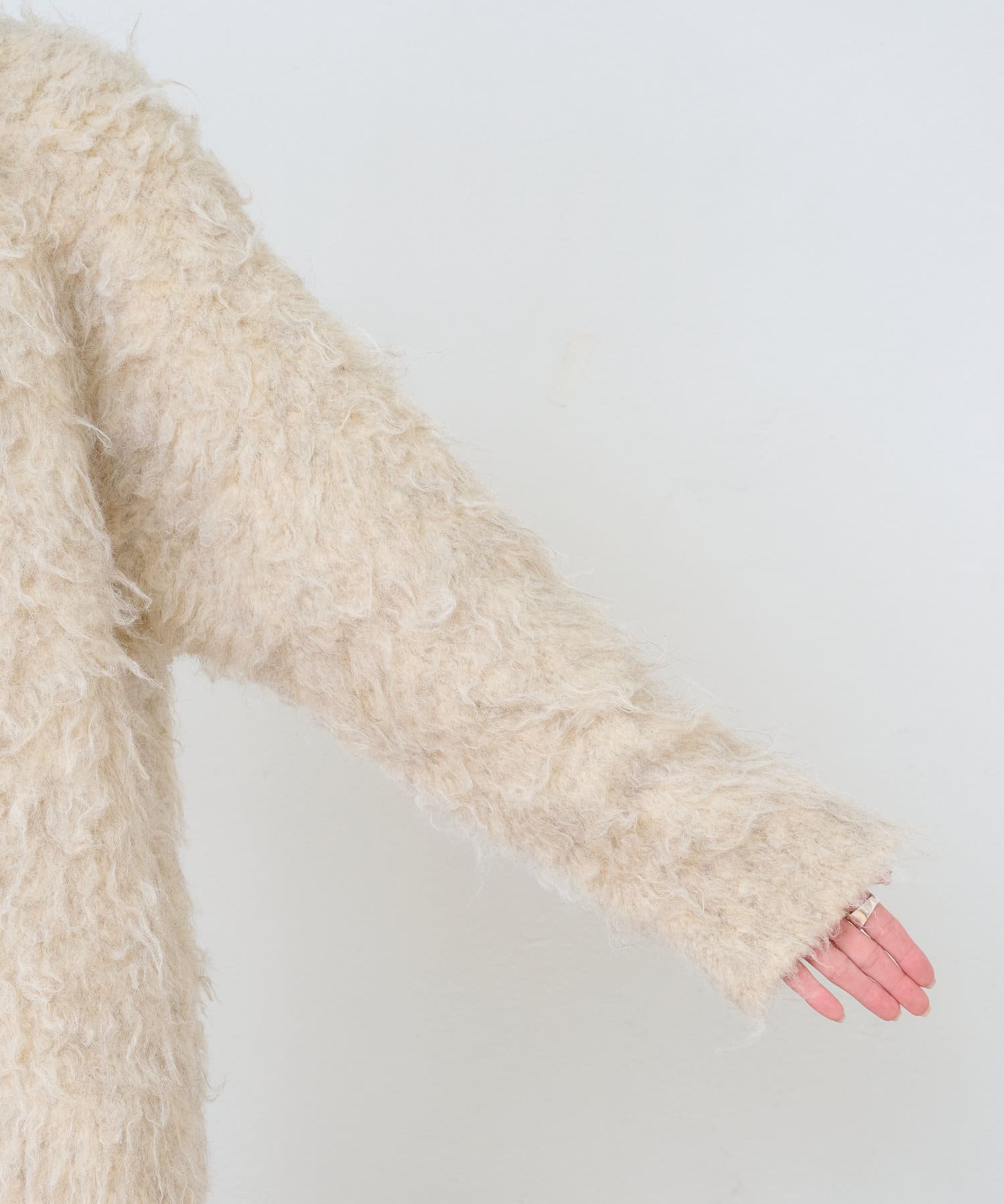 ボリューム感のある毛並みが1枚で華やかに決まるロングカーディガン。