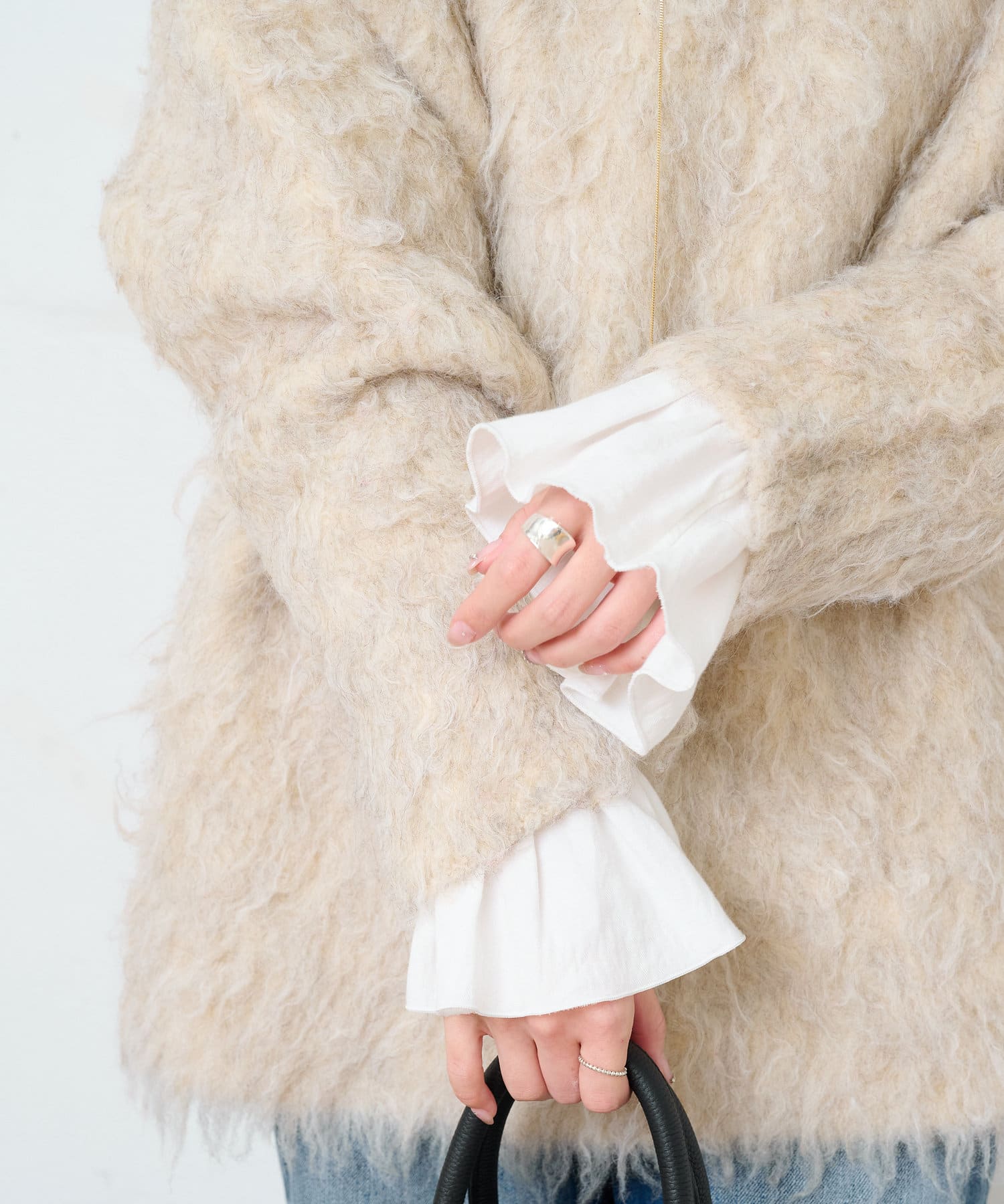 シンプルながらも表情のある素材感で、シーズンムードを高めるシャギーニットプルオーバー。