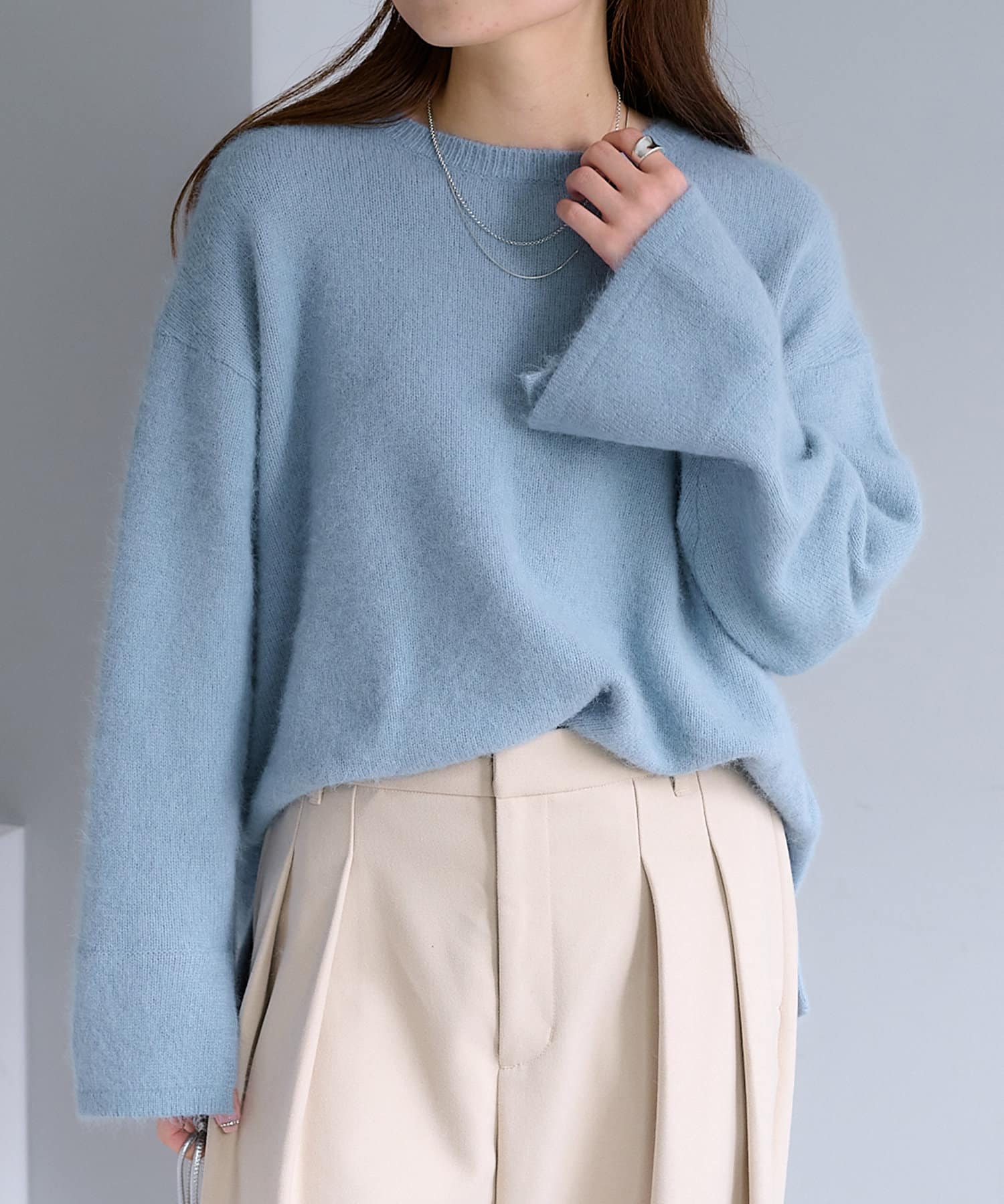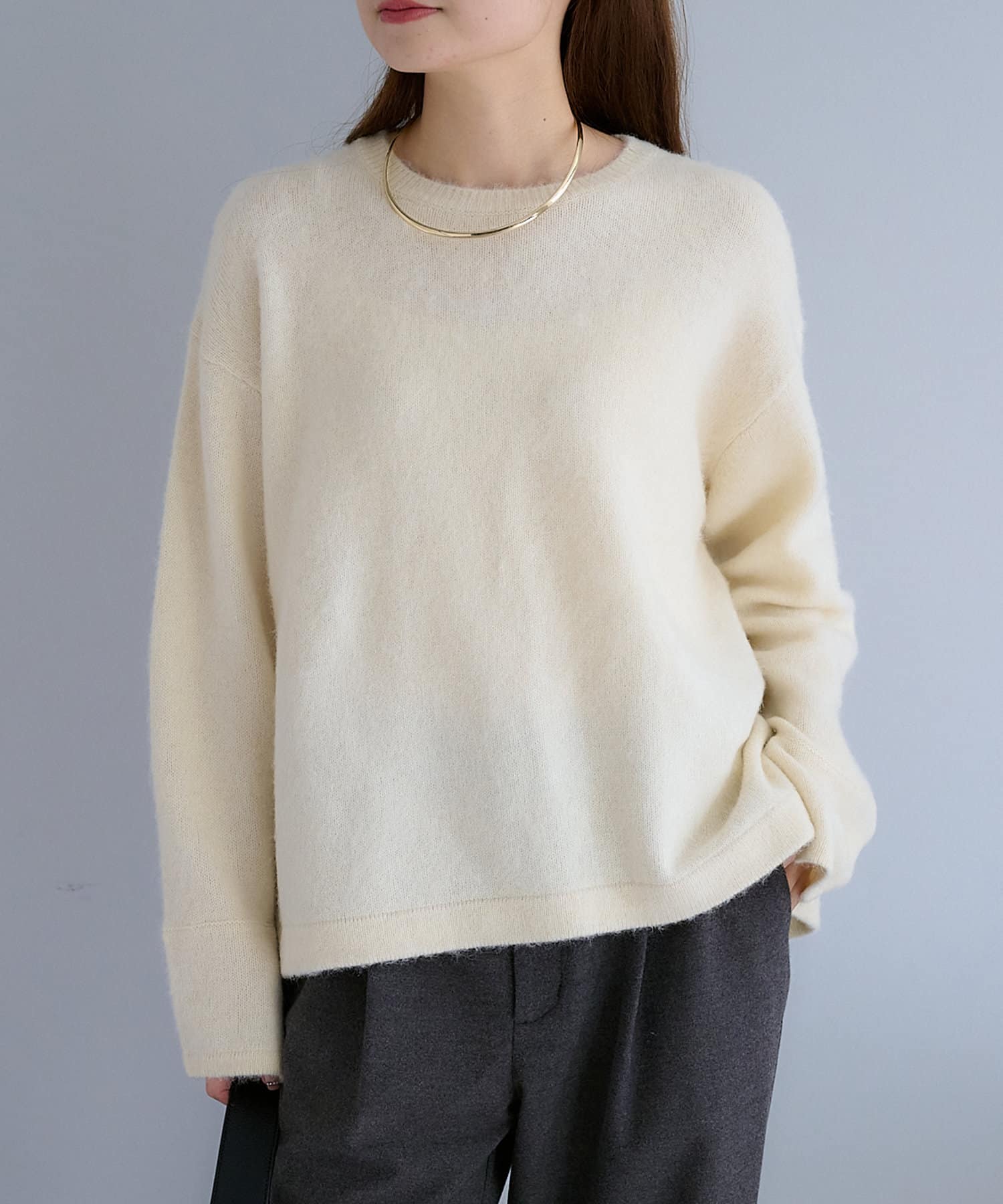 ふんわりとした柔らかな素材感で仕上げたニットプルオーバー。