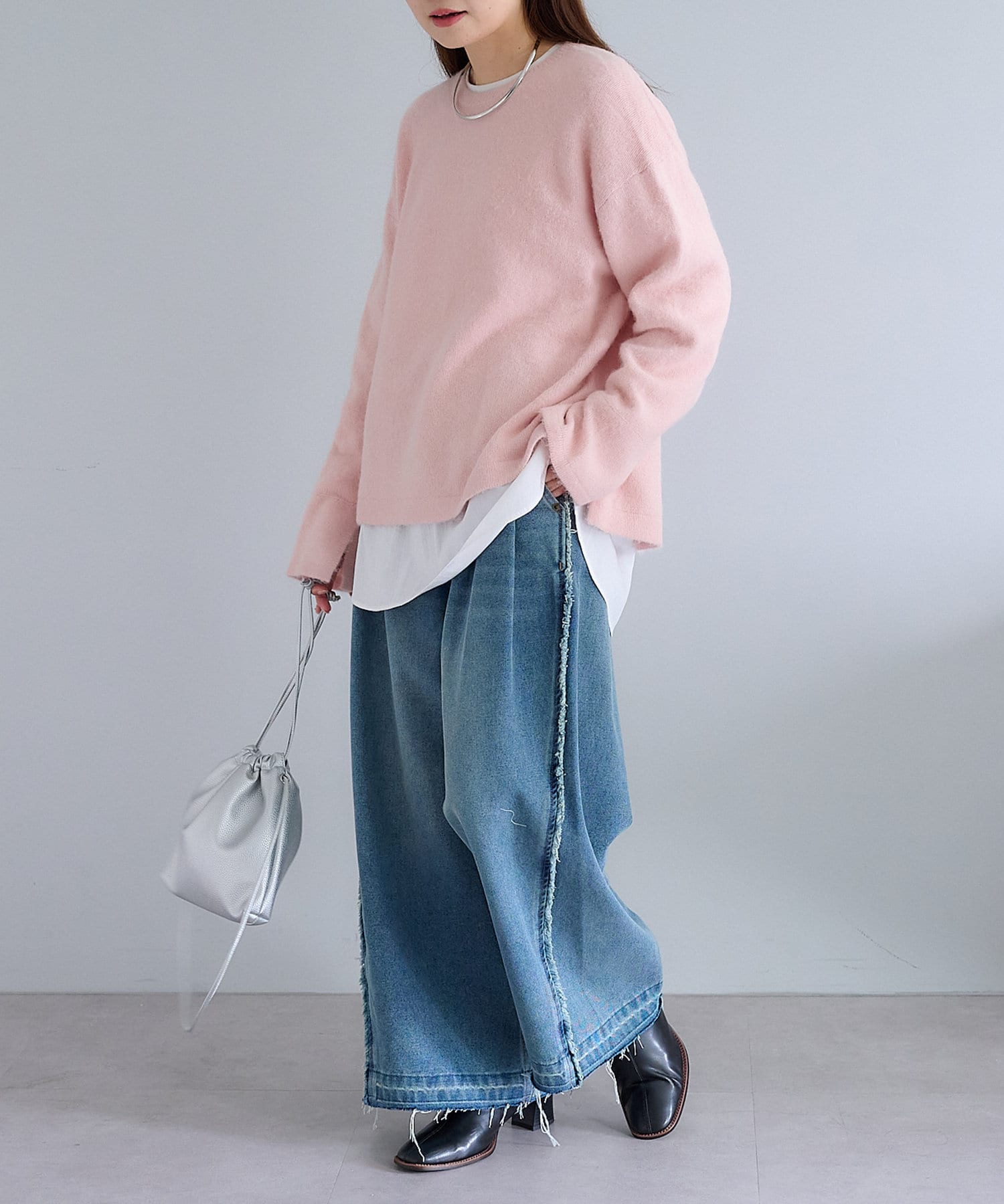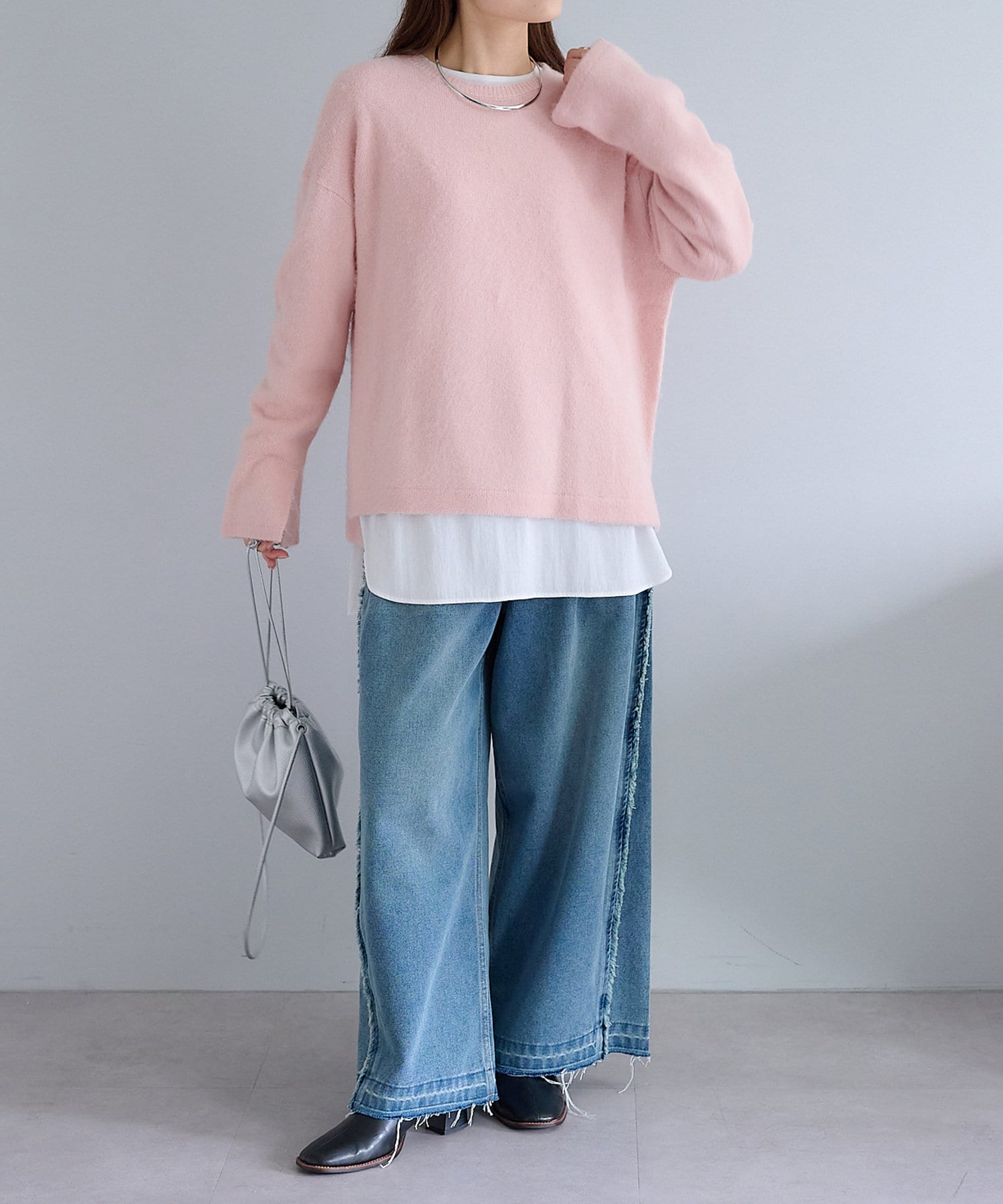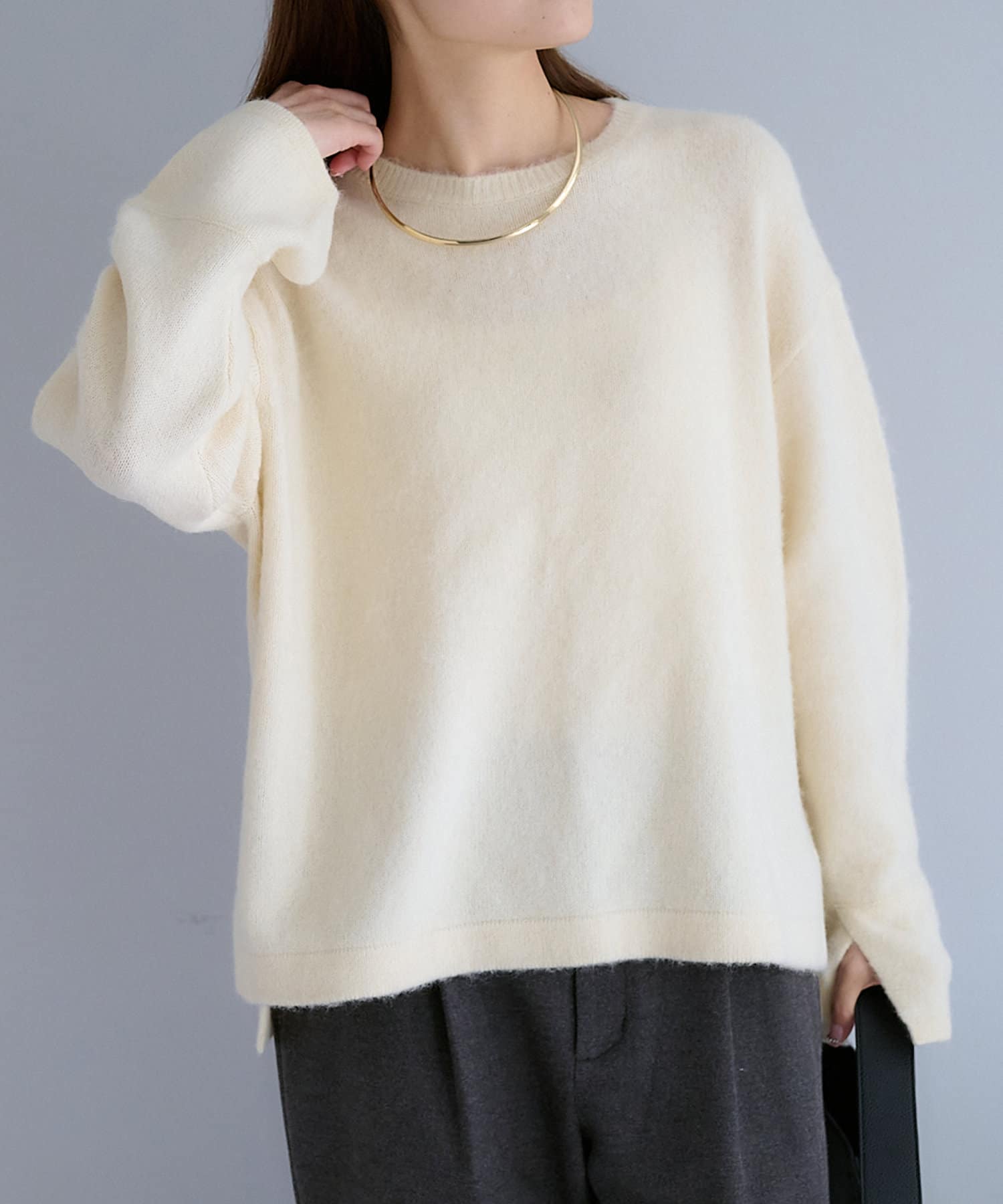 ふんわりとした柔らかな素材感で仕上げたニットプルオーバー。
