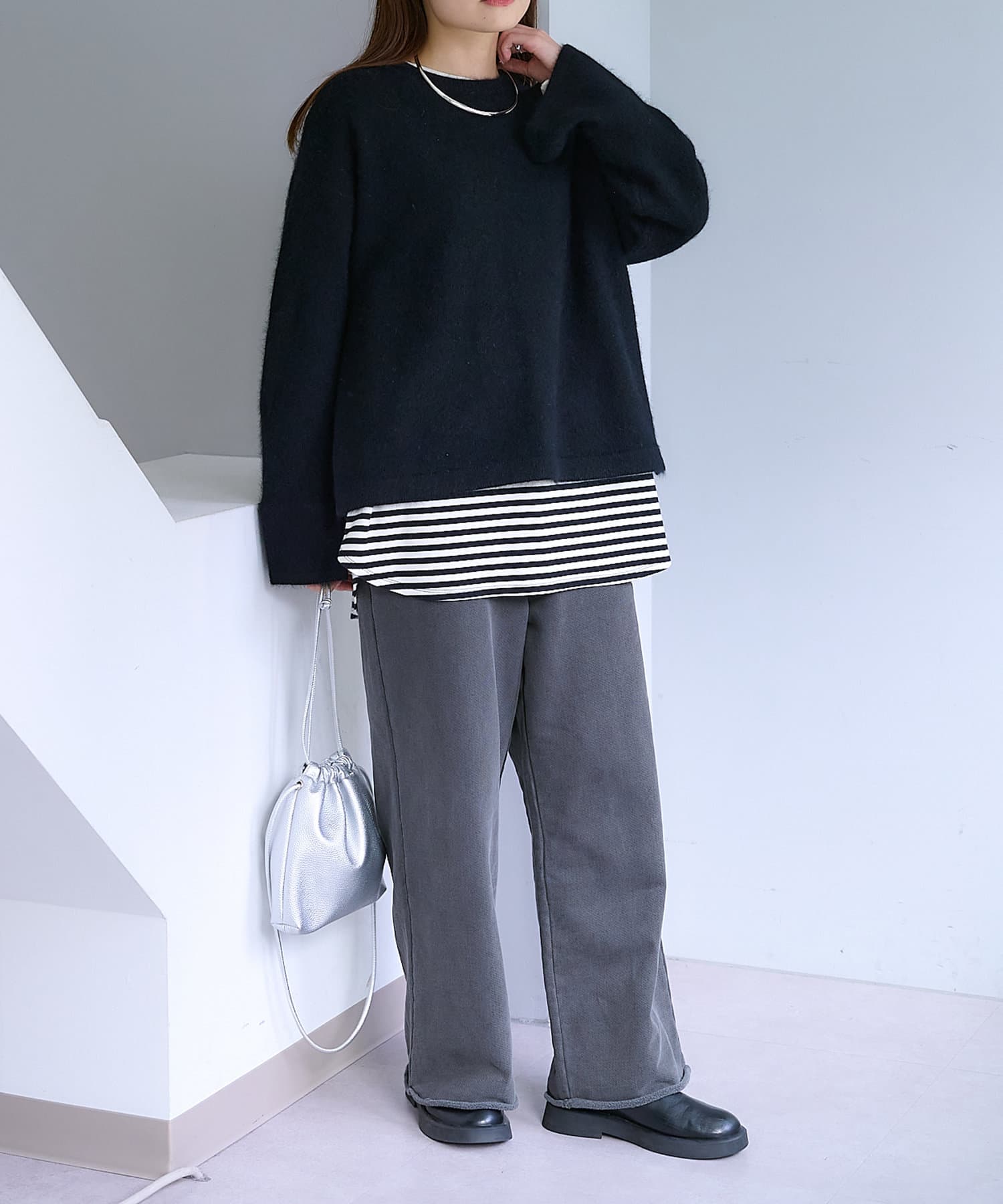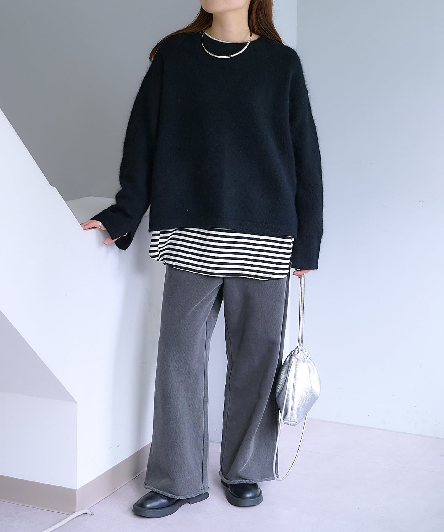 カットソーをインしたレイヤードスタイルもおすすめです。