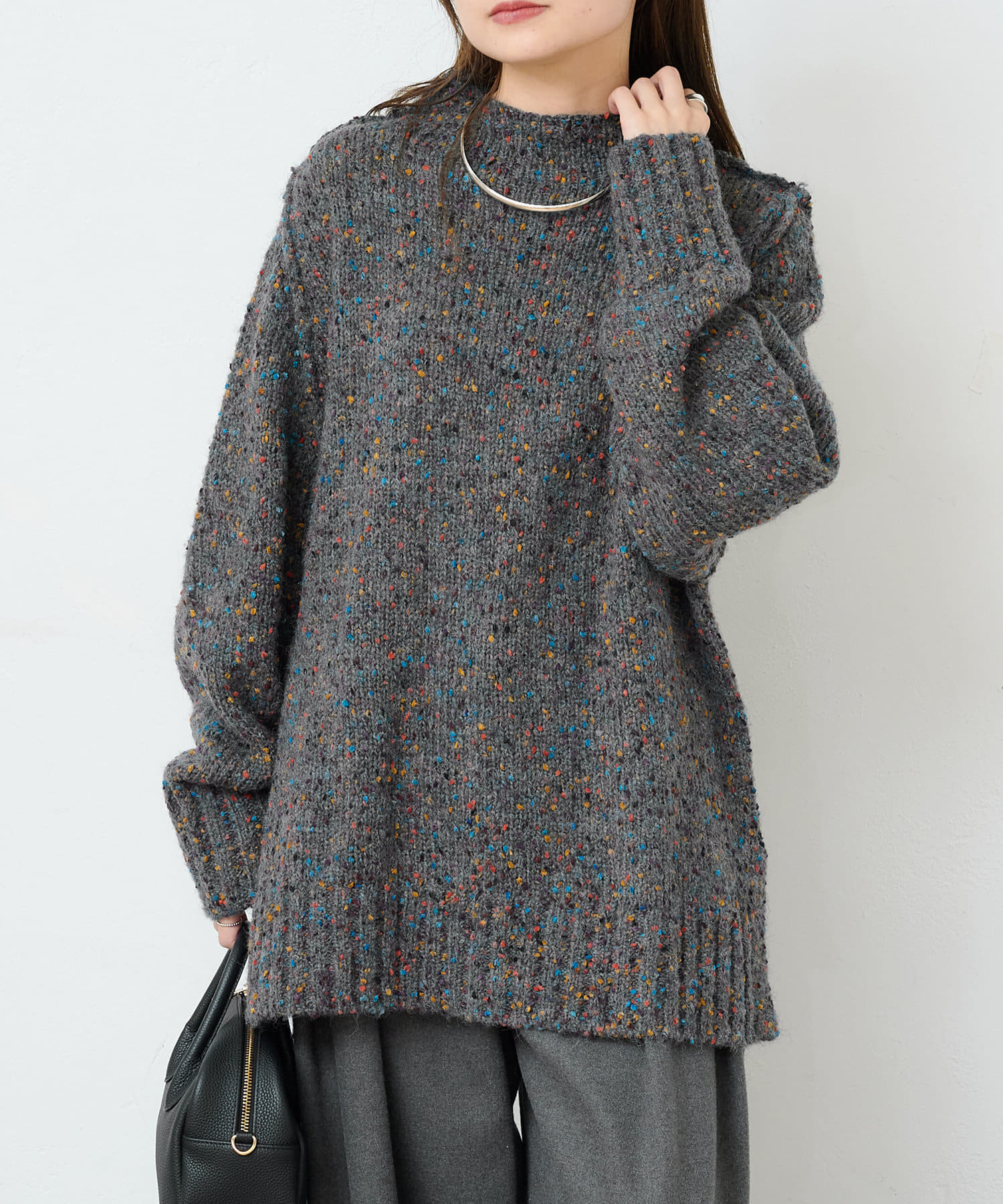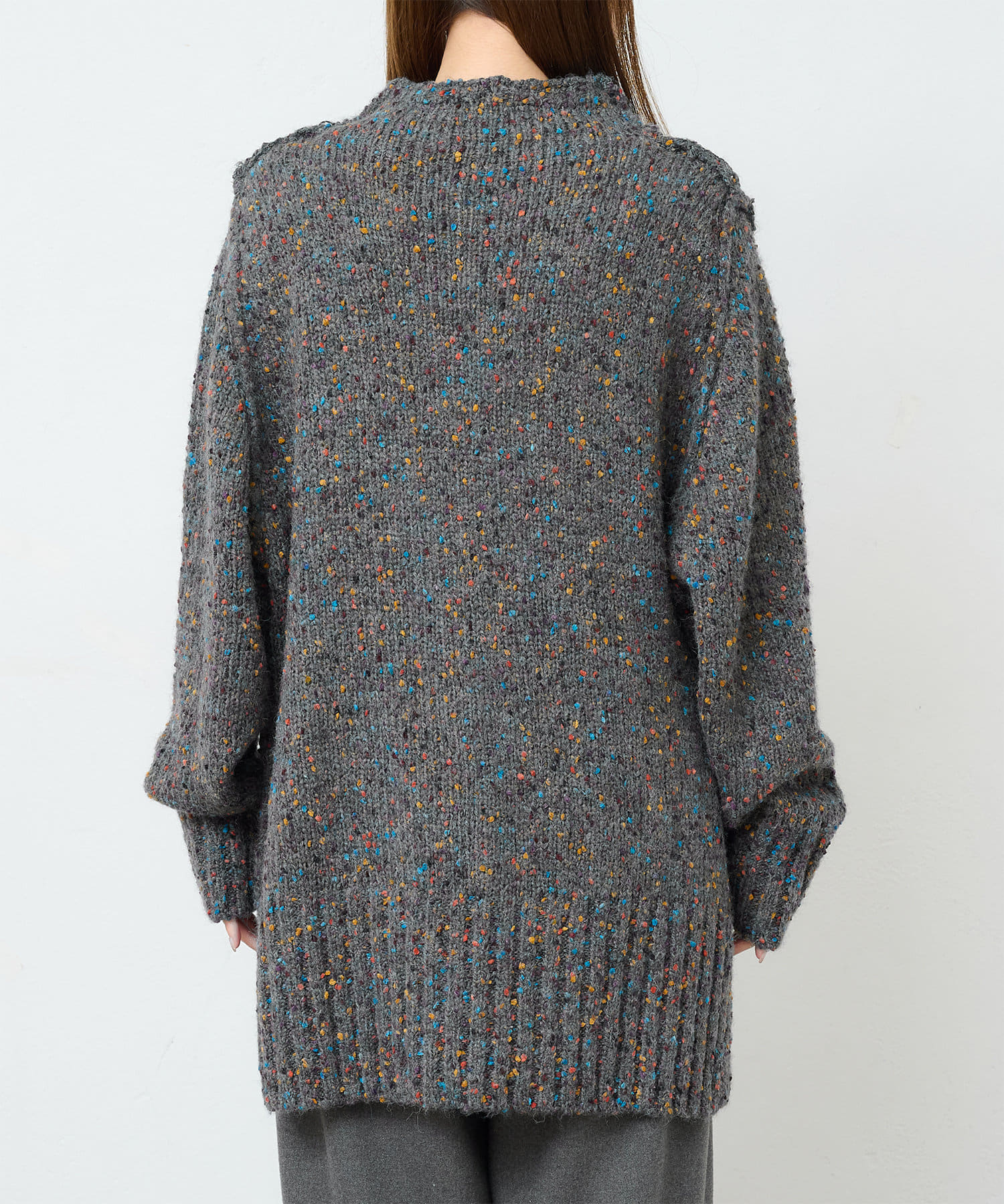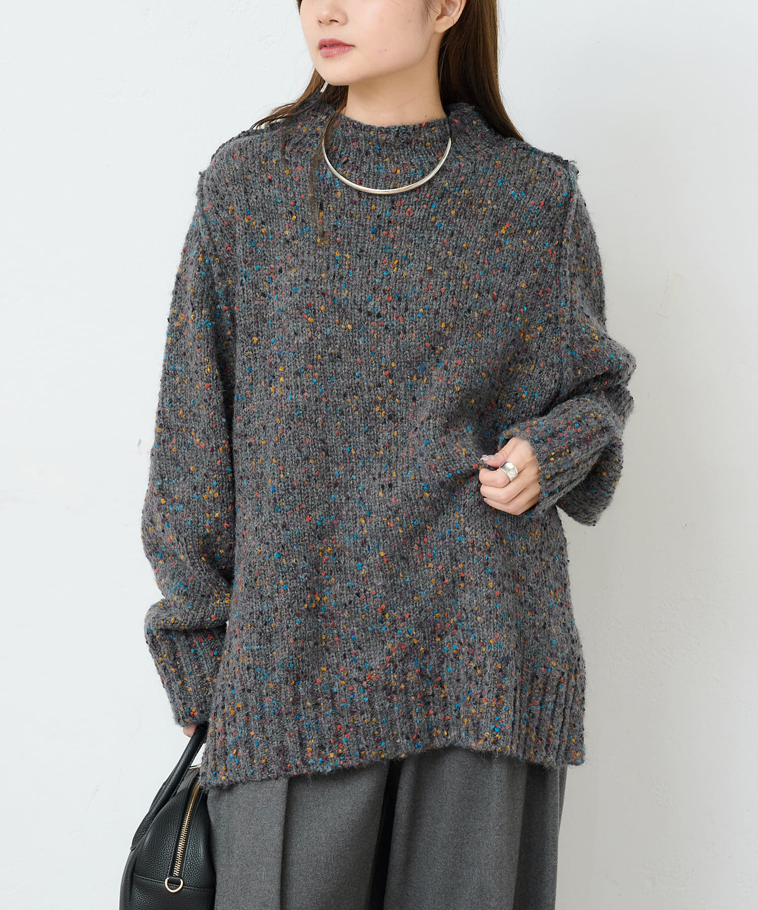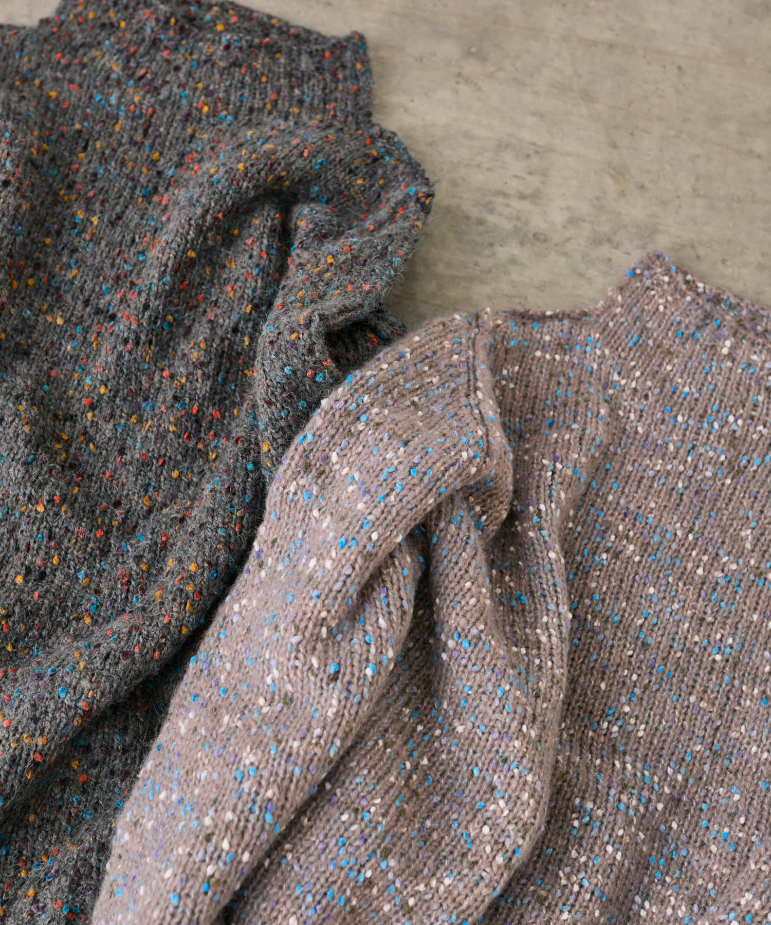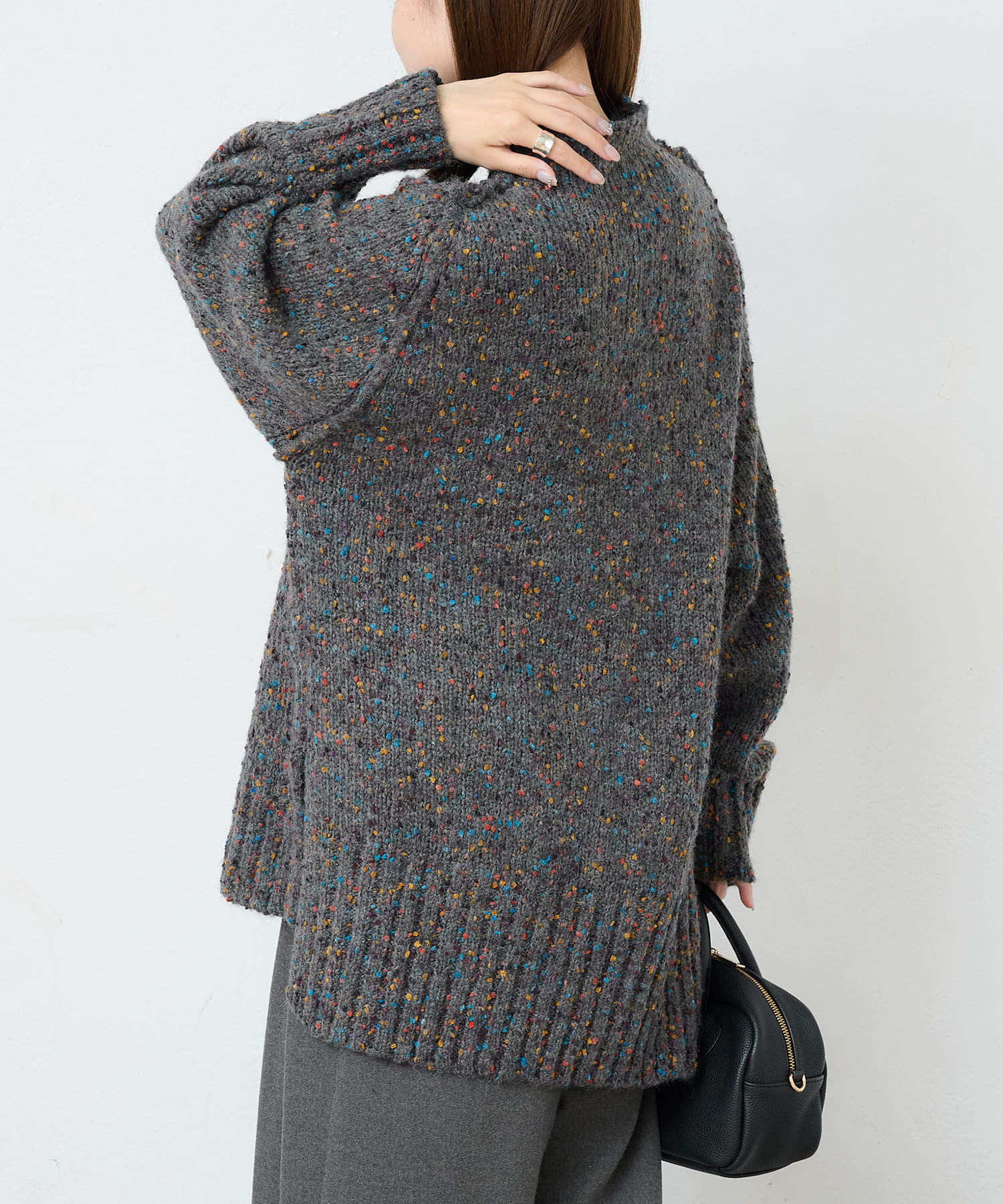 状のカラフルなネップを加えた、華やかなカラーが魅力のニット。