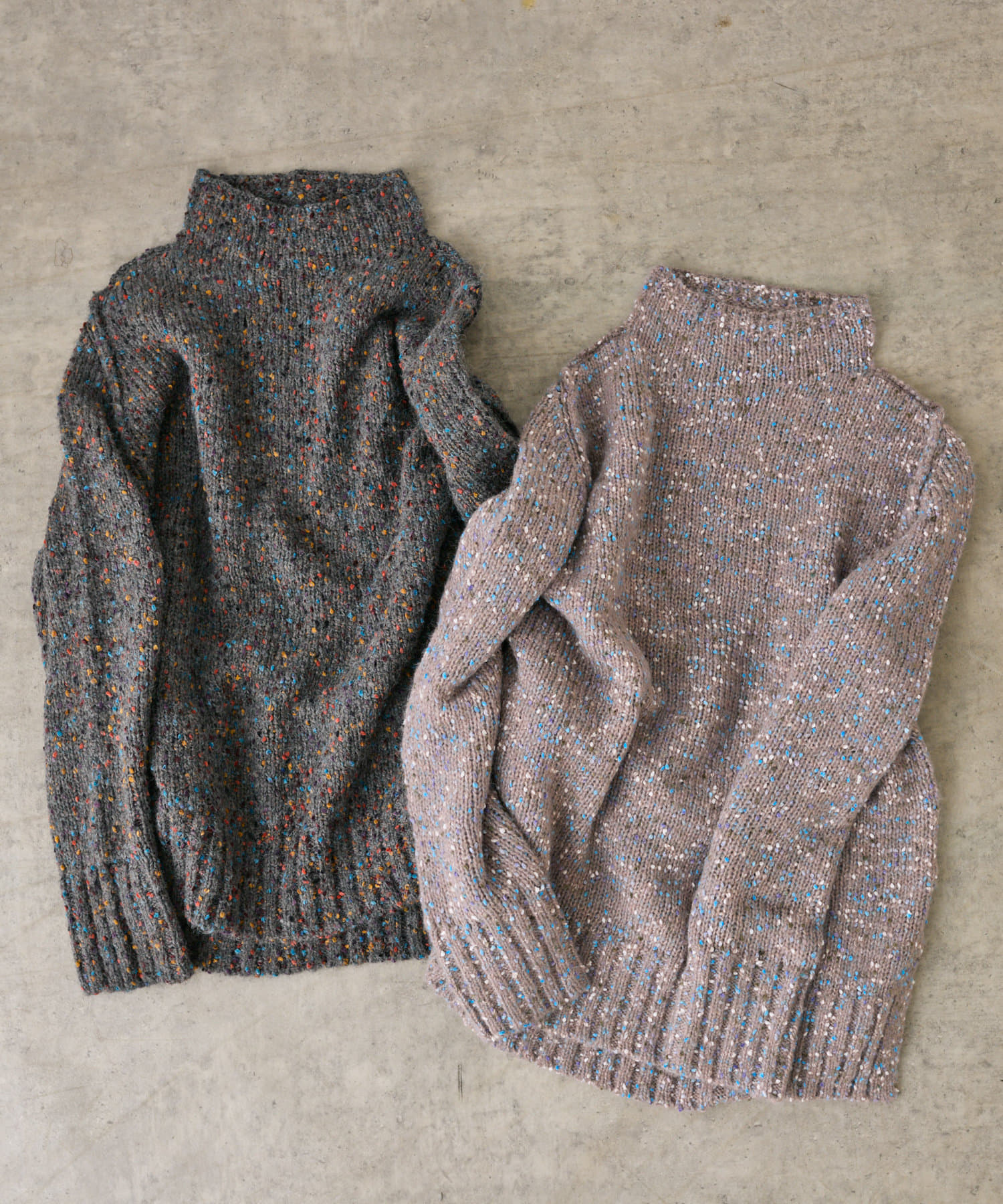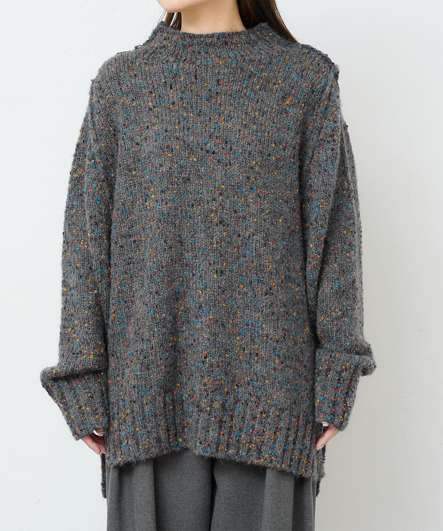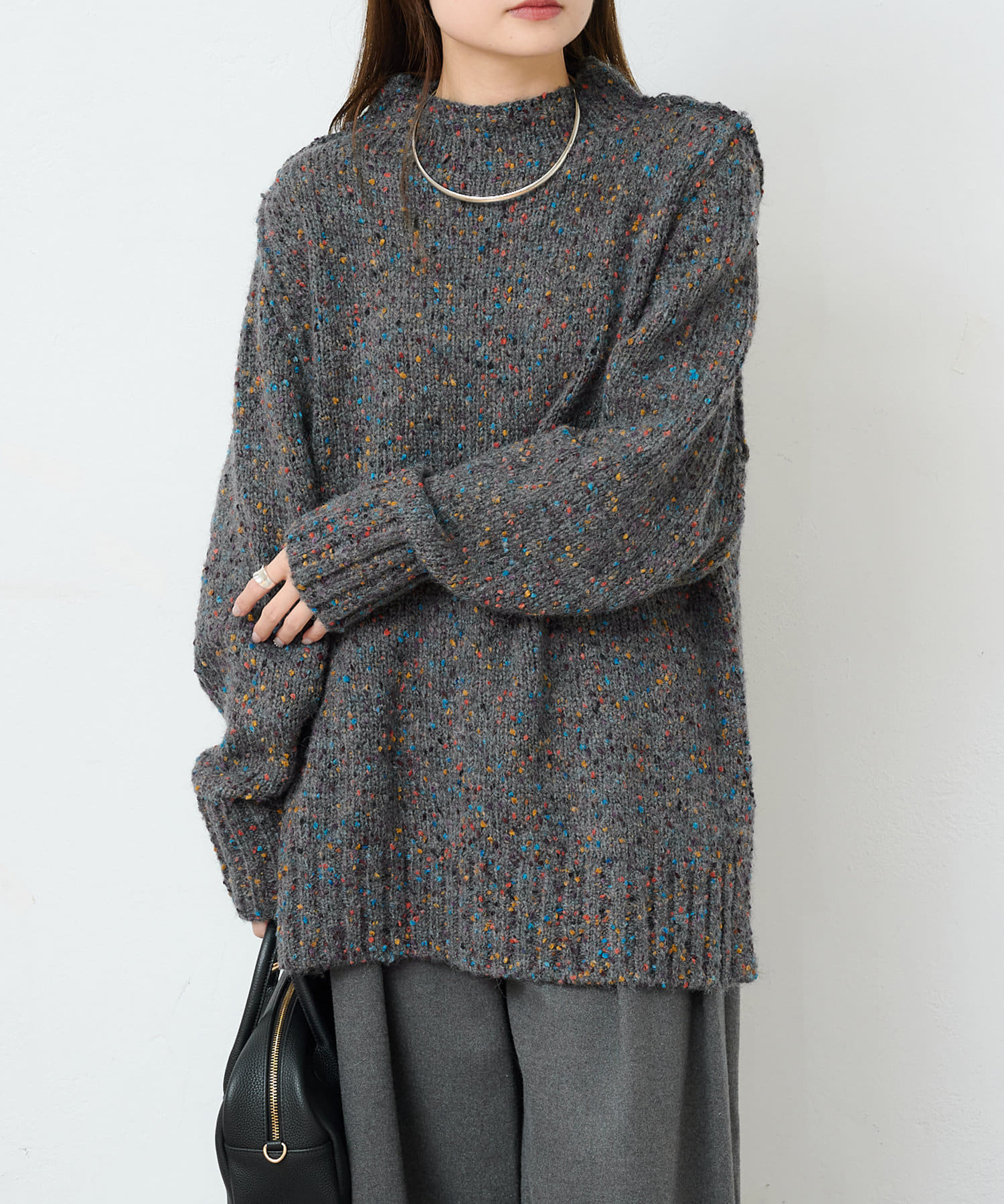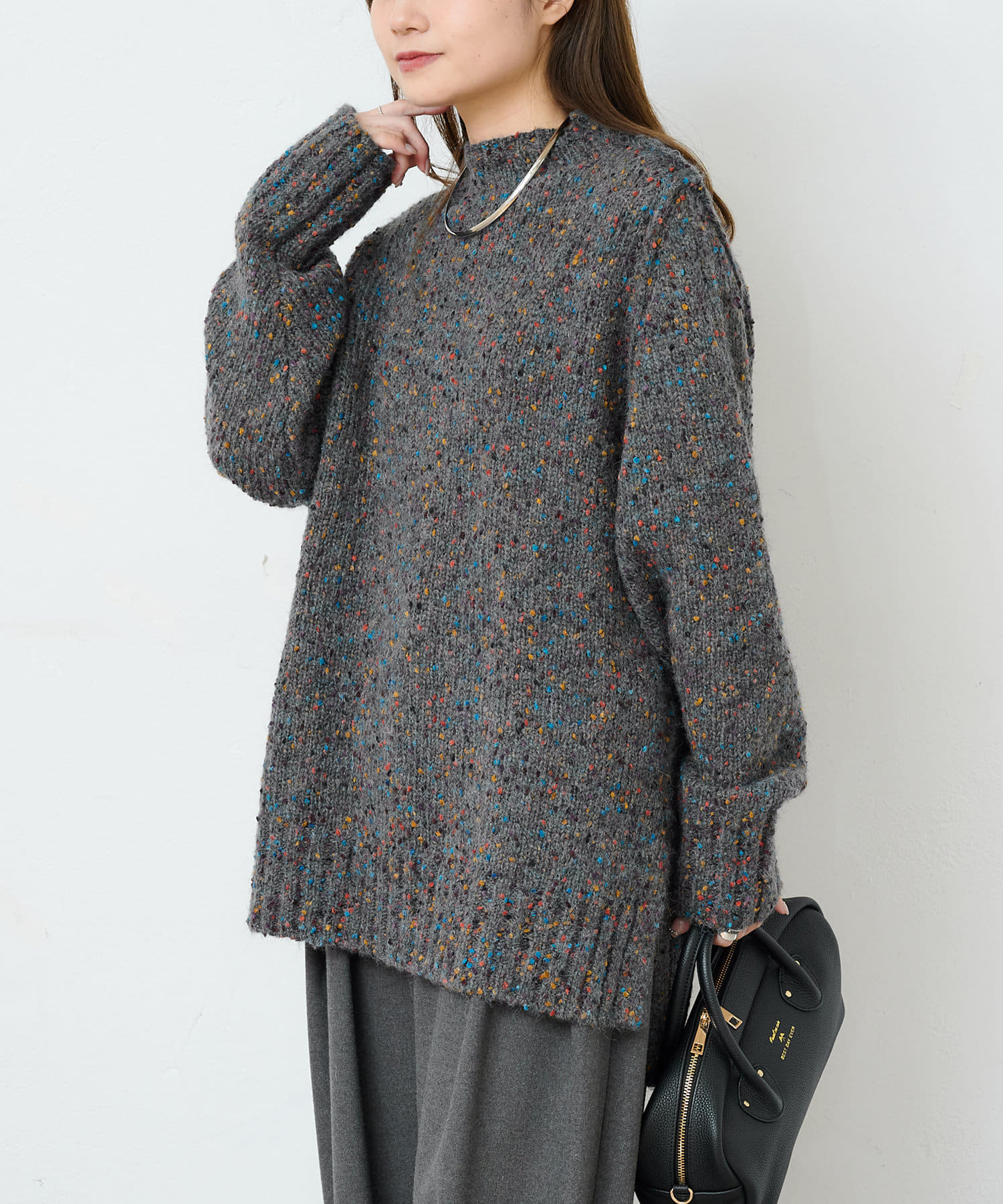状のカラフルなネップを加えた、華やかなカラーが魅力のニット。