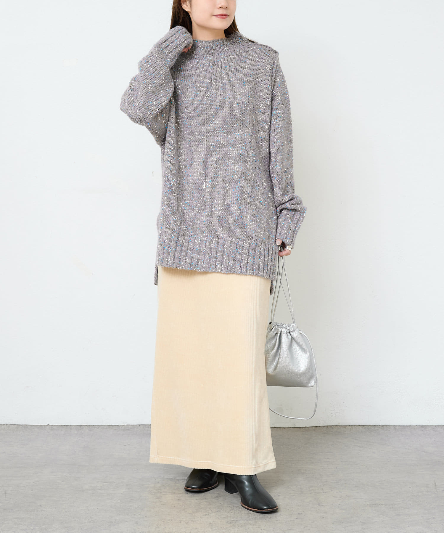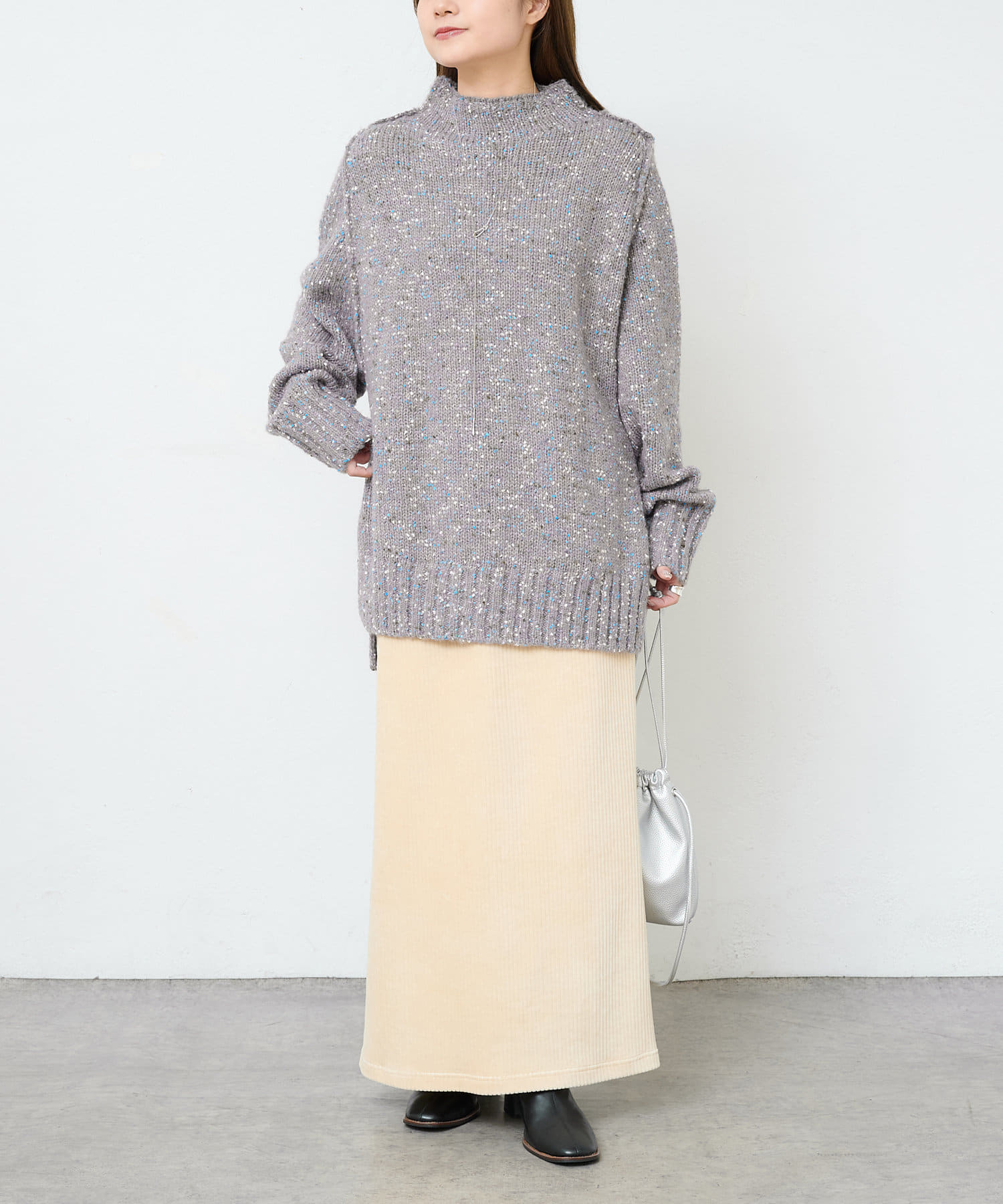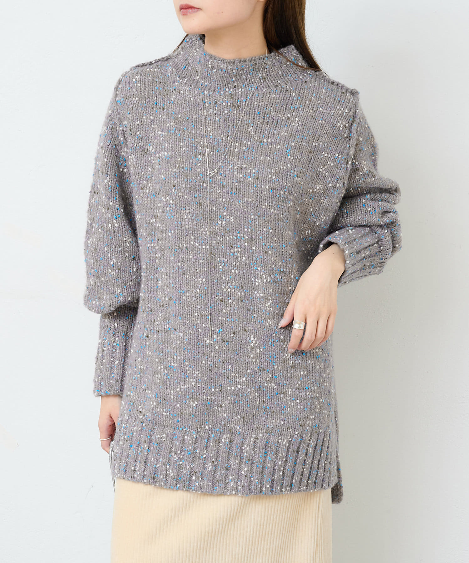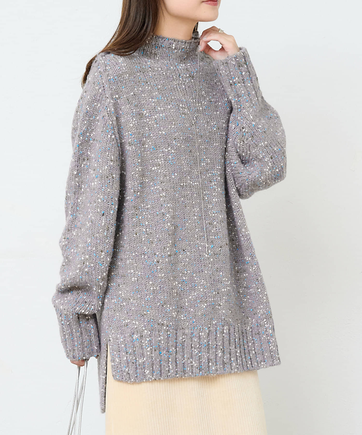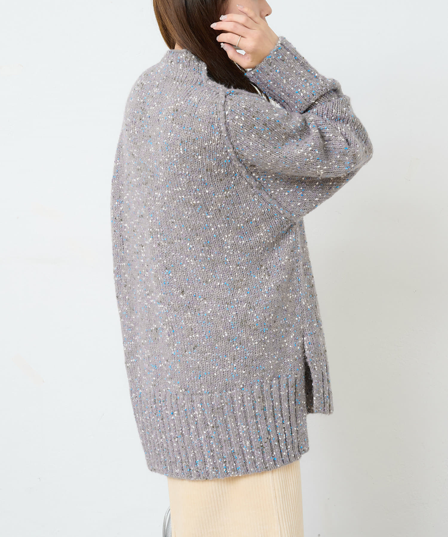 状のカラフルなネップを加えた、華やかなカラーが魅力のニット。