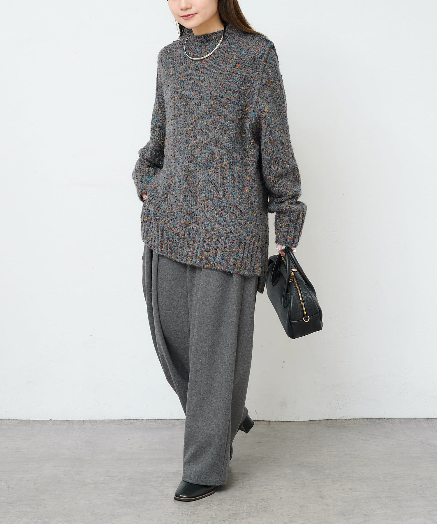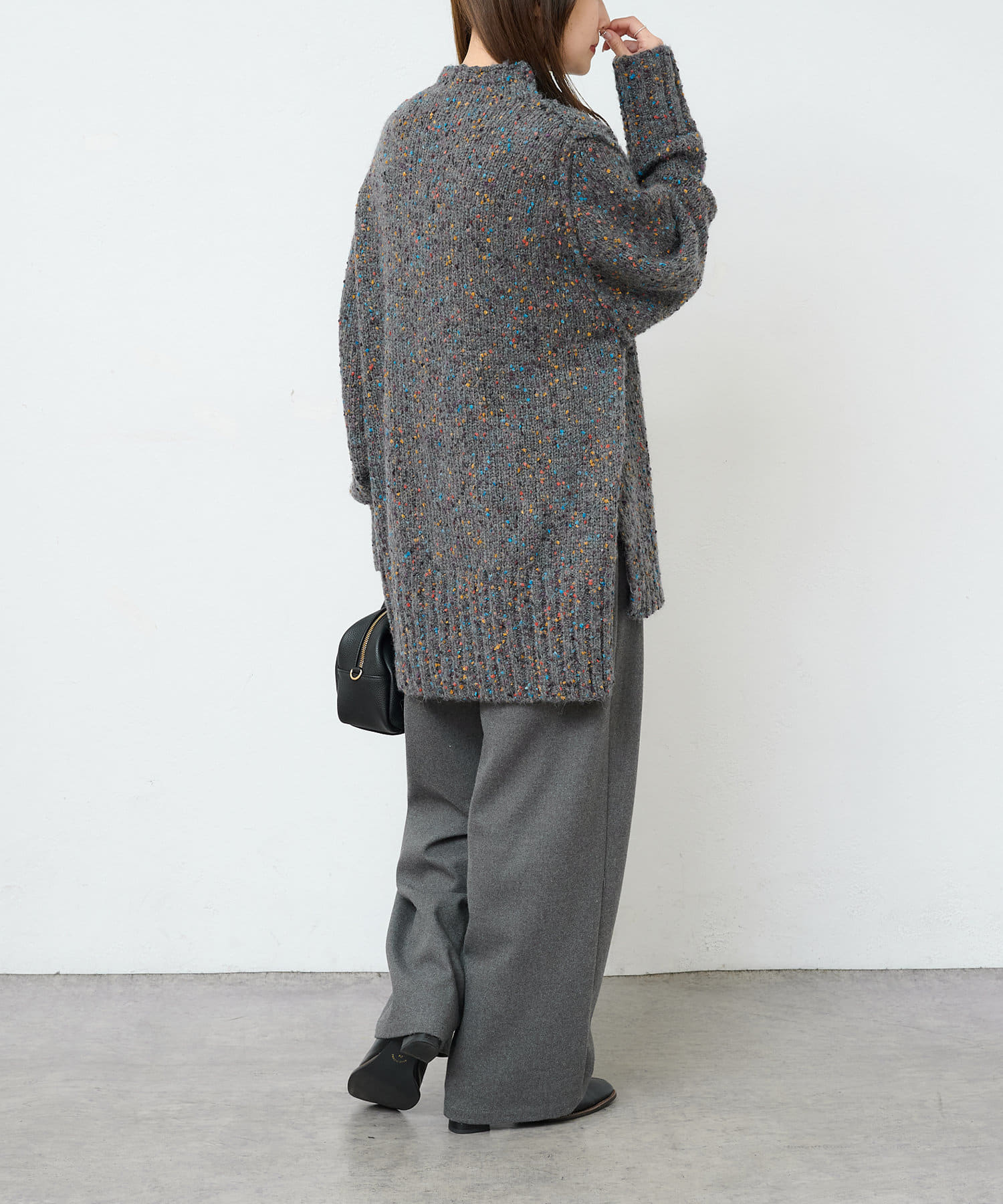 様々な色のネップがミックスされ、暖かな印象へと導くニット。