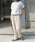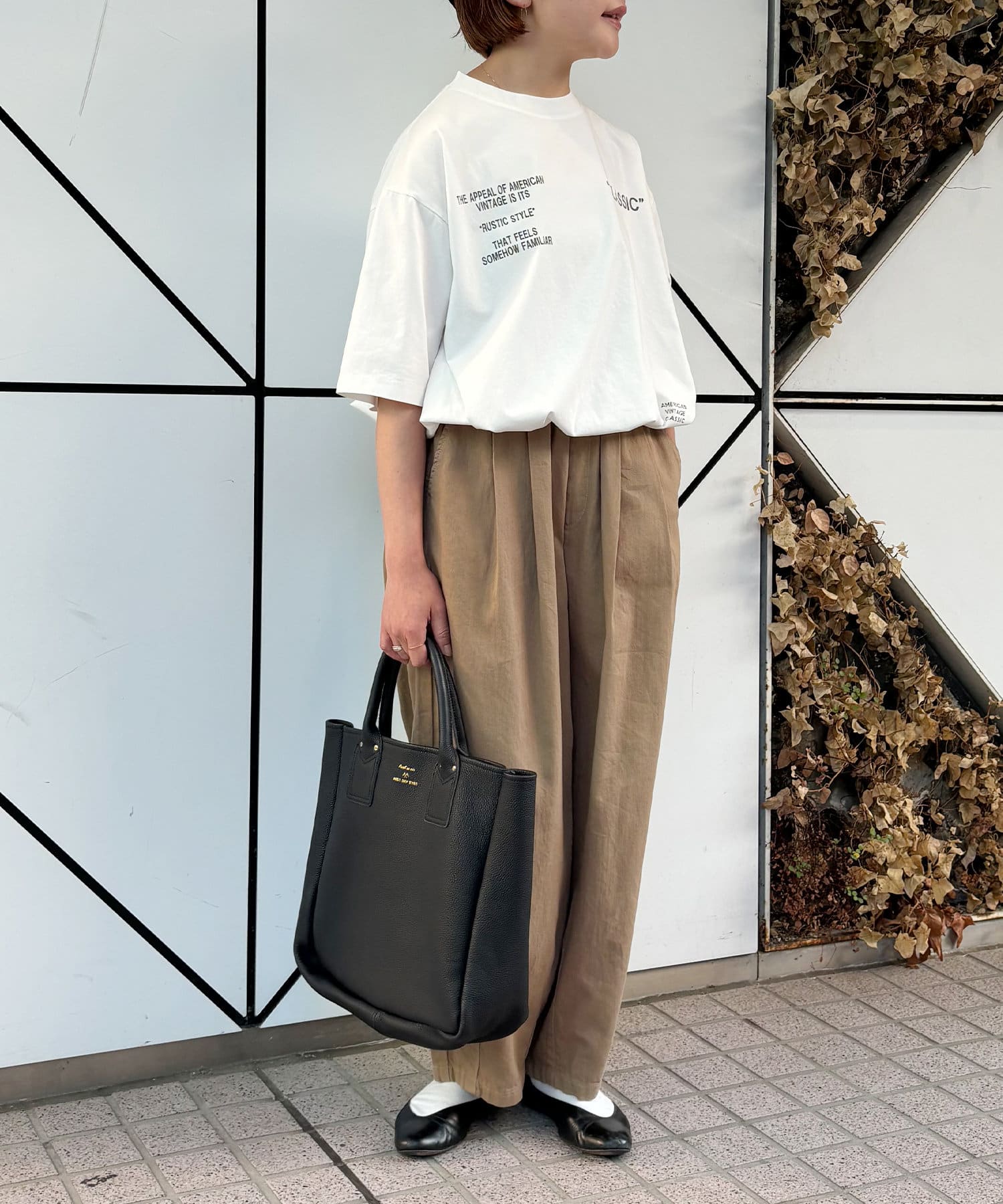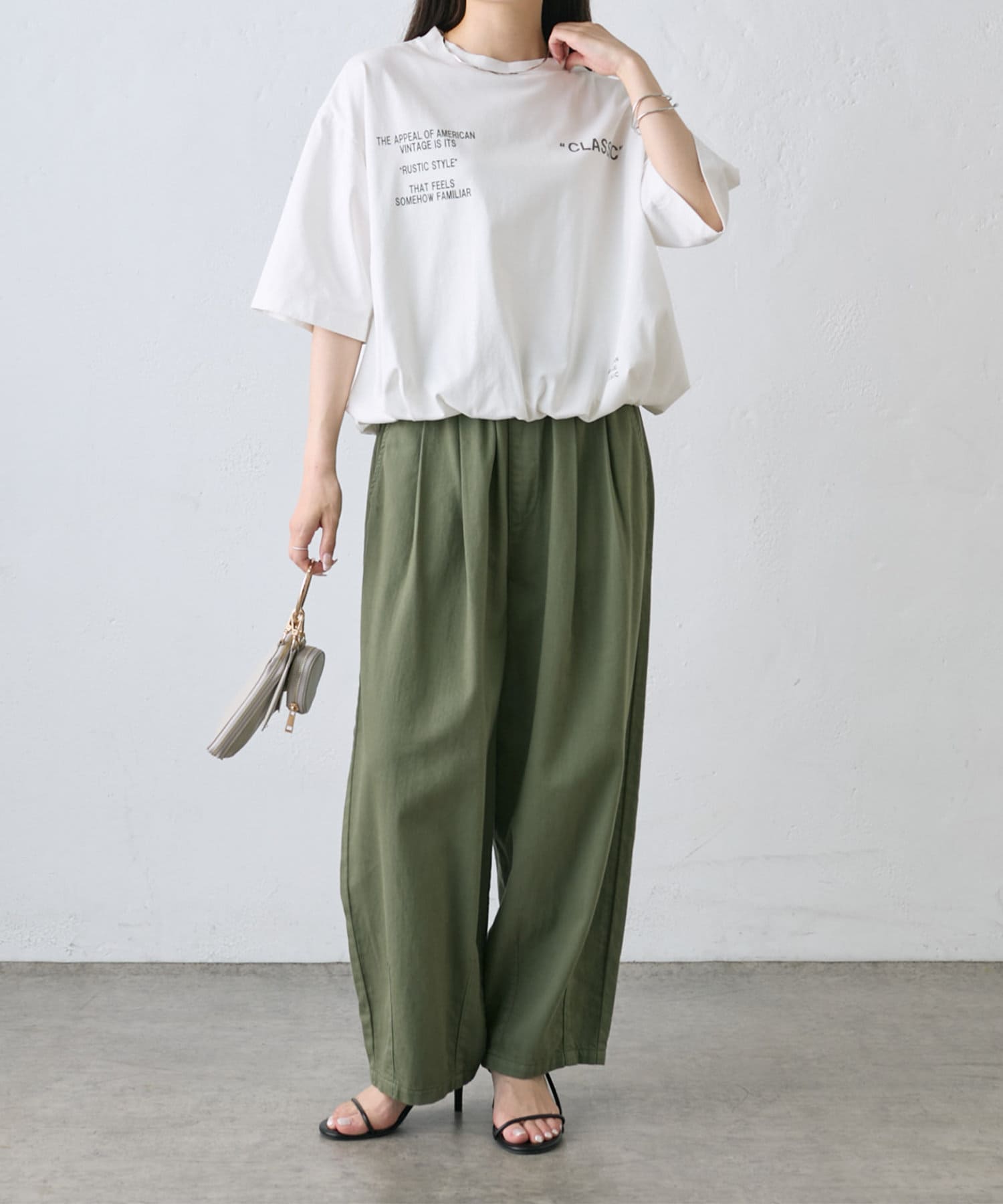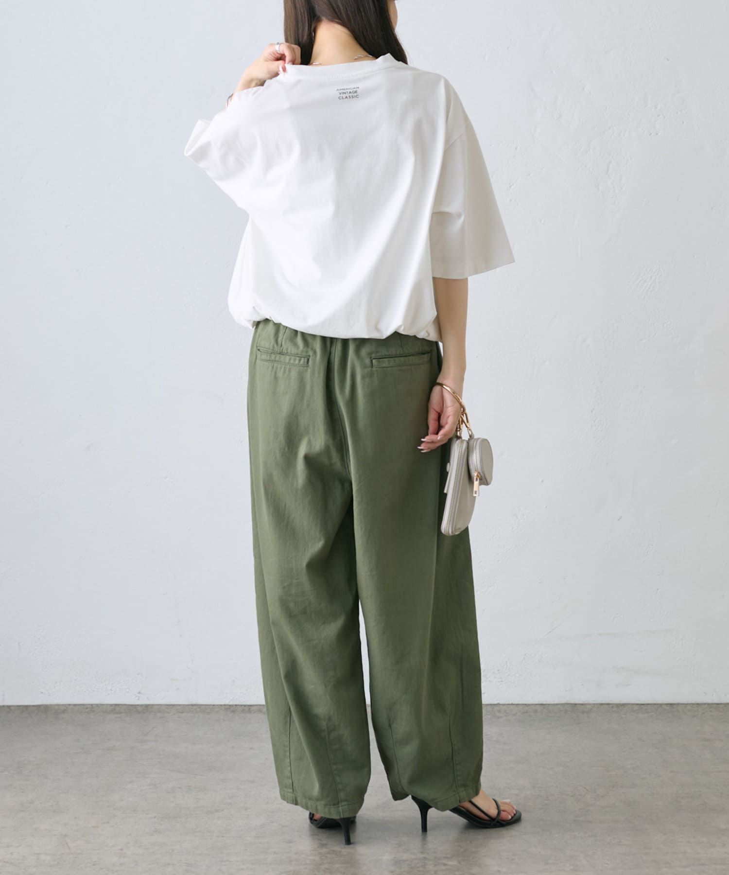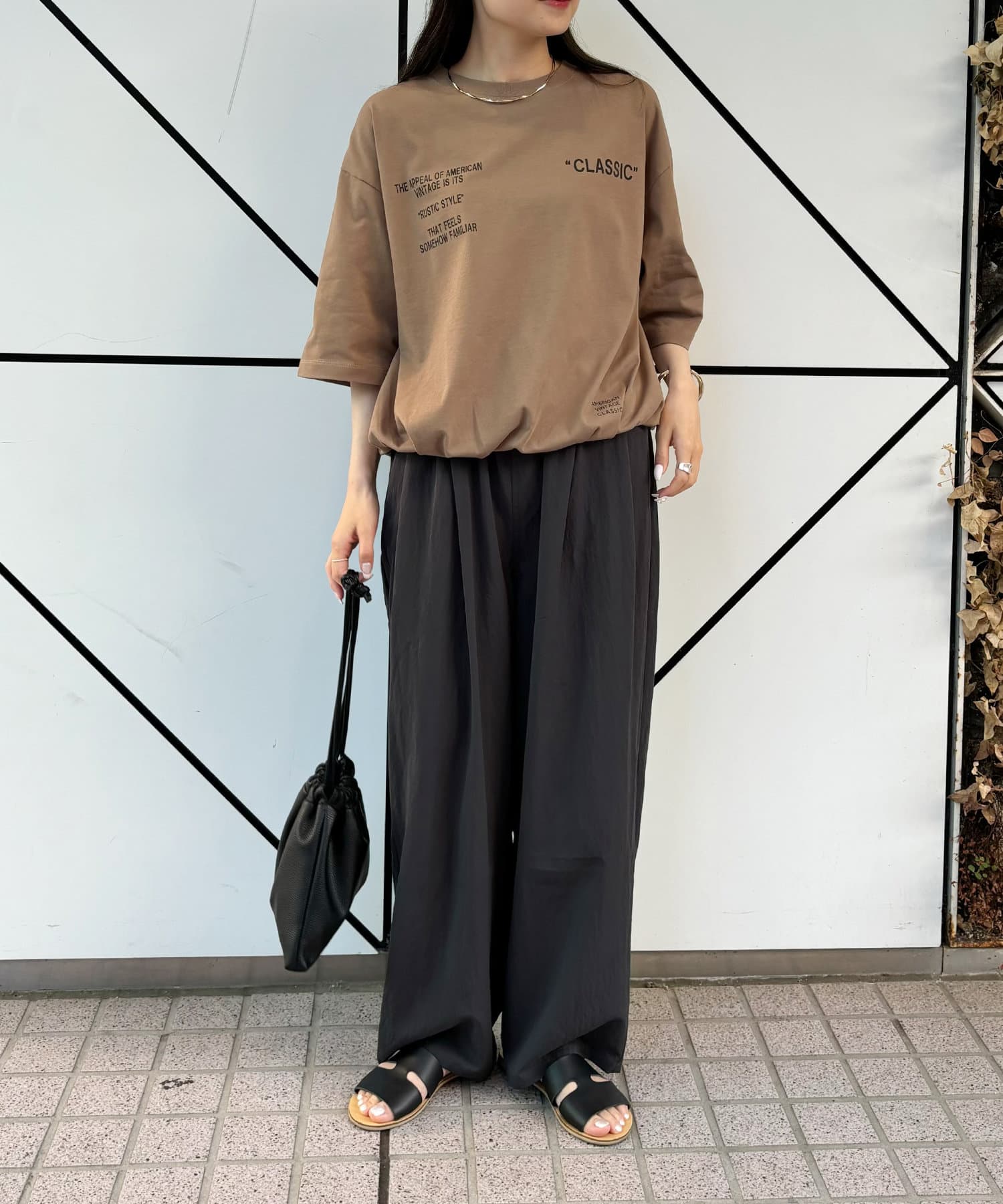 でしゃばりすぎないロゴと配置が絶妙で、甘くなりそうなバルーンアイテムが、気軽でカジュアルな1着に。