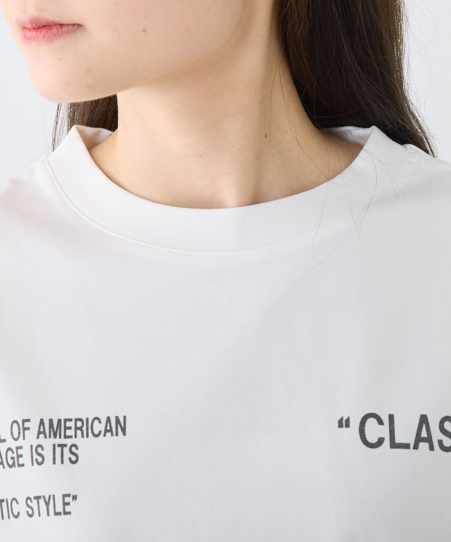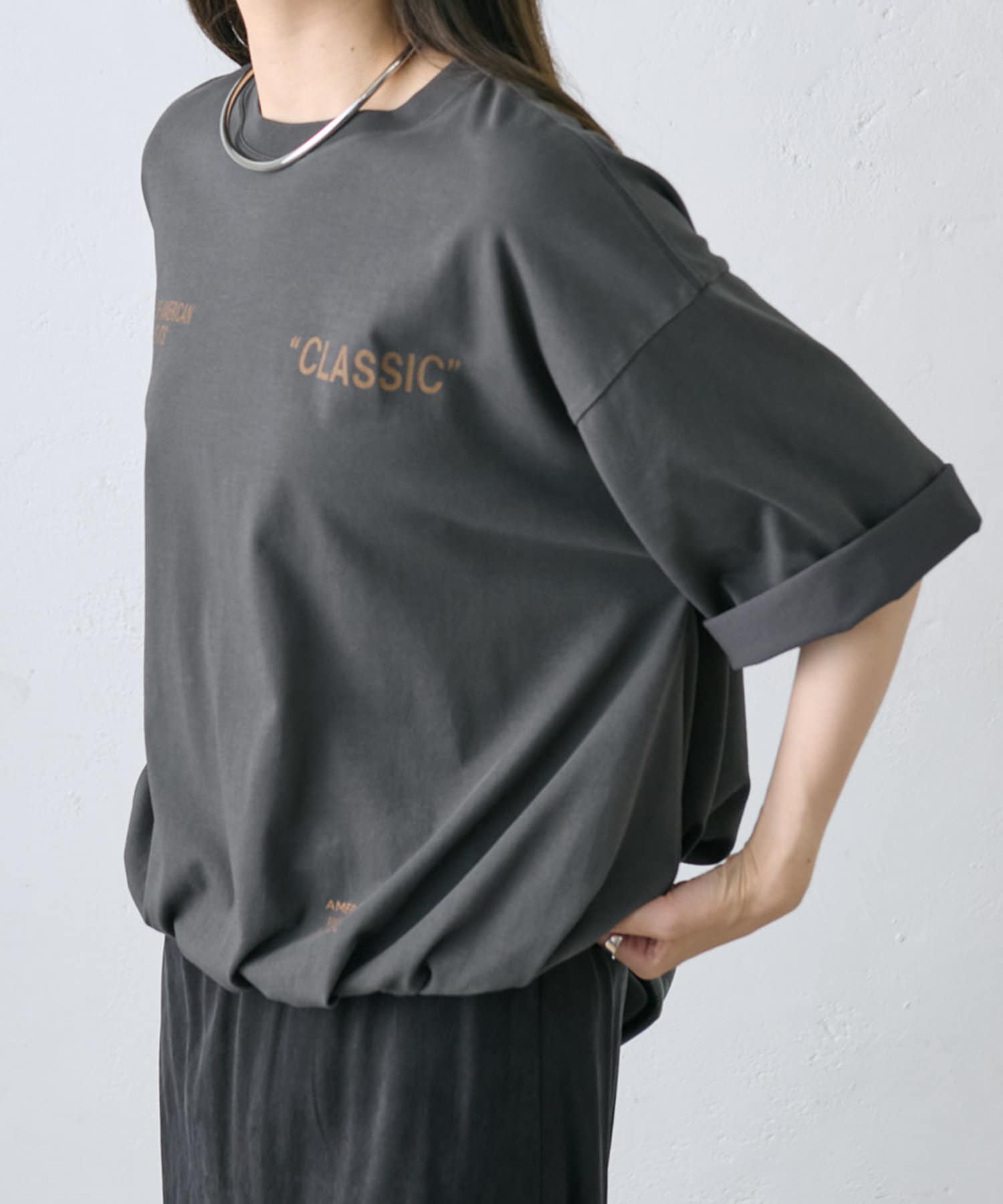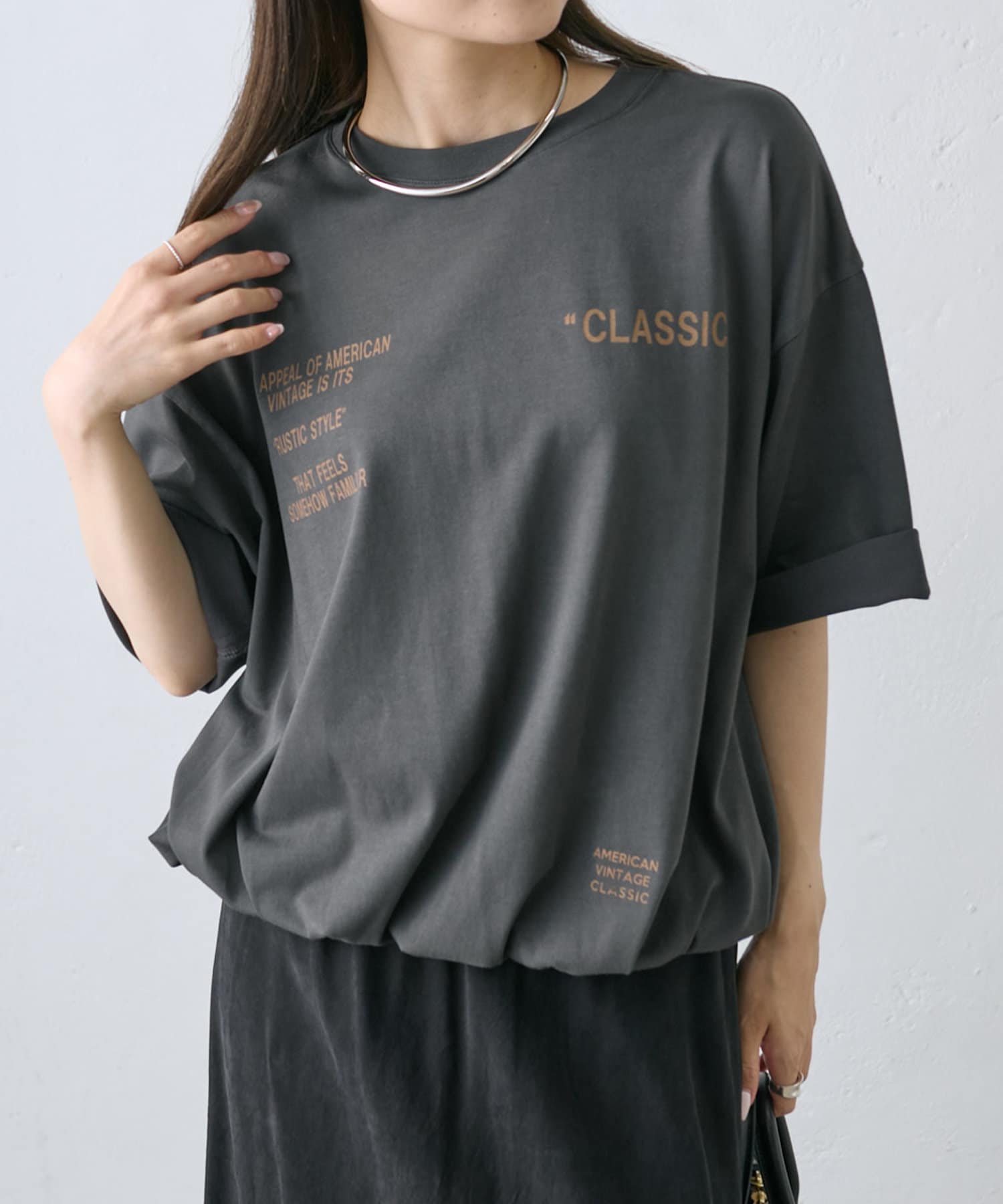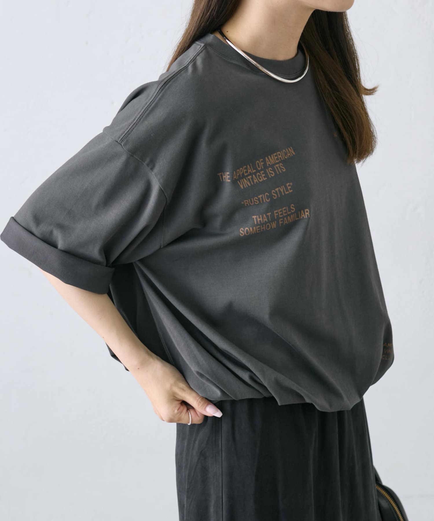 ヴィンテージ加工されたシンプルなロゴを胸元や裾・バックスタイルにプリント。
