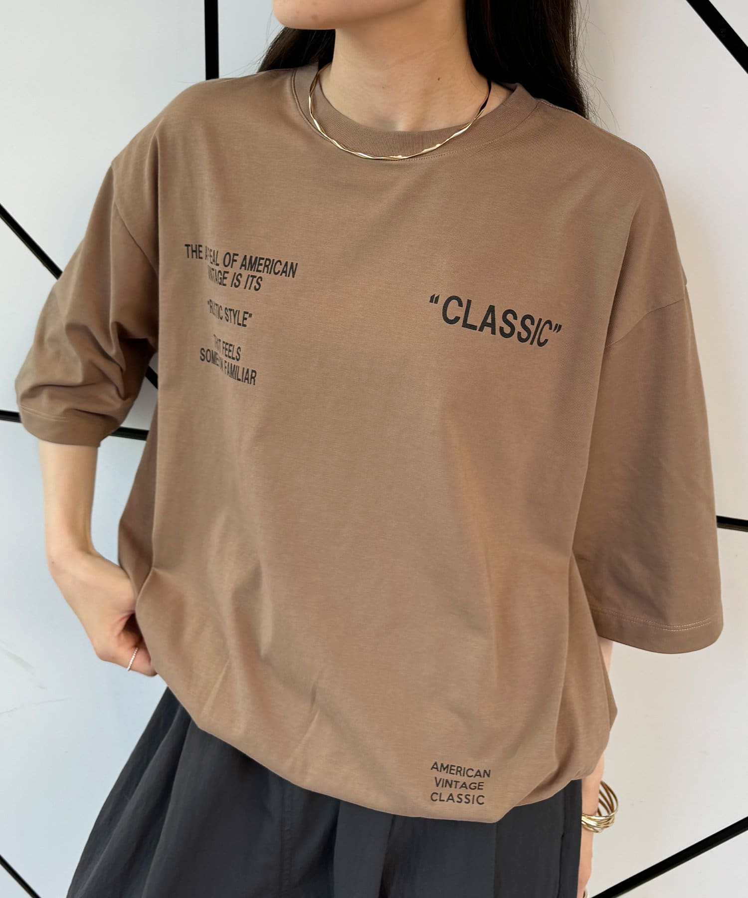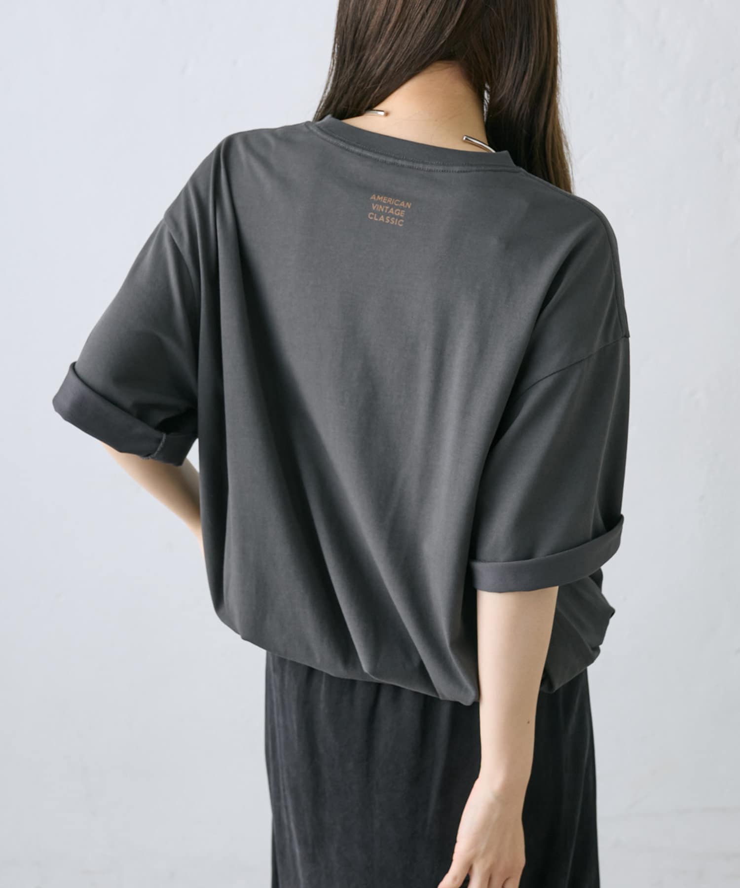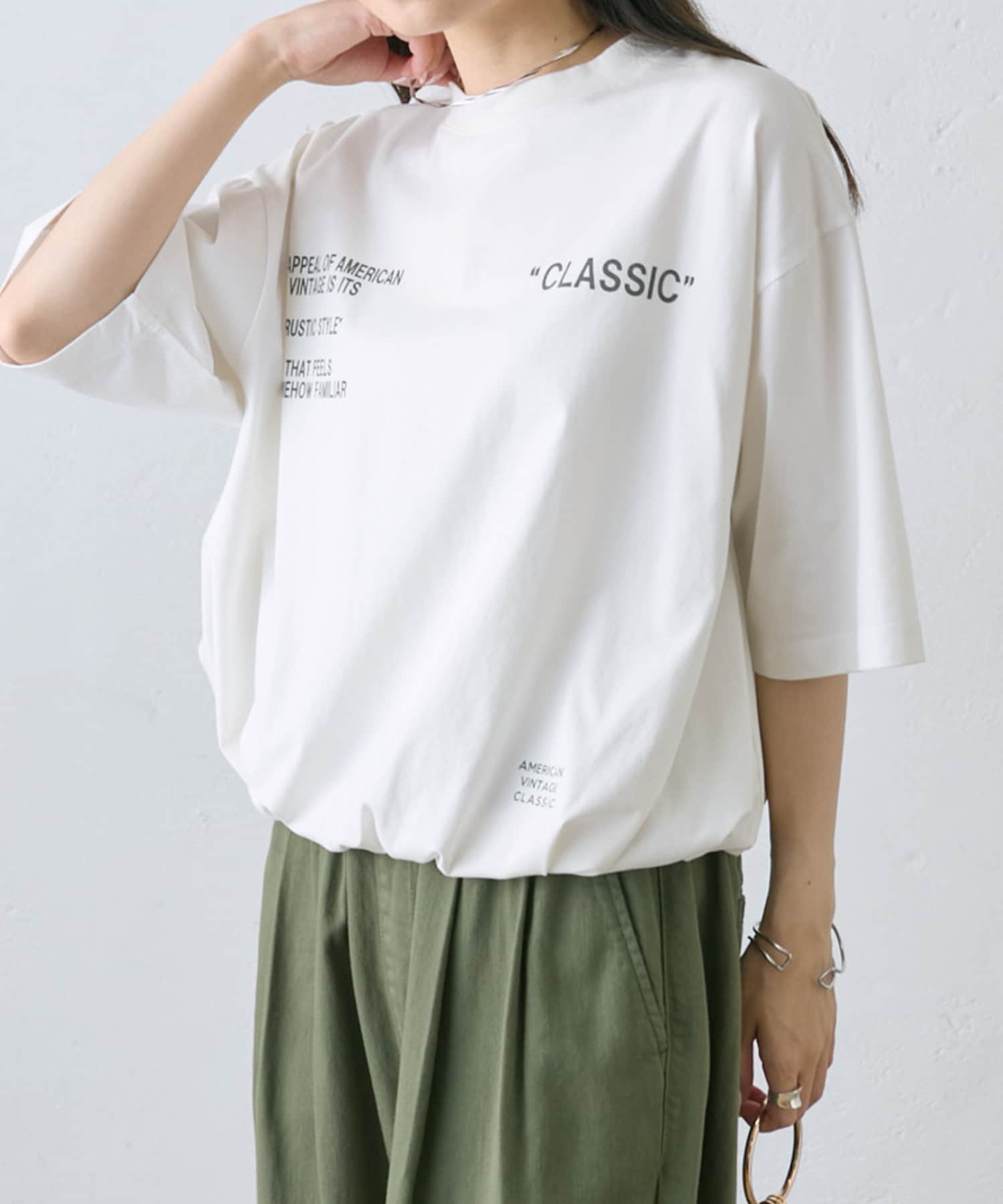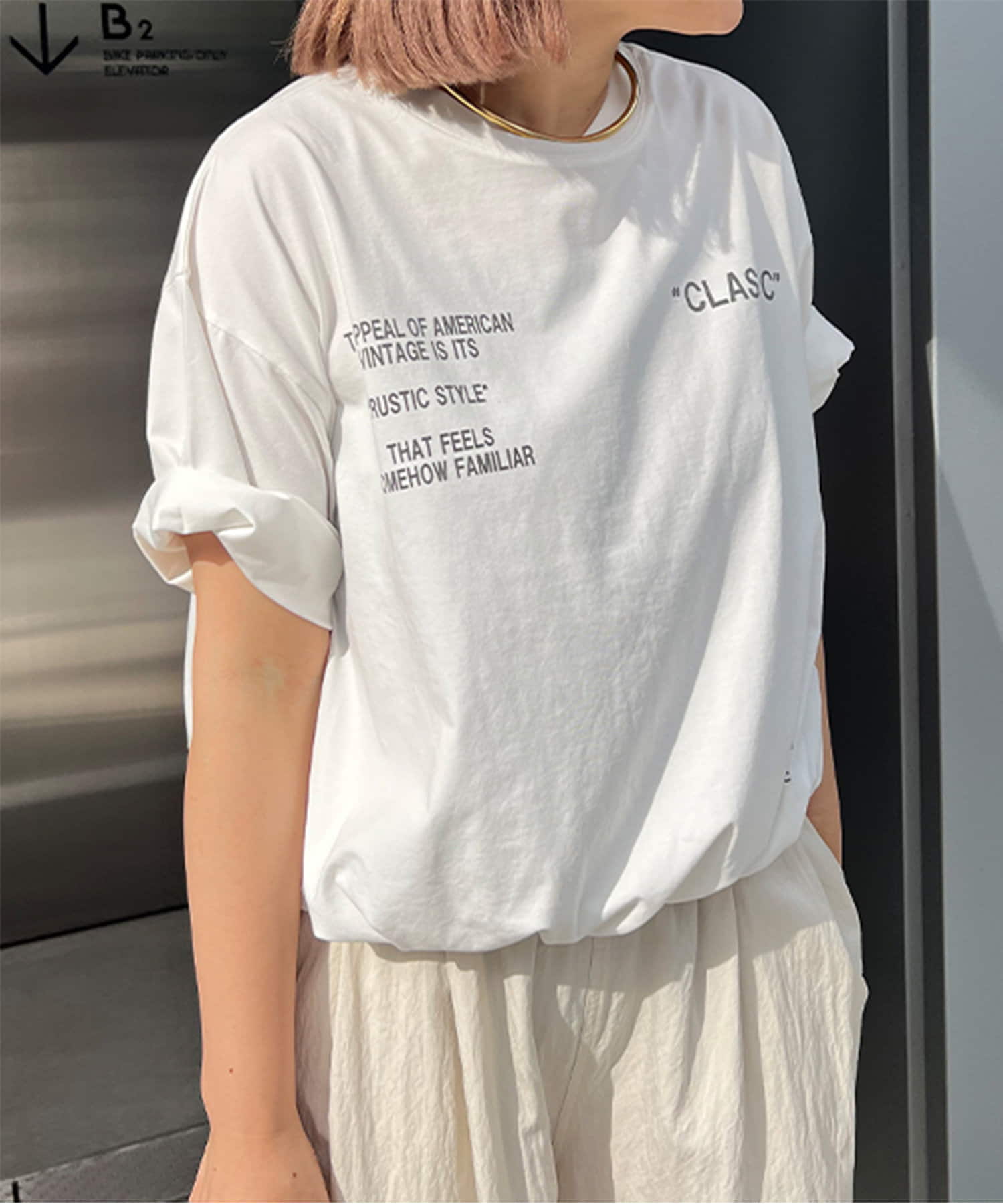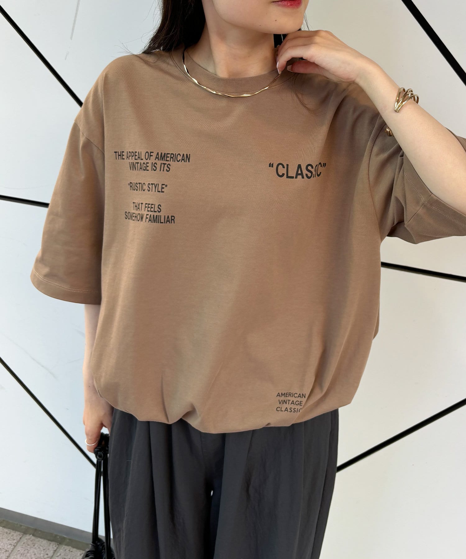 ヴィンテージ加工されたシンプルなロゴを胸元や裾・バックスタイルにプリント。
