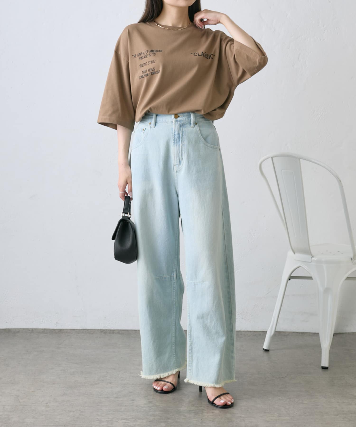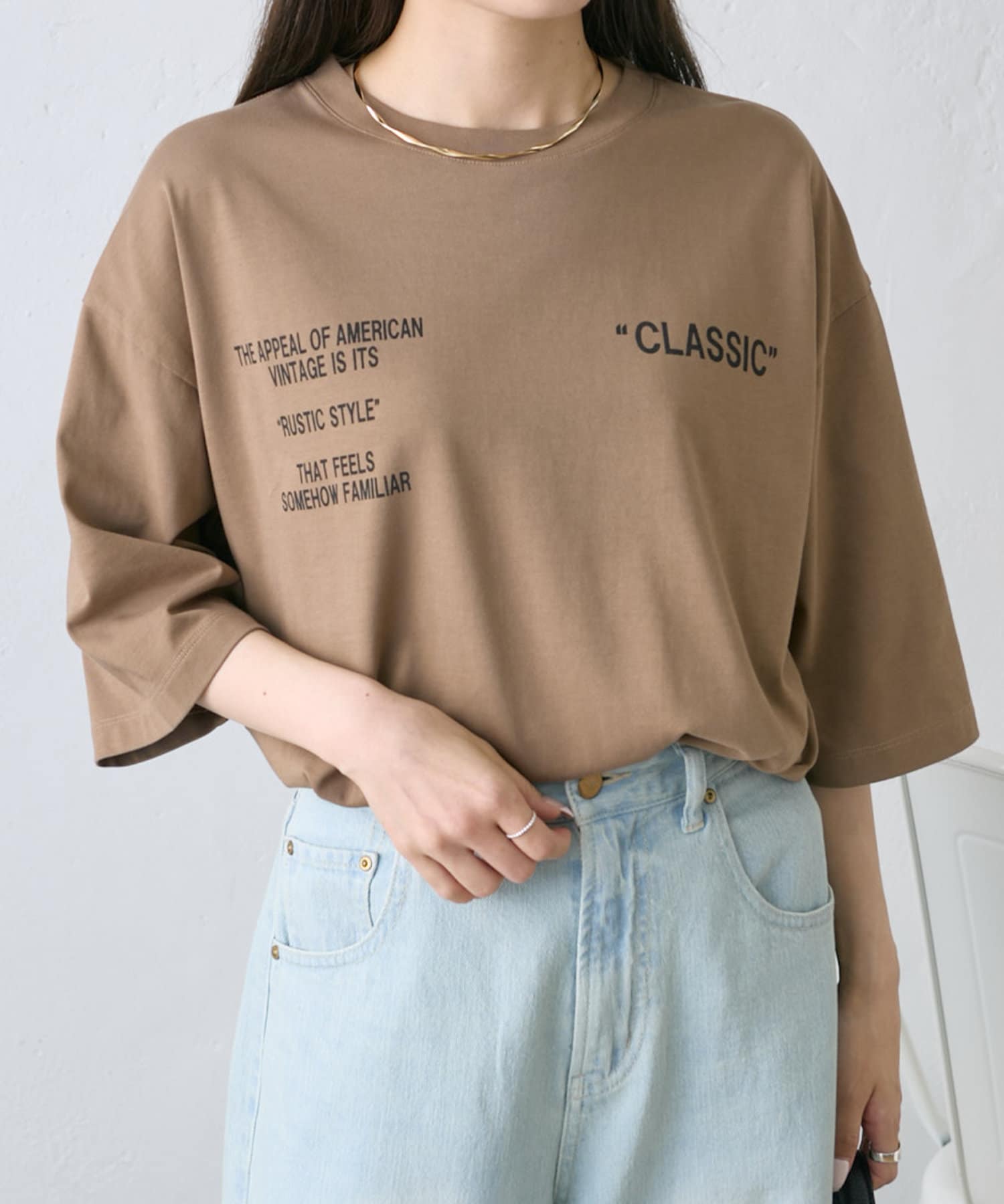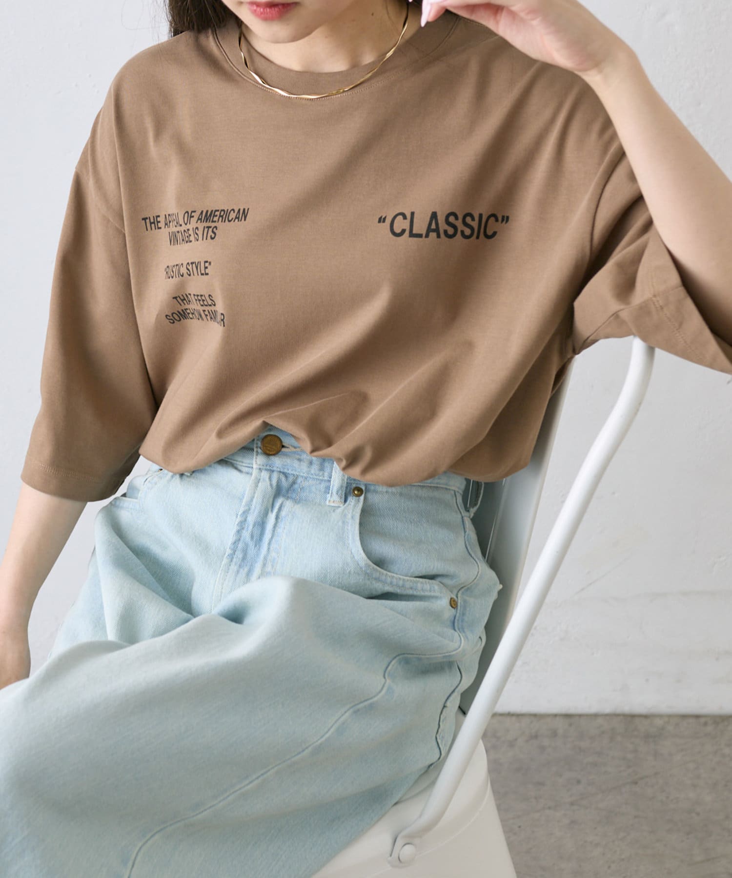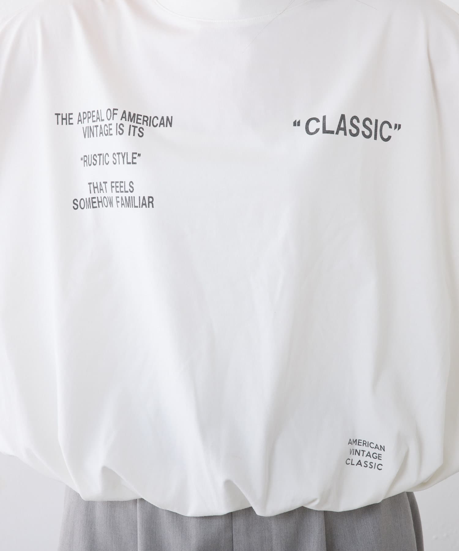 ヴィンテージ加工されたシンプルなロゴを胸元や裾・バックスタイルにプリント。